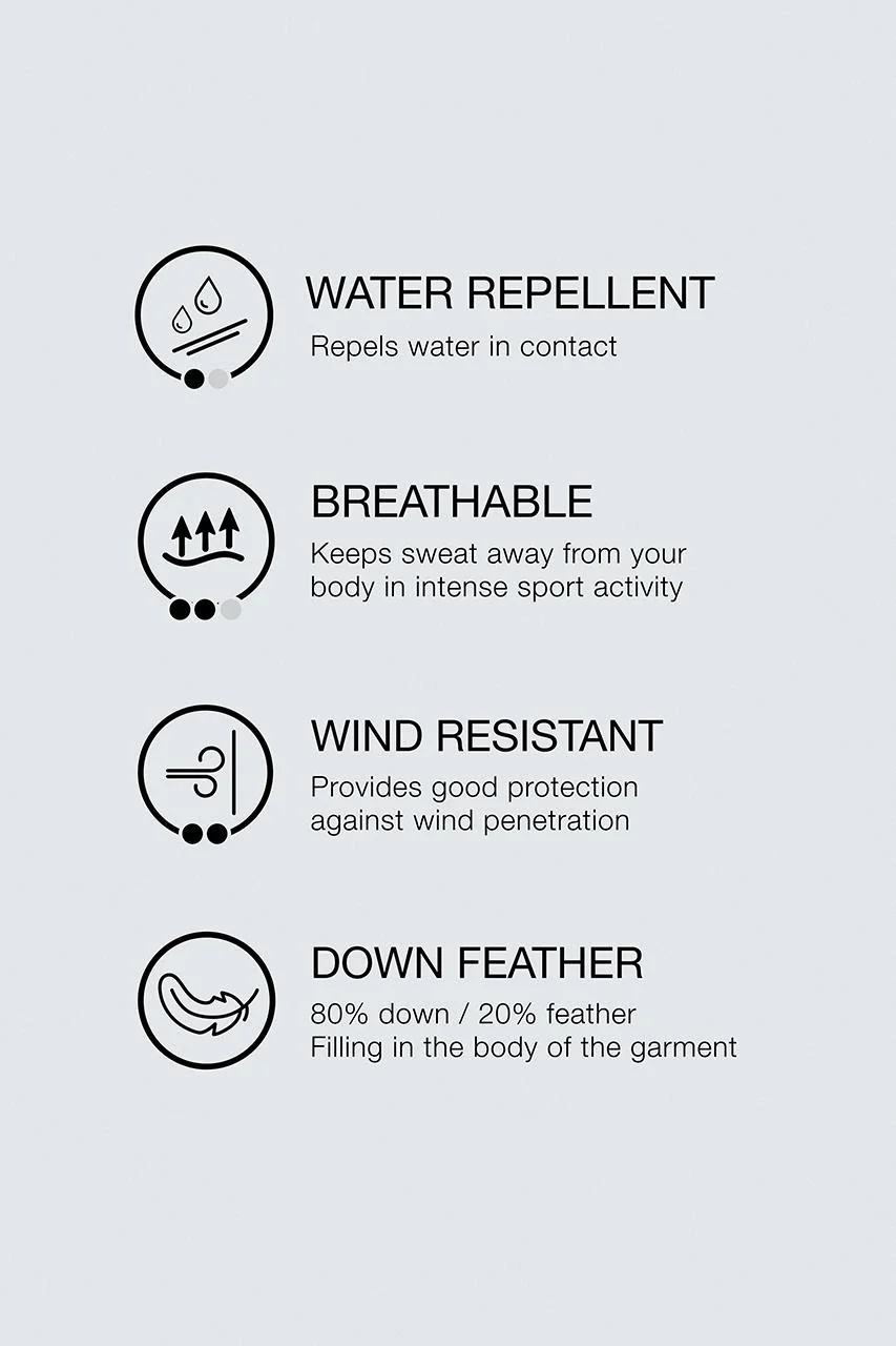 - متریال استفاده شده: این کاپشن از پارچه فنی با ظاهری براق ساخته شده است. فضای داخلی آن با ترکیبی از ۸۰% پر و ۲۰% کرک پر شده که عایق حرارتی عالی فراهم می کند.