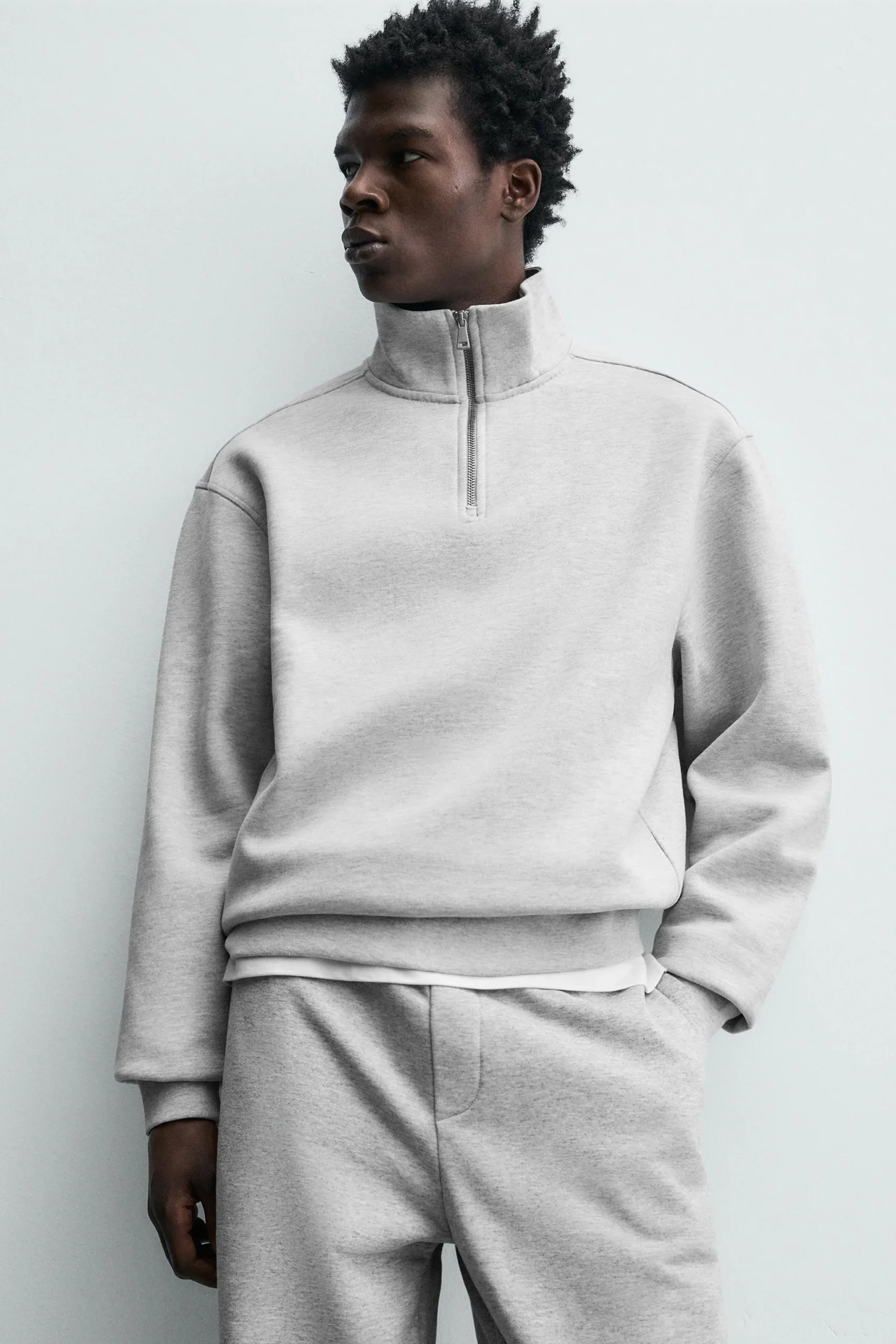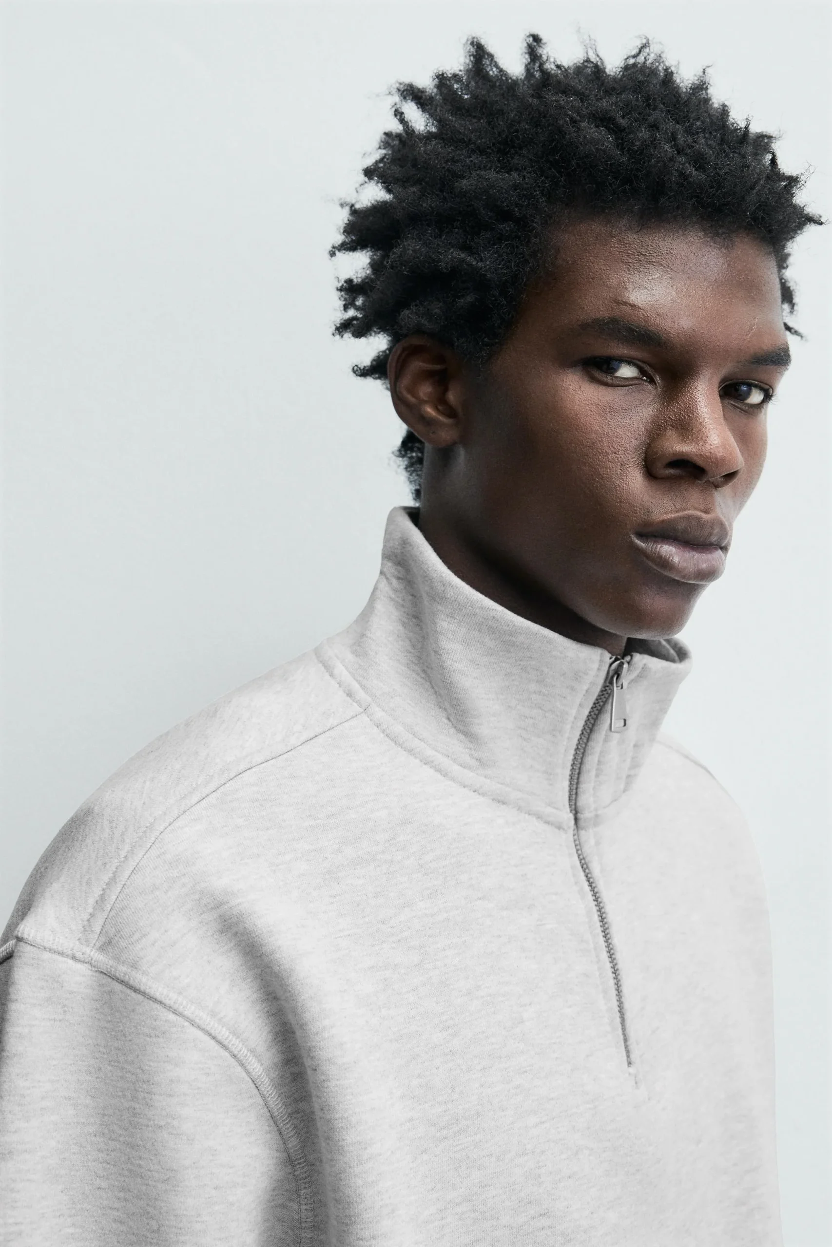 - طراحی: این سوئیشرت یقه زیپ دار بیسیک از برند زارا، با طراحی مینیمال و کاربردی خود، یک انتخاب هوشمندانه برای افزودن به کمد لباس شما محسوب می شود.