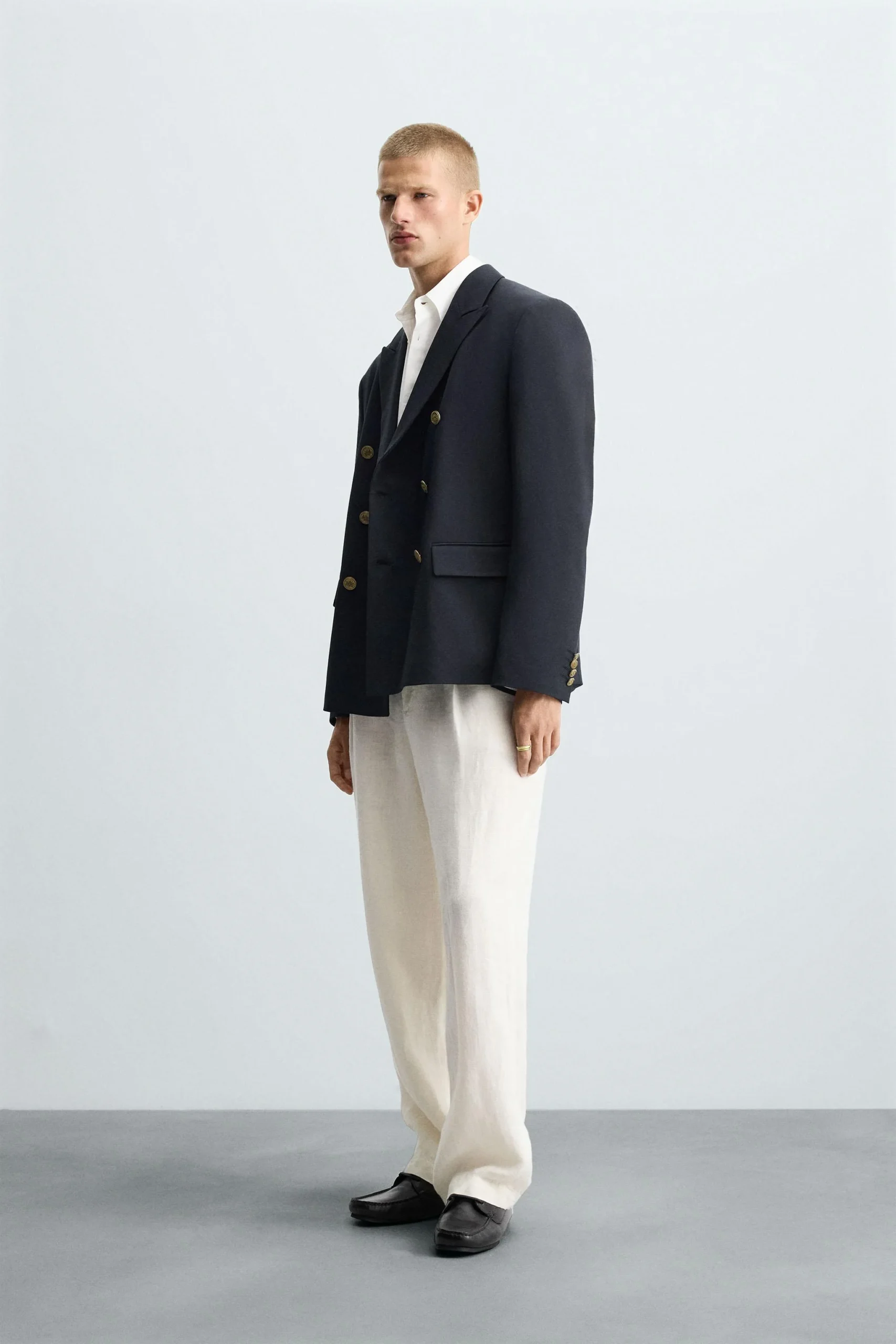 - طراحی و مدل: کت بلیزر دو ردیف دکمه با برش معمولی.