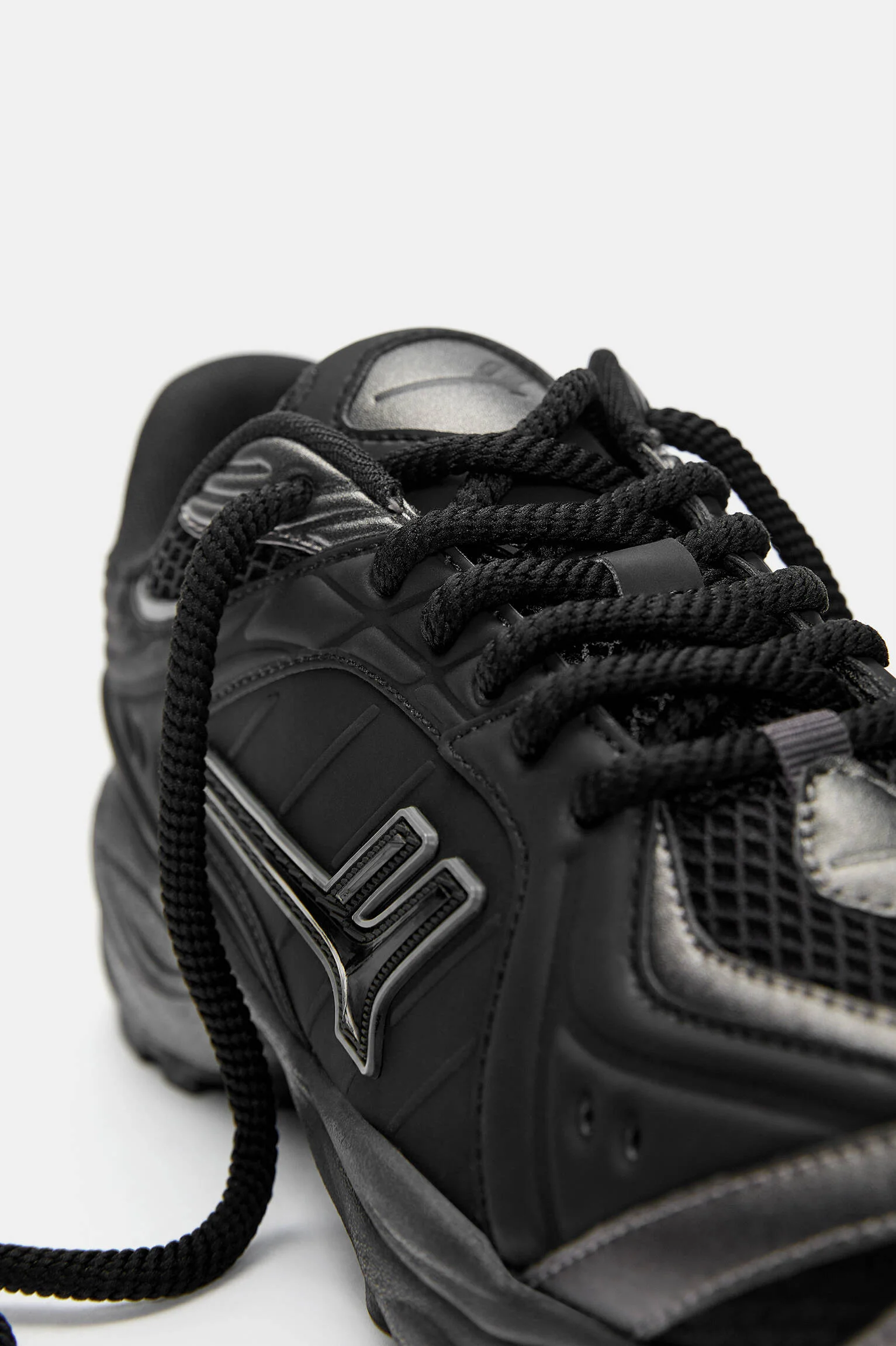 - طراحی: این کفش با طراحی مدرن و لایه بندی های چندگانه تولید شده است که شامل جزئیات متالیک براق و زیره ضخیم (Chunky) برای ایجاد استایلی جسورانه و مطابق با ترندهای روز دنیای مد و پوشاک می باشد. ساختار لژدار و بندهای کلاسیک آن، ظاهری اسپرت و در عین حال شیک به این کتانی بخشیده است.