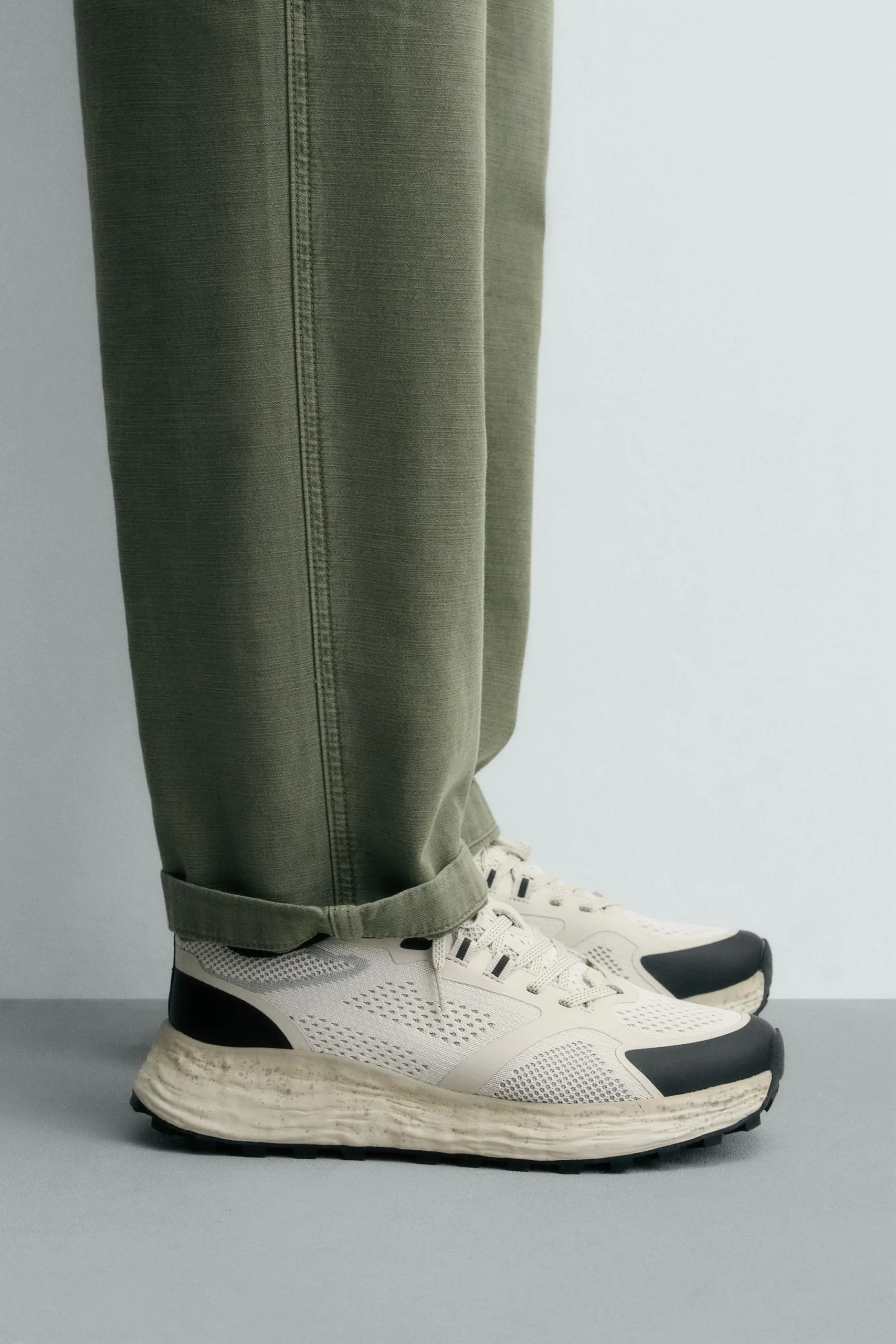 - طراحی: این کفش دارای طراحی مدرن و فنی با زیره ای حجیم و هندسه ای نامنظم است که جلوه ای متمایز و جسورانه به استایل روزمره شما می بخشد. ترکیب قطعات مختلف در بخش رویه، ساختاری لایه بندی شده و جذاب ایجاد کرده است که با ترندهای روز دنیای مد هماهنگ است.