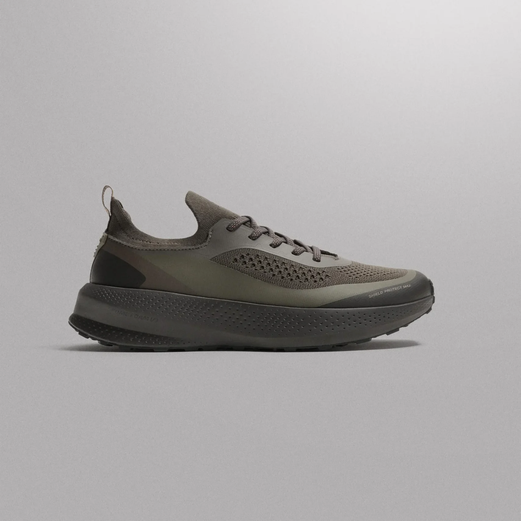 - متریال استفاده شده: رویه این محصول از پارچه بافتنی (Knitted) با قابلیت گردش هوا ساخته شده و در قسمت پنجه و پاشنه از متریال مقاوم Shield Protect Max برای جلوگیری از سایش و افزایش طول عمر کفش استفاده شده است.
