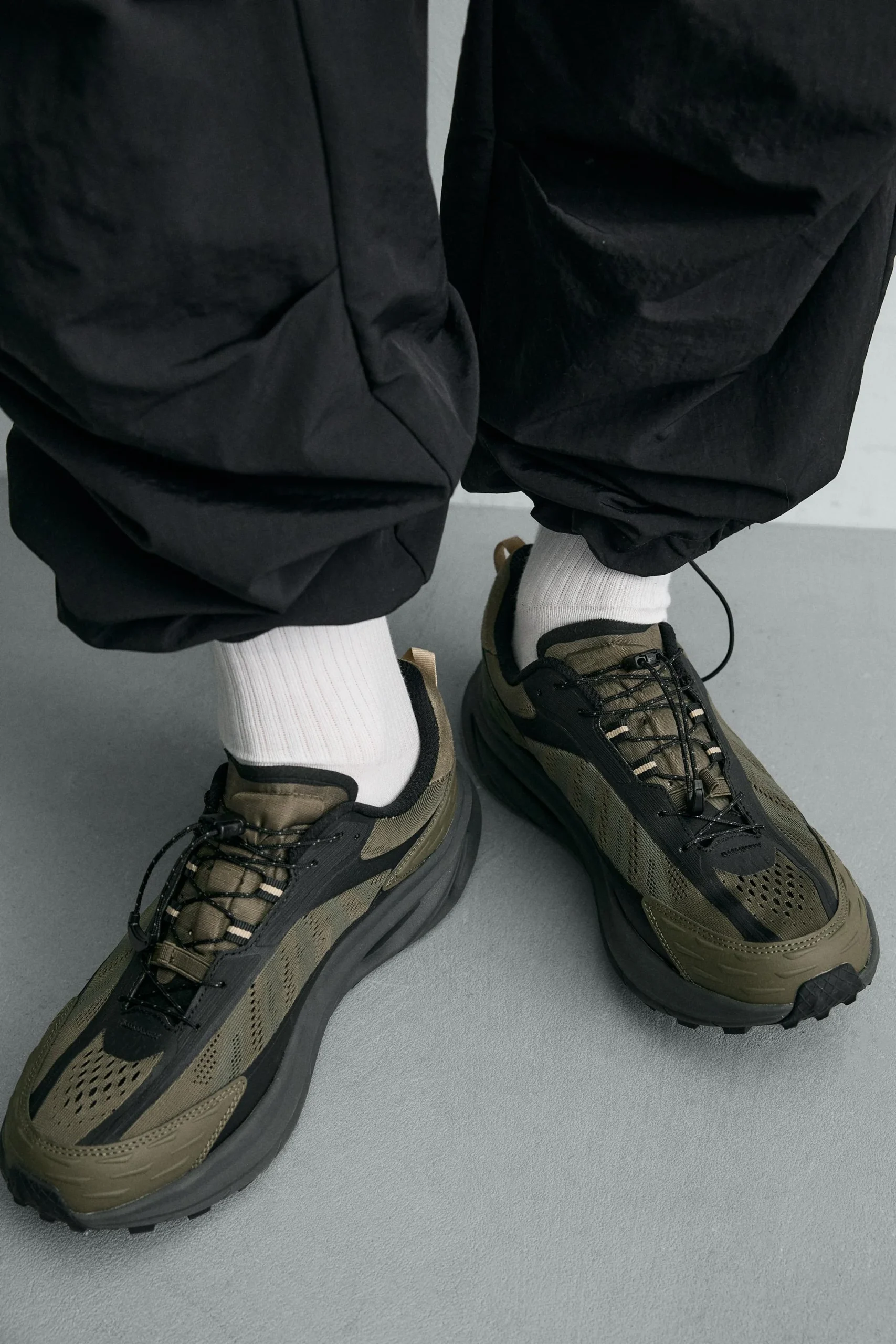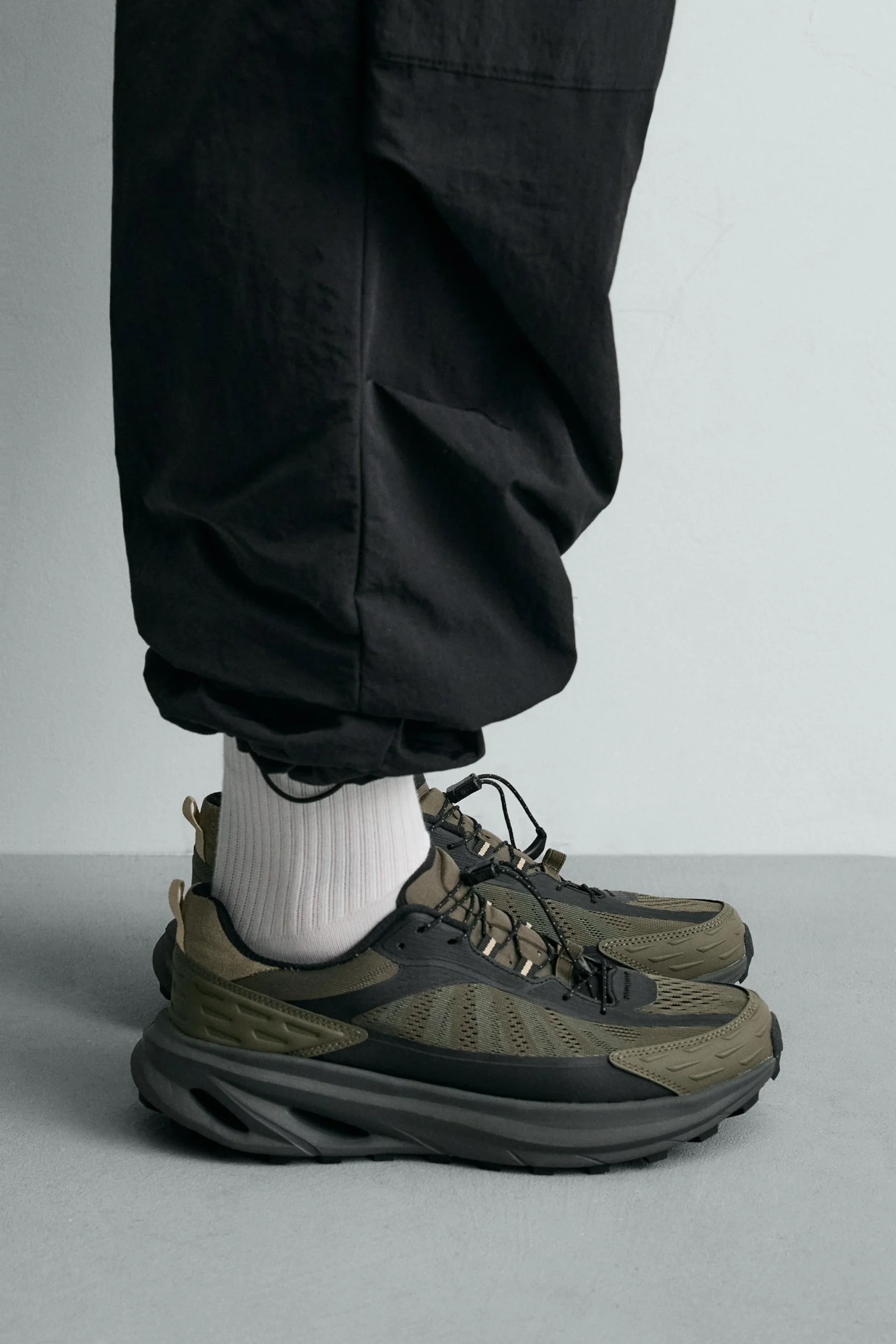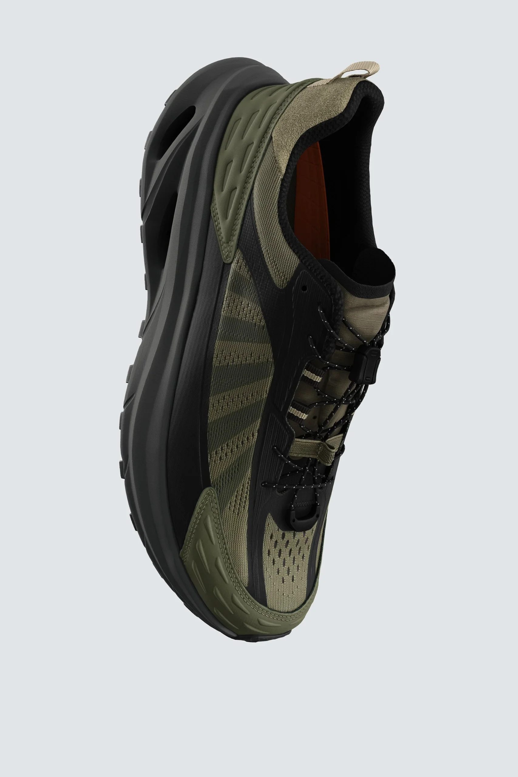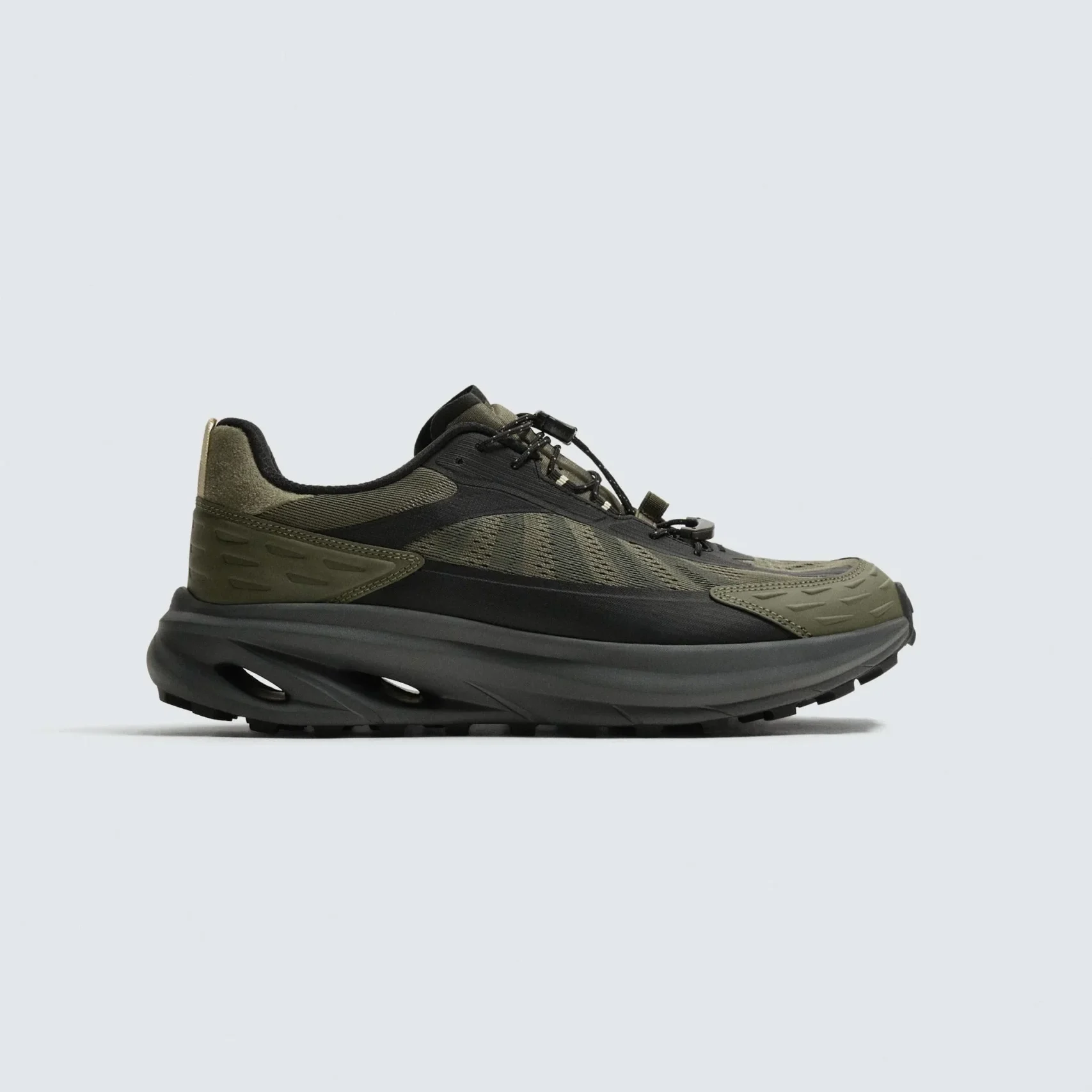 - طراحی: این کفش با طراحی مدرن و مینیمال، دارای رویه ای یکپارچه از جنس بافت است که به خوبی با فرم پای کاربر سازگار می شود. ترکیب رنگ سبز تیره و جزئیات فنی در قسمت بندها، ظاهری اسپرت و در عین حال شیک به این مدل بخشیده است.