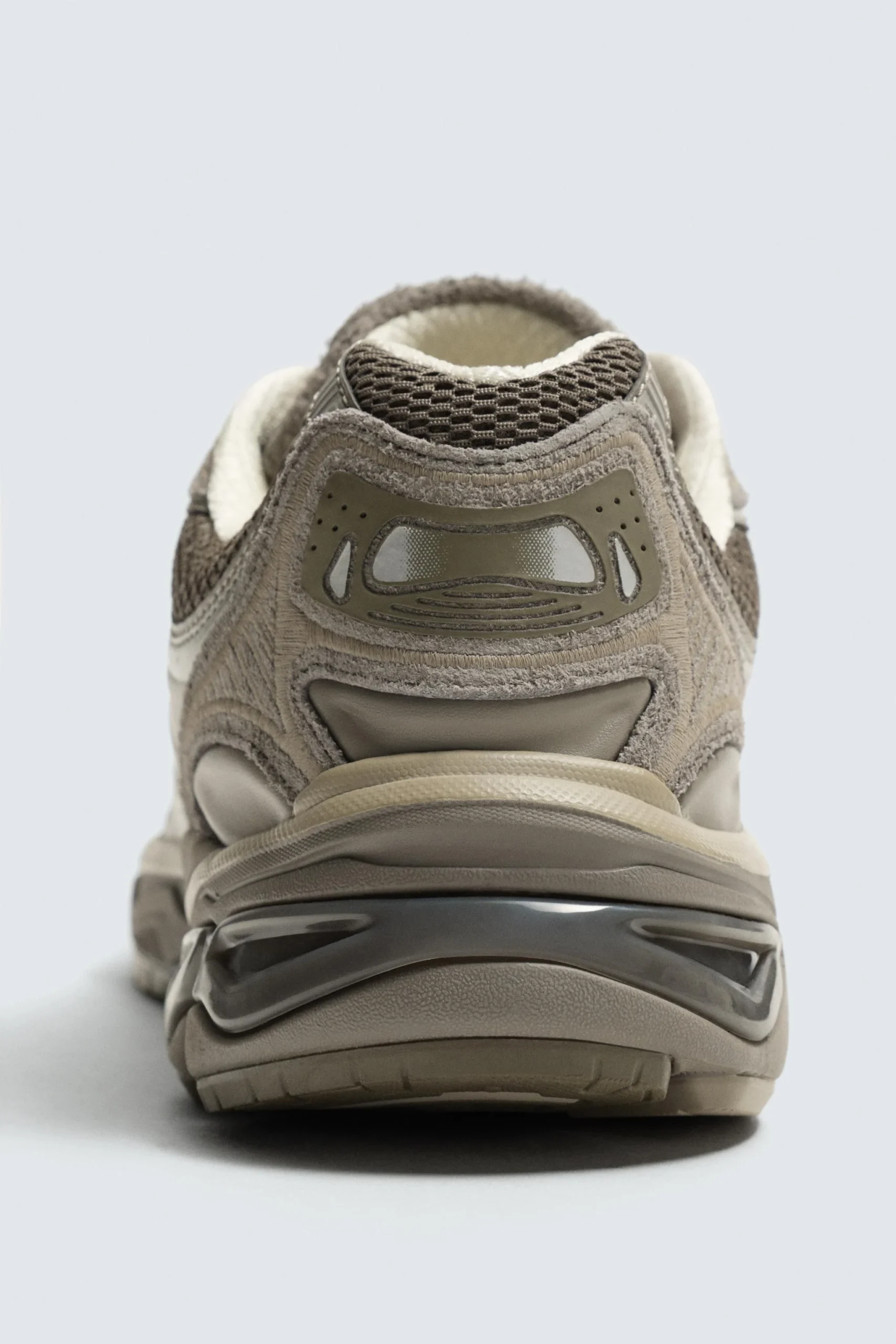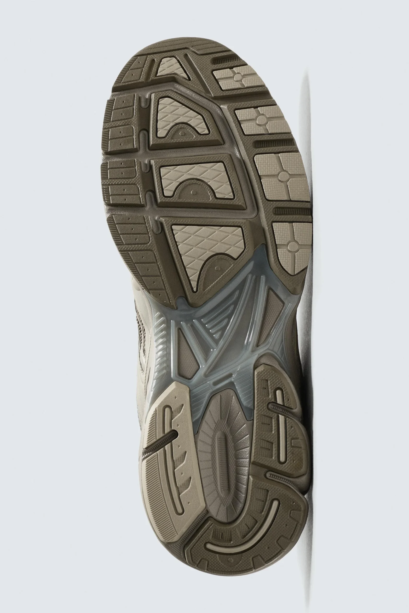 - طراحی: این کفش با الهام از سبک رانینگ طراحی شده است و بهره گیری از زیره ضخیم (Chunky) با لبه های نامنظم، ظاهری مدرن، جسورانه و کاملاً متمایز به استایل روزمره شما می بخشد.