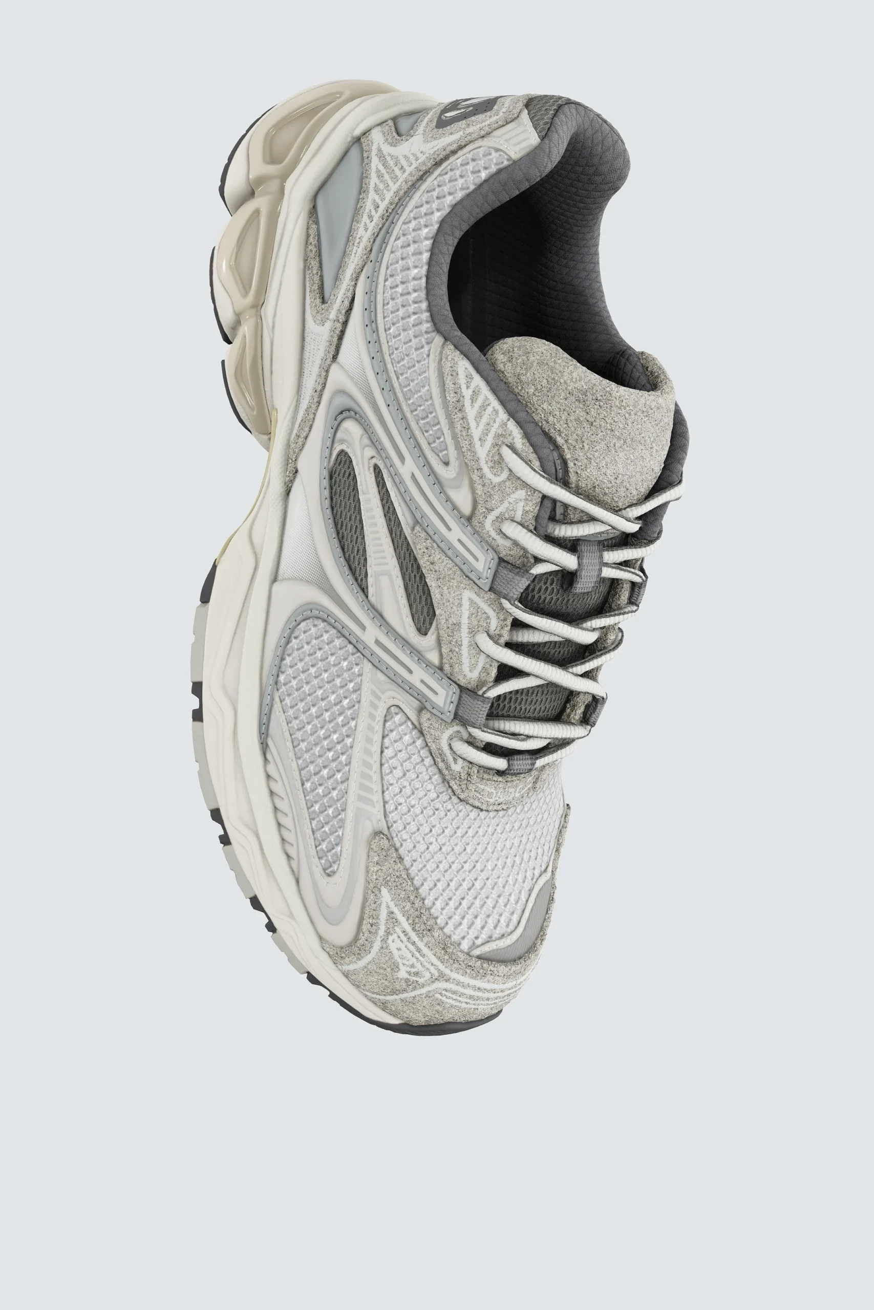 - طراحی: این کفش با الهام از سبک رانینگ طراحی شده است و دارای زیره ضخیم (Chunky) با خطوط نامنظم و مدرن است که جلوه ای خاص به استایل کژوال شما می بخشد.