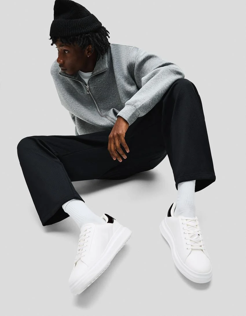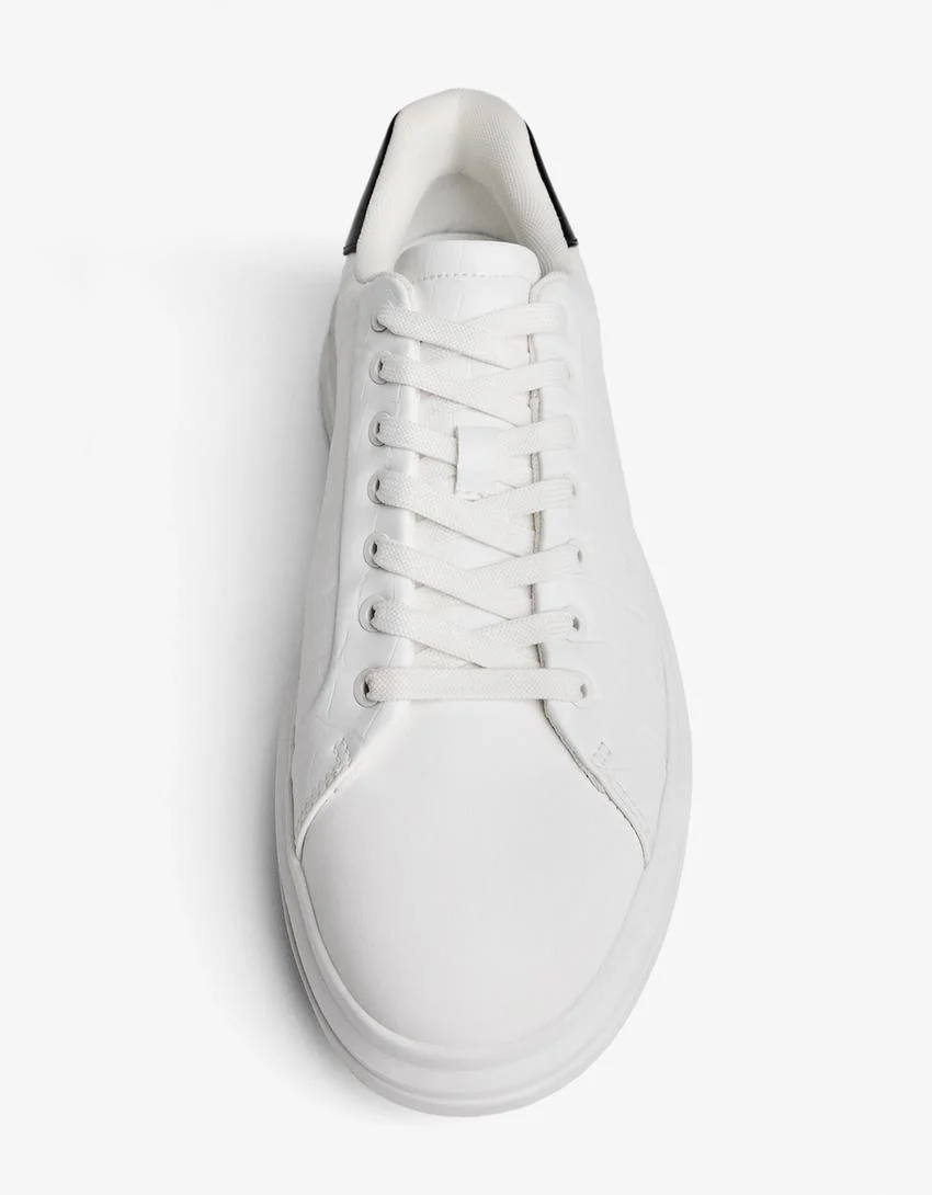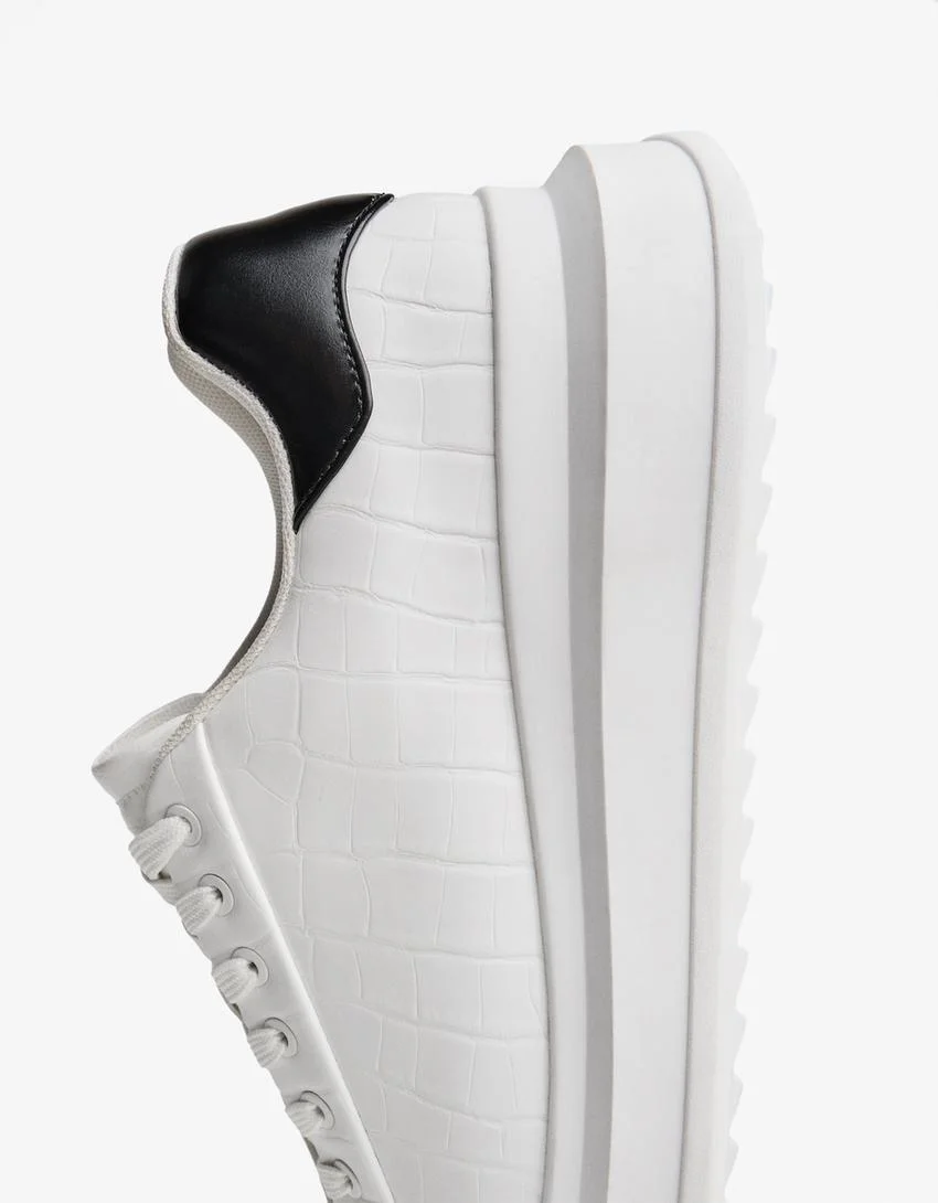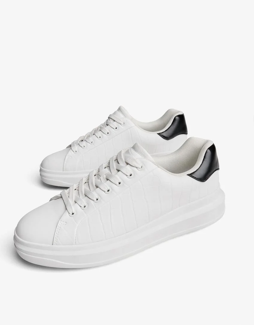 - مدل: Chunky embossed trainers. این نام مستقیماً به طراحی حجیم و جزئیات برجسته به کار رفته در بدنه این کفش مدرن اشاره دارد.