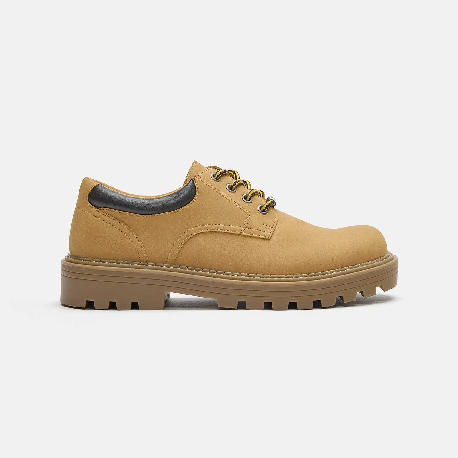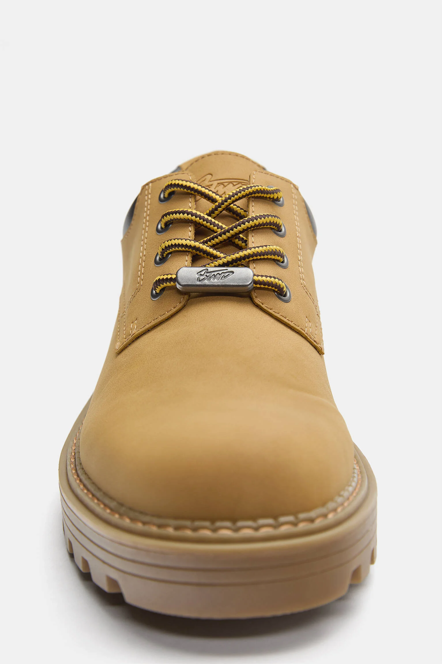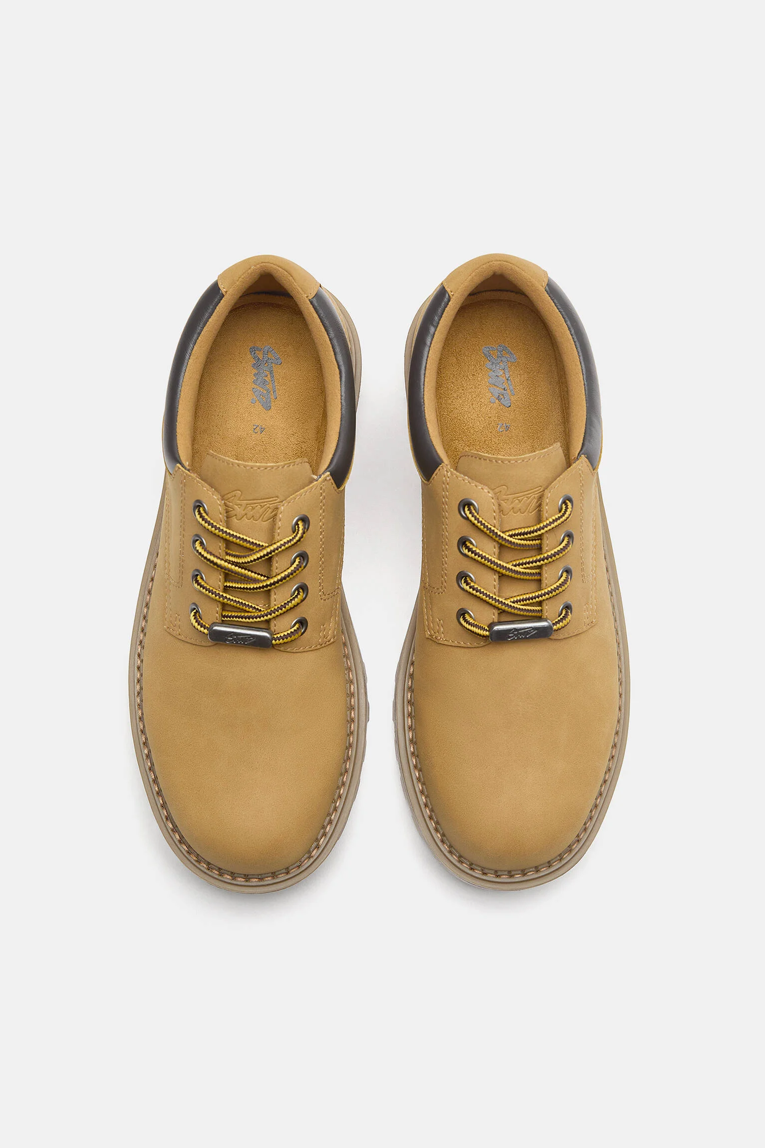 - طراحی: این کفش با رنگ خردلی (Mustard) و طراحی تخت و مدرن ارائه شده است که دارای اپلیکه لوگوی STWD در قسمت جلویی بوده و با بندهای هم رنگ بسته می شود.