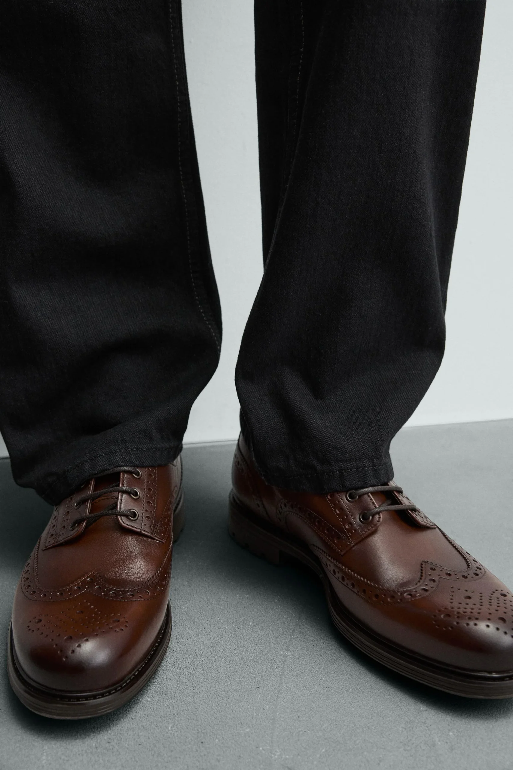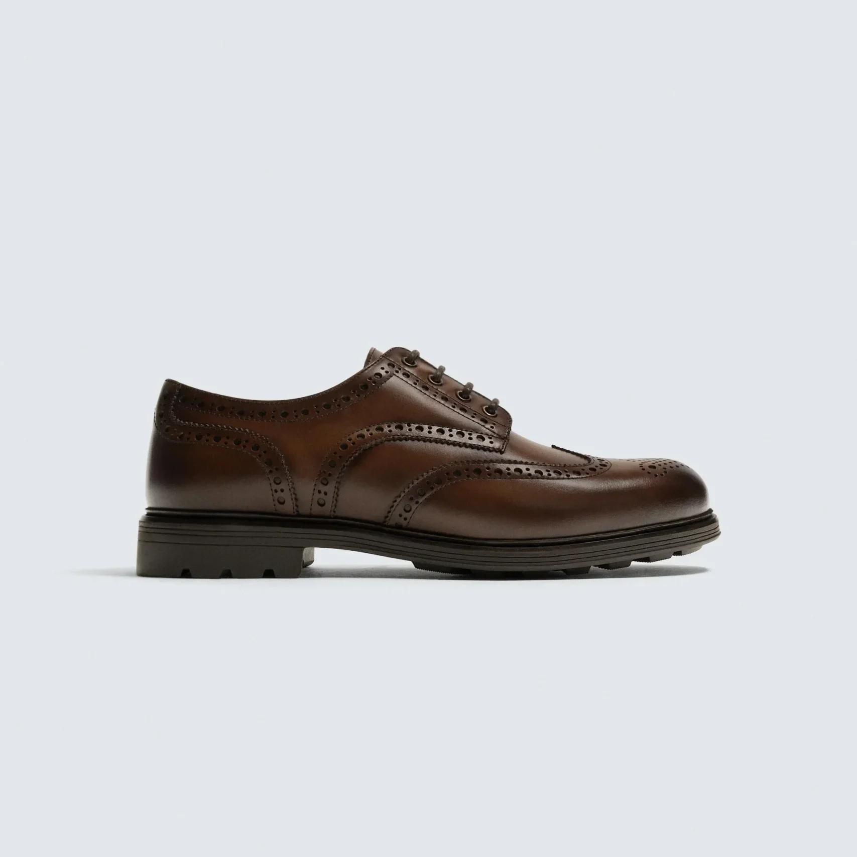 - Design: این کفش دربی چرمی زارا با جزئیات بروگ و پنجه گرد طراحی شده است که ظاهری کلاسیک و شیک دارد.