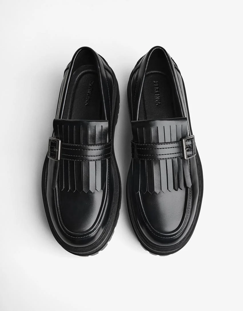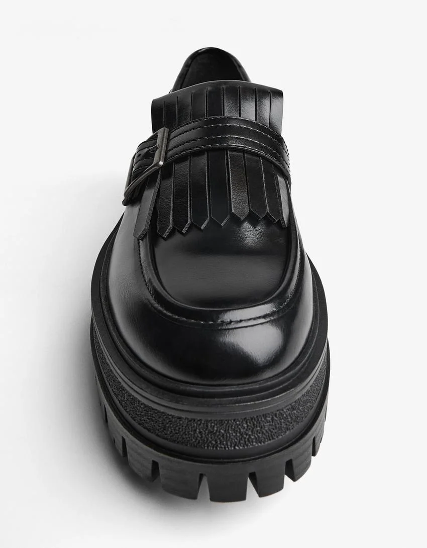 - طراحی: این محصول با الهام از سبک کلاسیک لوفر و ترکیب آن با ترندهای مدرن طراحی شده است که دارای زیره ضخیم (Chunky) و یک سگک فلزی تزئینی برای ایجاد استایلی جسورانه و متمایز می باشد.