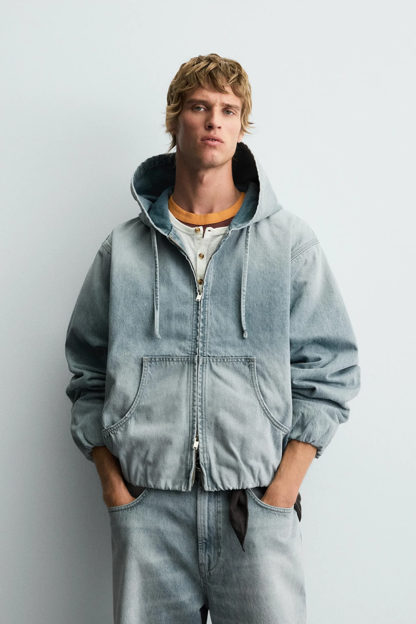 - طراحی یا عنوان: کاپشن جین هودی دار
