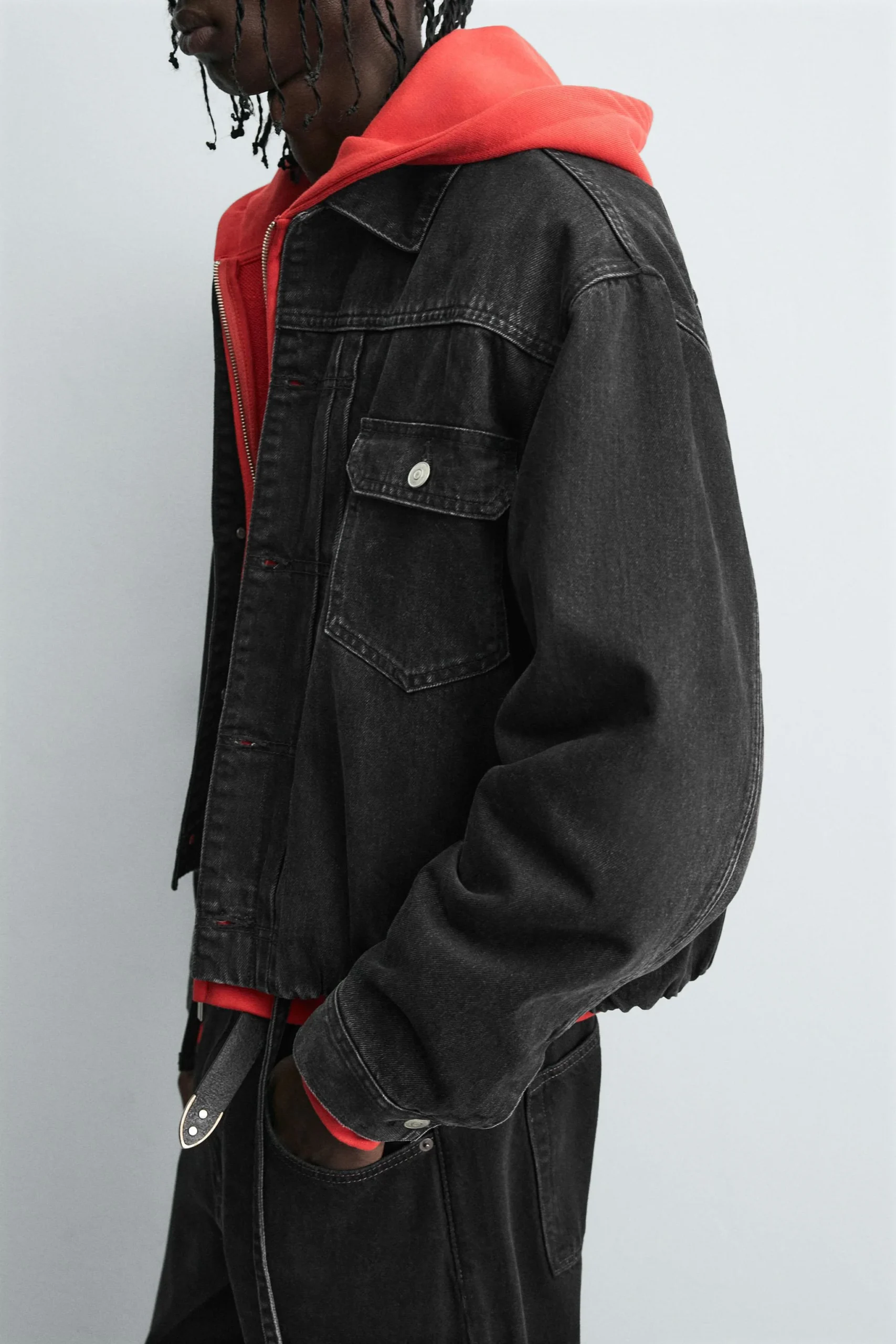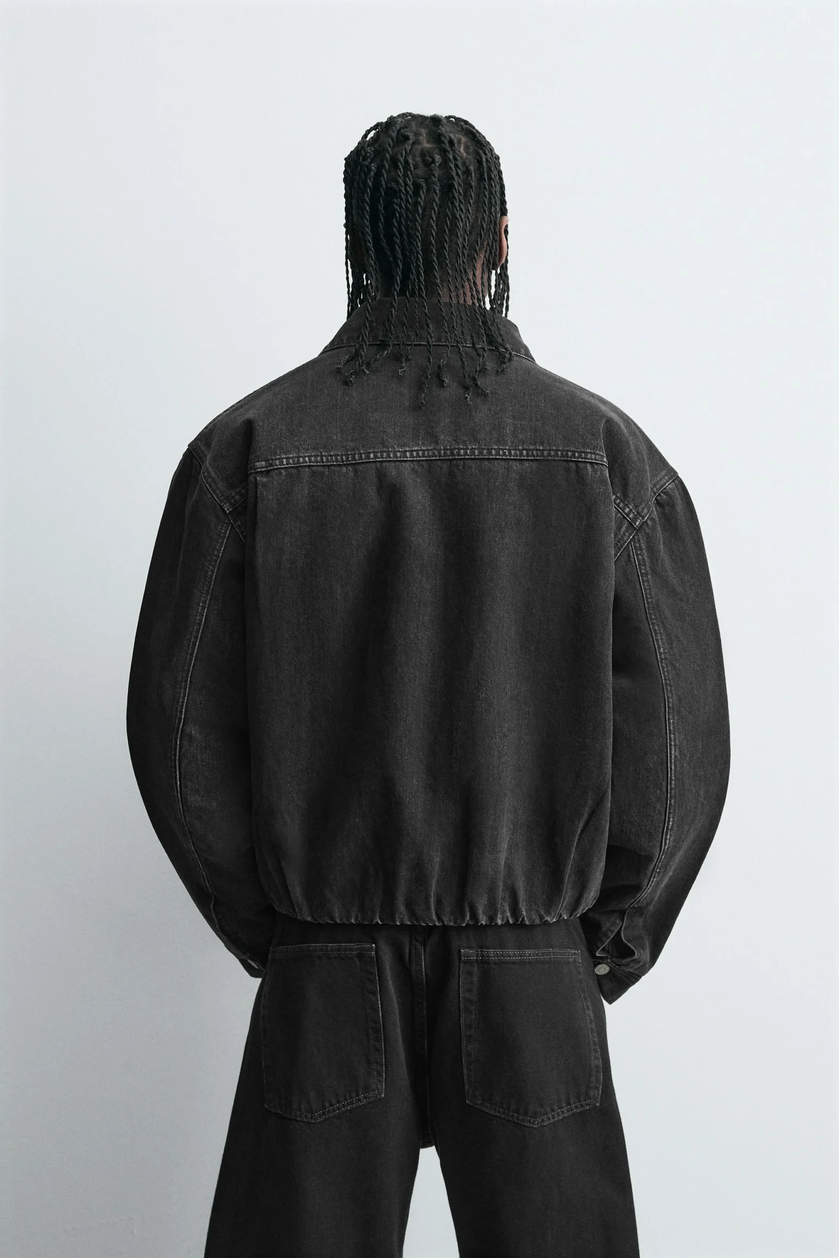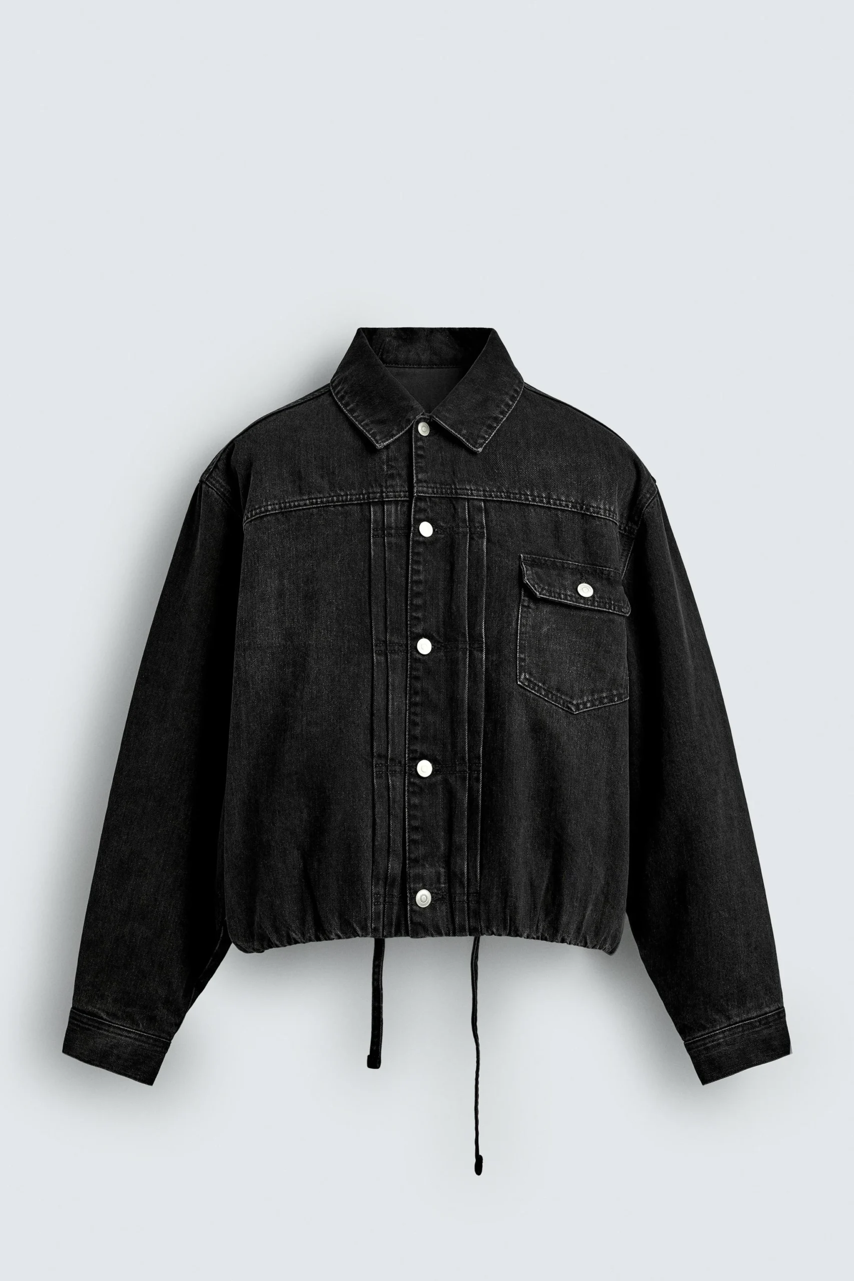 - طراحی: کاپشن جین مشکی با برش آزاد (باکسی فیت) و طراحی لحاف دوزی شده که ظاهری مدرن و جذاب دارد.
