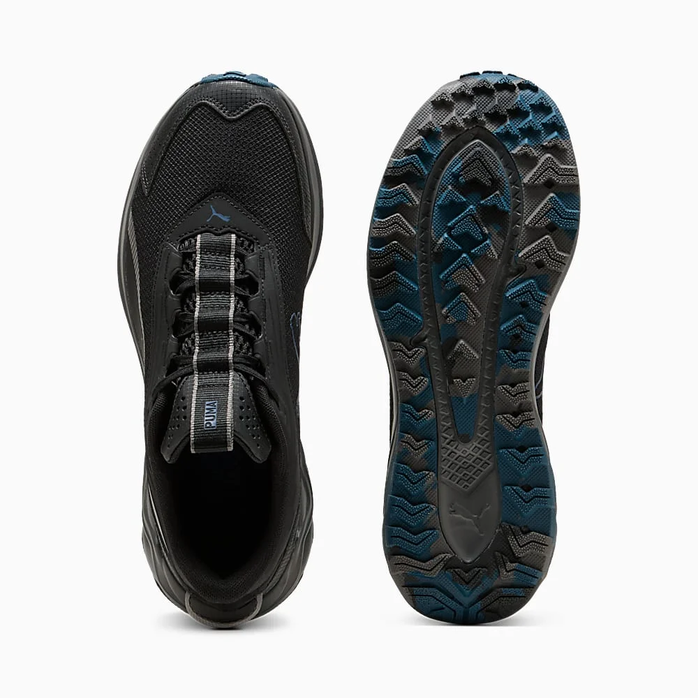 - طراحی: این کفش با طراحی تخصصی برای مسیرهای ناهموار (Trail) تولید شده و دارای جزئیات گرافیکی اختصاصی سری PUMA Trail به همراه نوار نمادین فرم استریپ در کناره ها است.