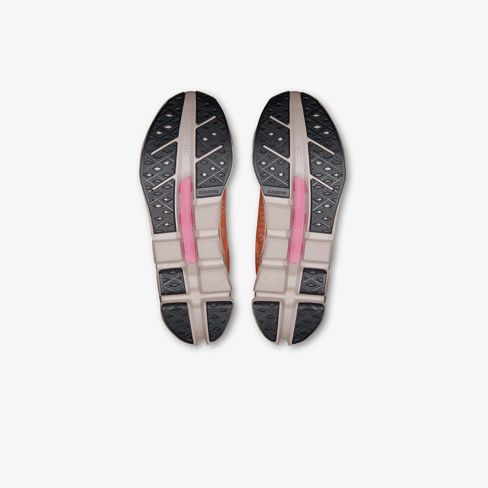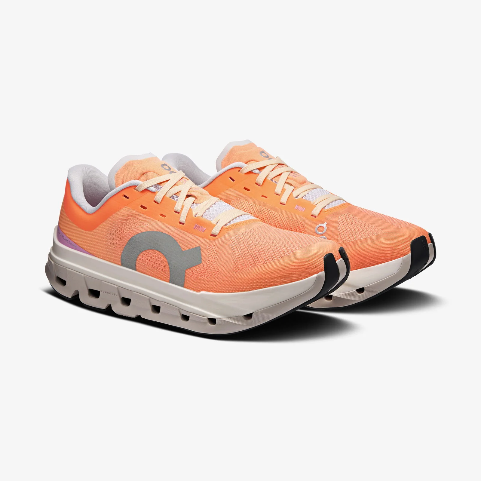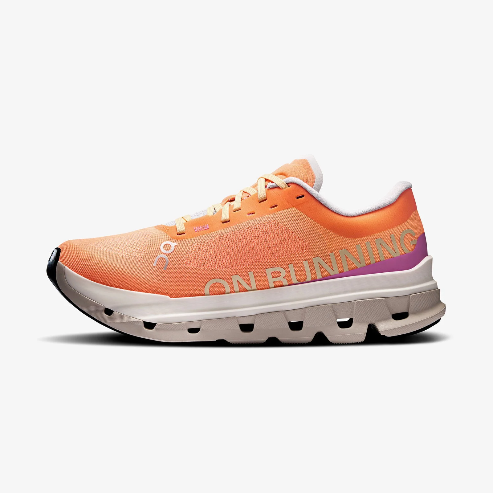 - طراحی: کفش دویدن زنانه On Cloudflow نارنجی با طراحی مدرن، پویا و پرانرژی خود، تجربه ای منحصر به فرد از سرعت و شیک پوشی را در دویدن های شما به ارمغان می آورد.