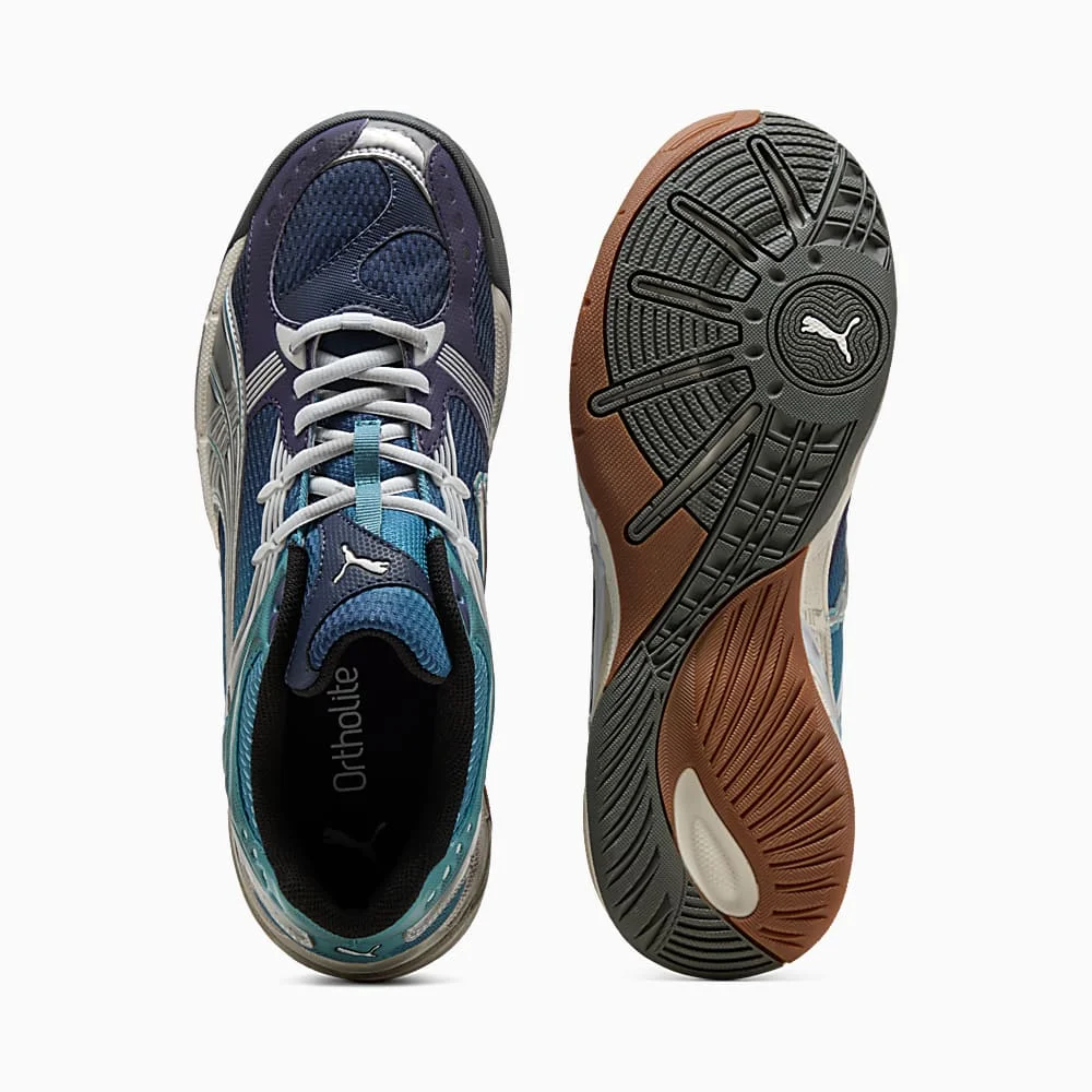 - طراحی: این کفش با الهام از سیلوئت های کلاسیک ورزشی پوما طراحی شده است و با بهره گیری از جزئیات مدرن مانند نوار متالیک PUMA Formstrip در کناره ها و طراحی پنجه گرد، ظاهری جذاب و در عین حال کاربردی را برای استایل های اسپرت فراهم می آورد.