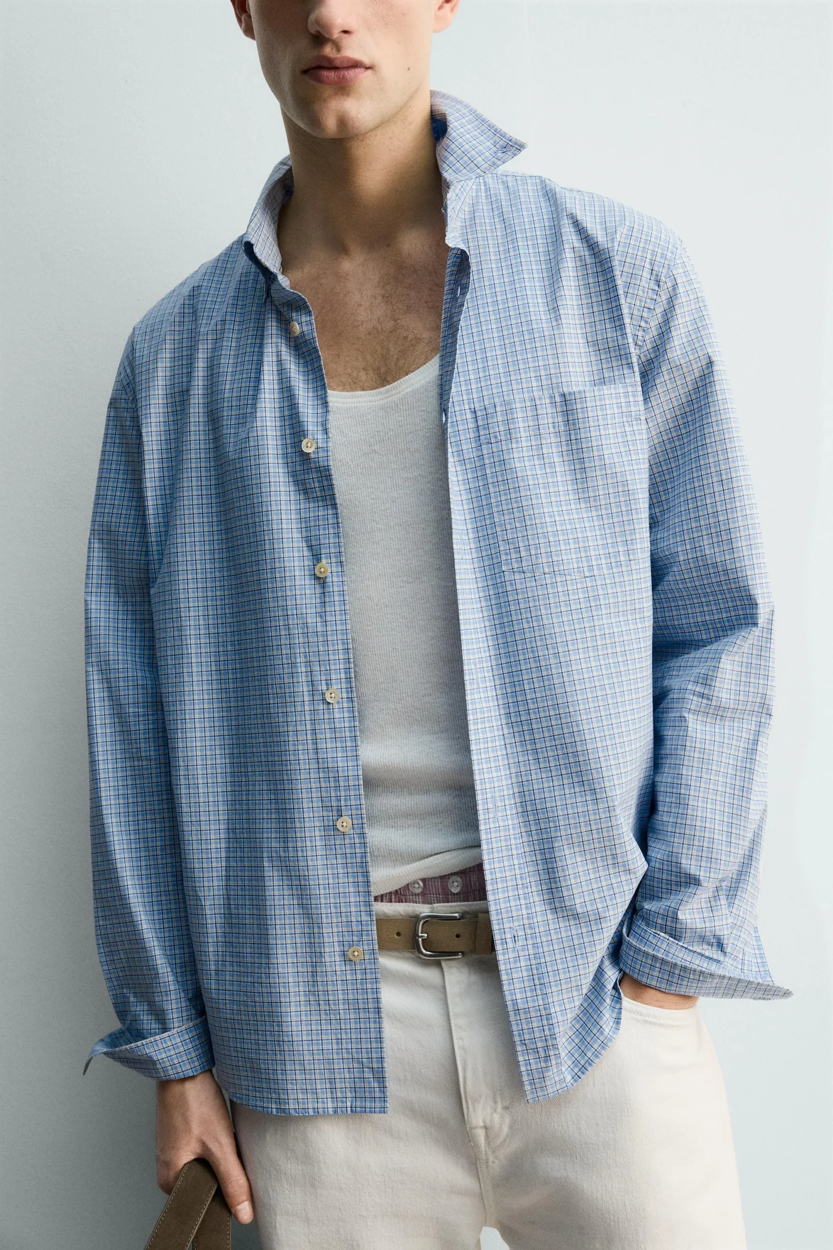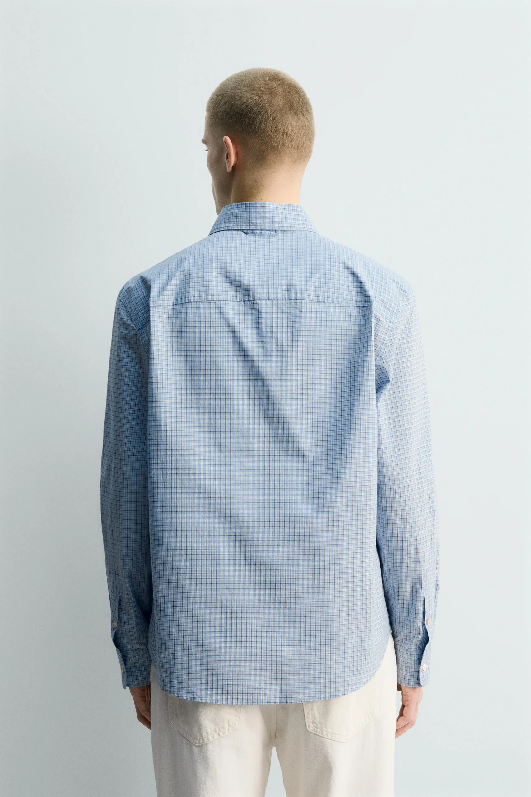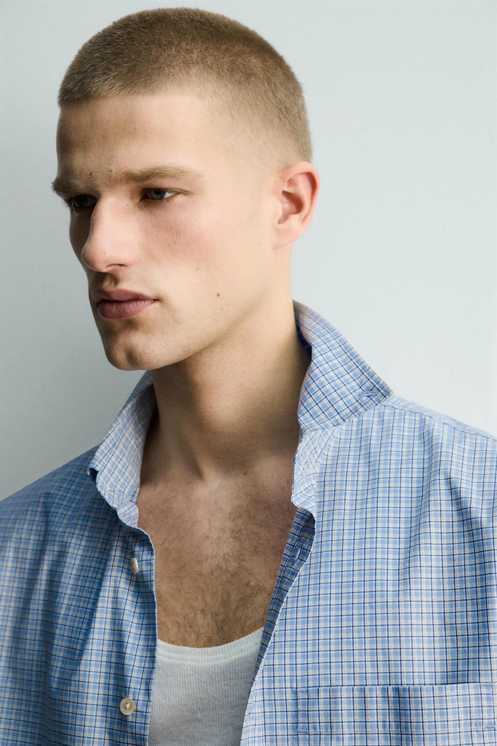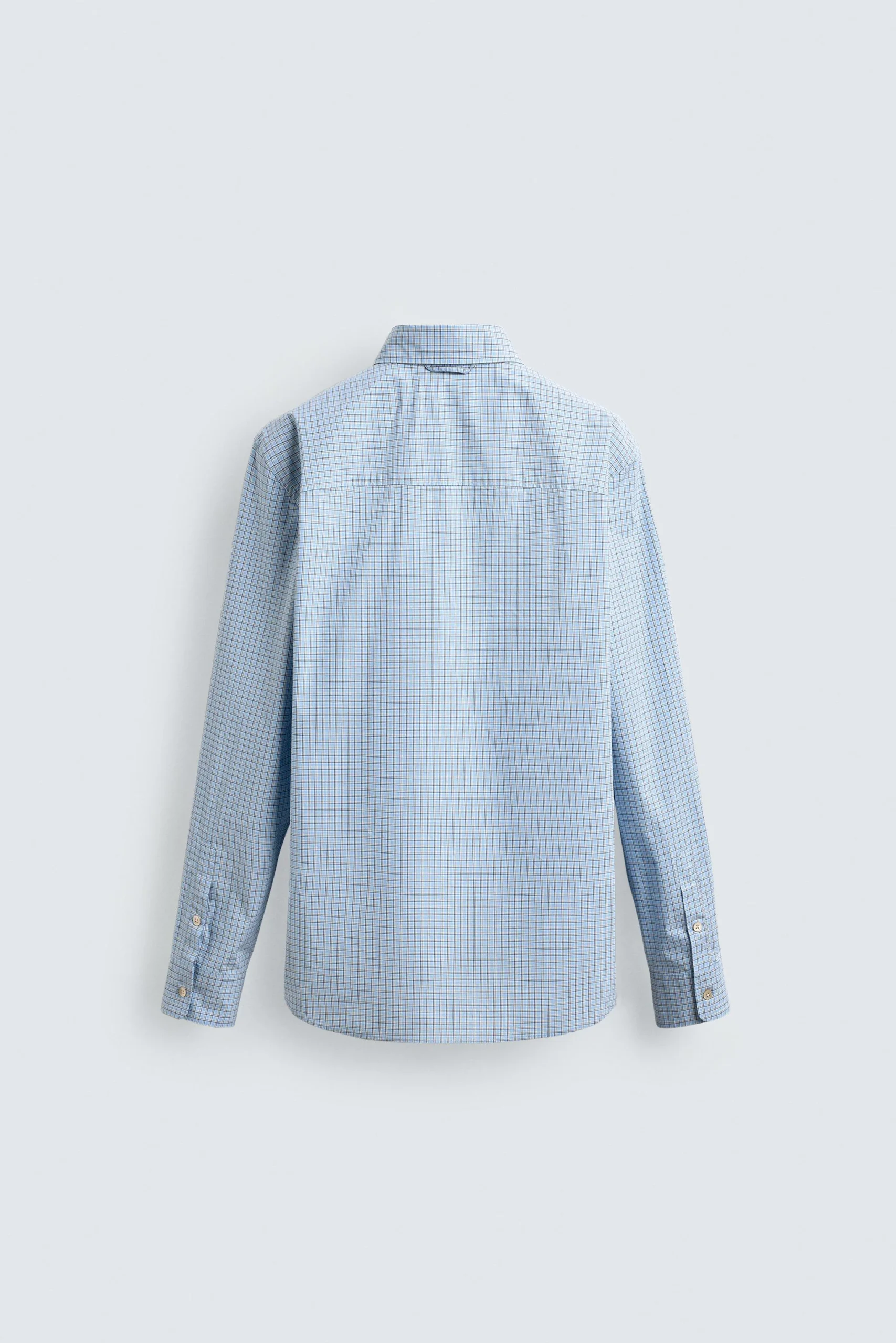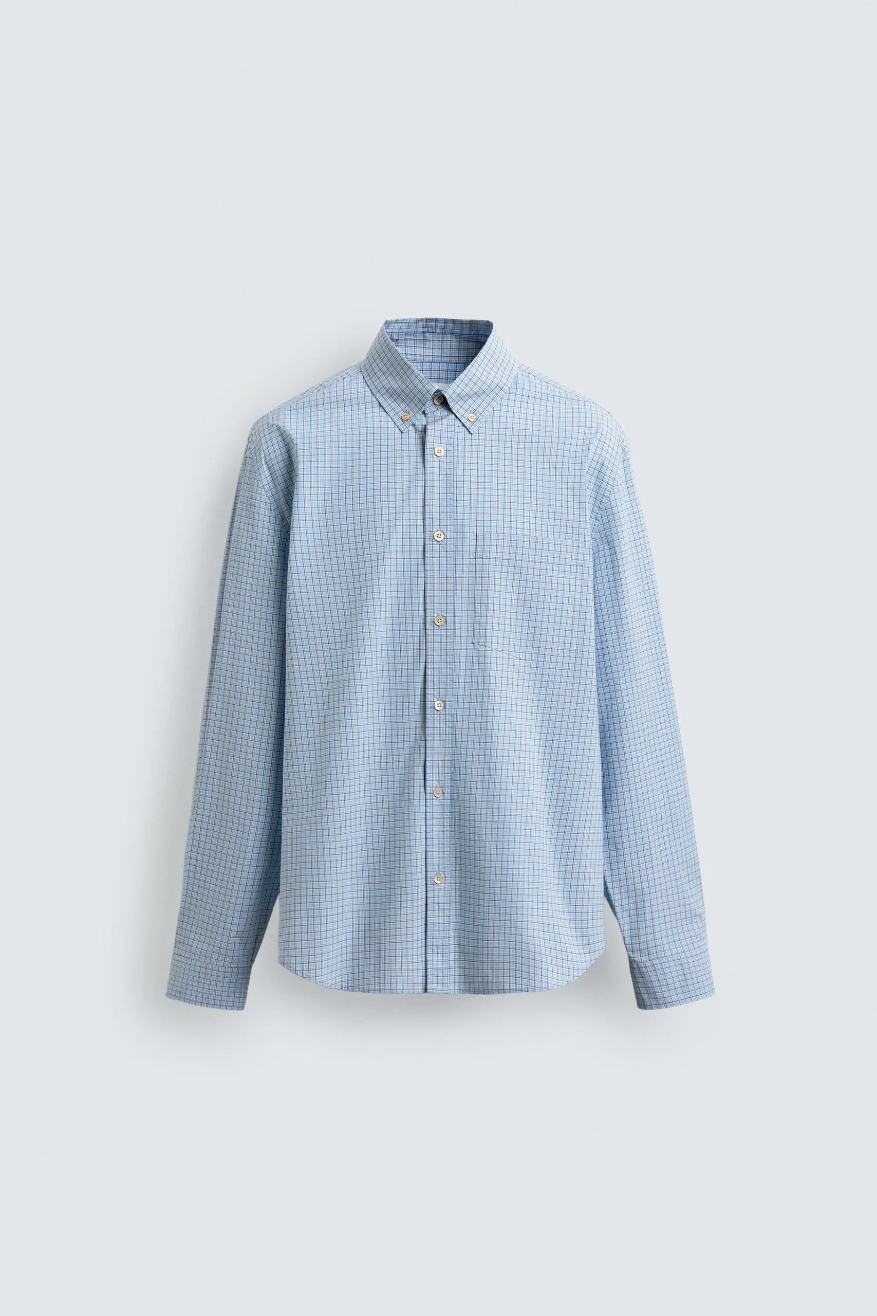 - طراحی: این پیراهن با برش آزاد و راحت (Relaxed fit) طراحی شده است که در کنار رنگ آبی آسمانی و طرح چهارخانه کلاسیک، ظاهری مدرن و شیک را برای استایل های کژوال فراهم می کند.