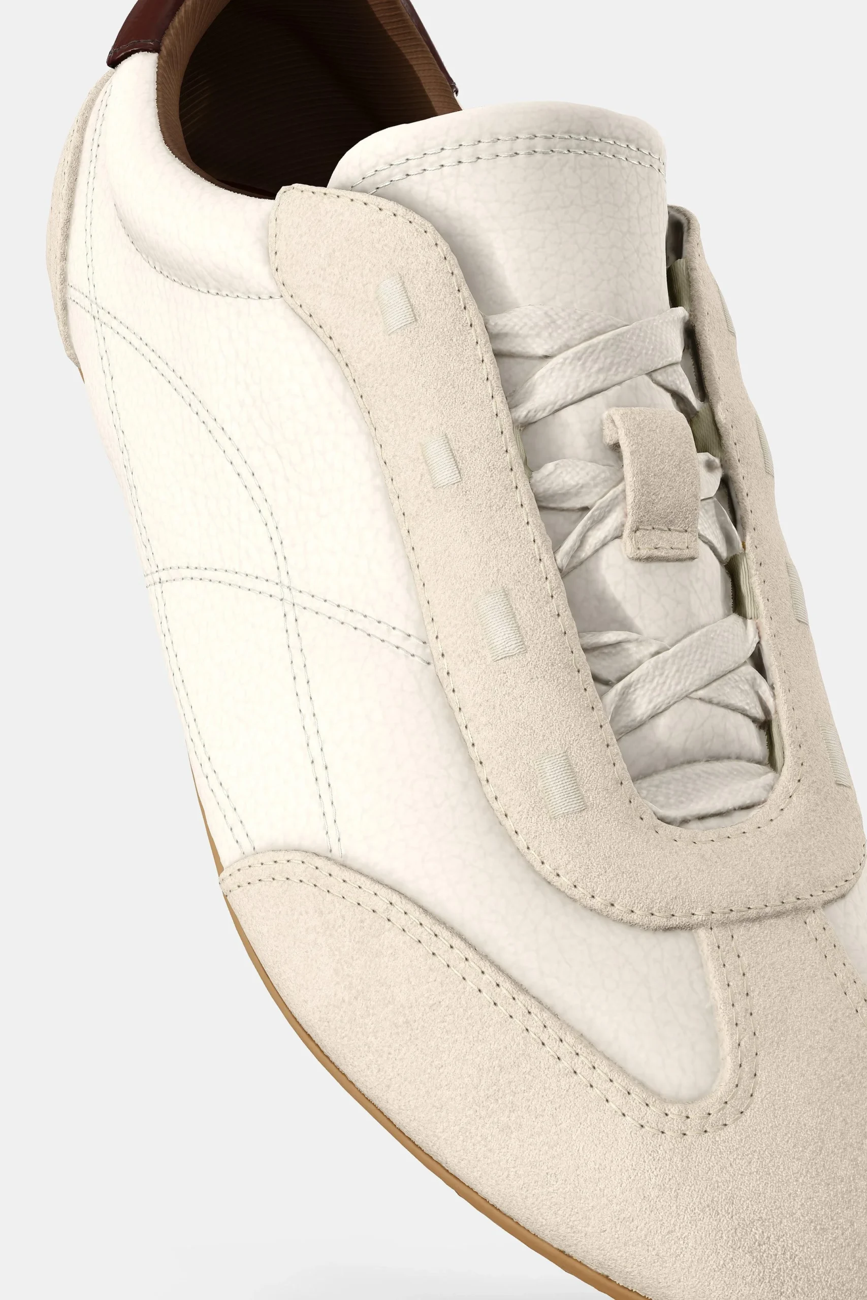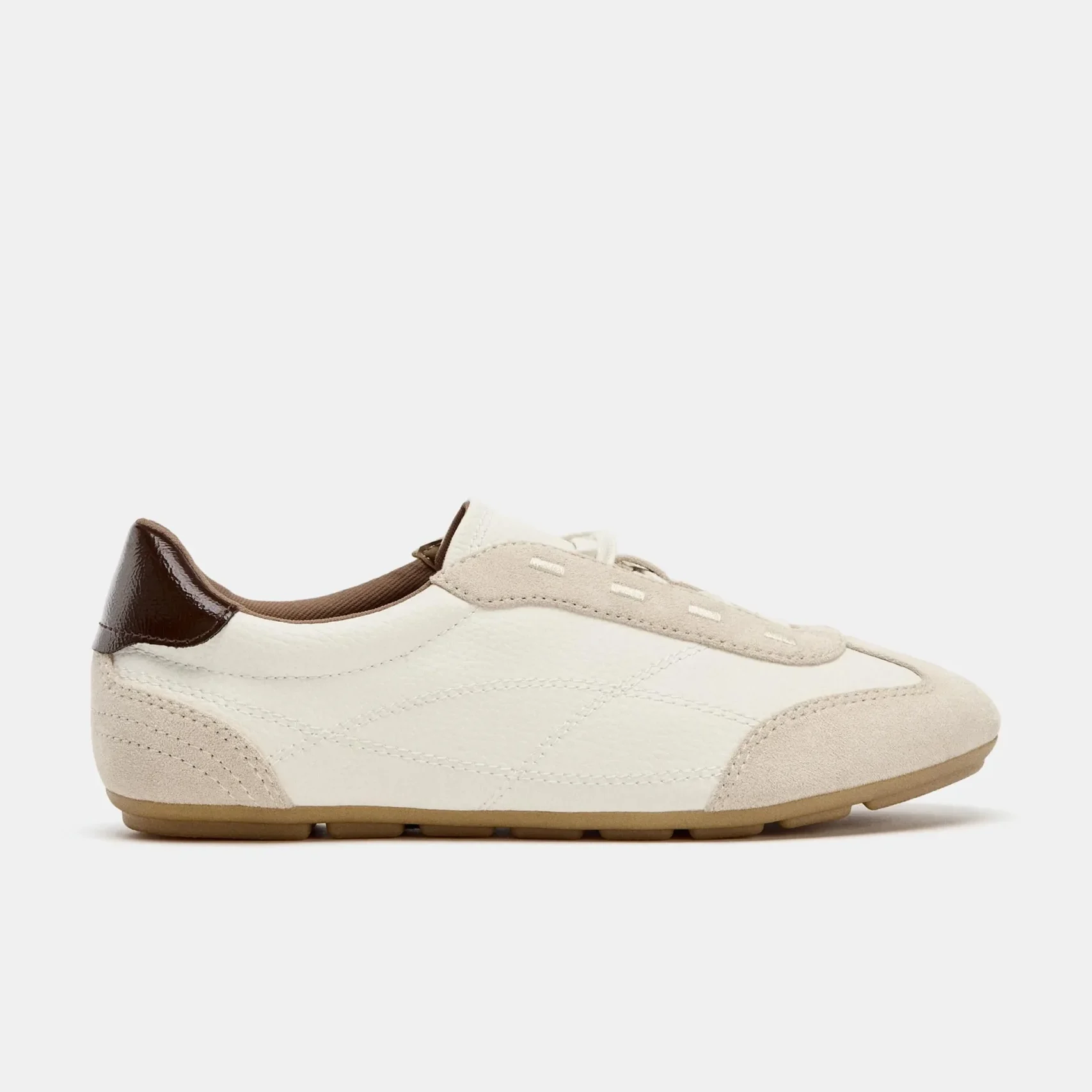 - طراحی: این کفش با الهام از استایل کتانی های مخصوص دویدن طراحی شده است و بهره گیری از جزئیات رنگی متضاد و ترکیب متریال های مختلف در قسمت پاشنه، ظاهری مدرن، اسپرت و در عین حال ظریف به آن بخشیده است.