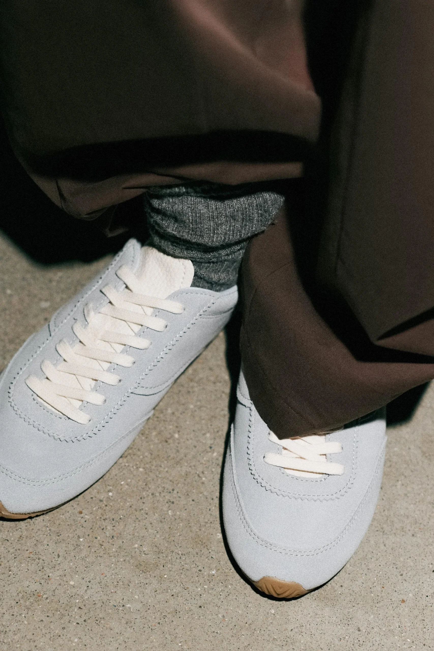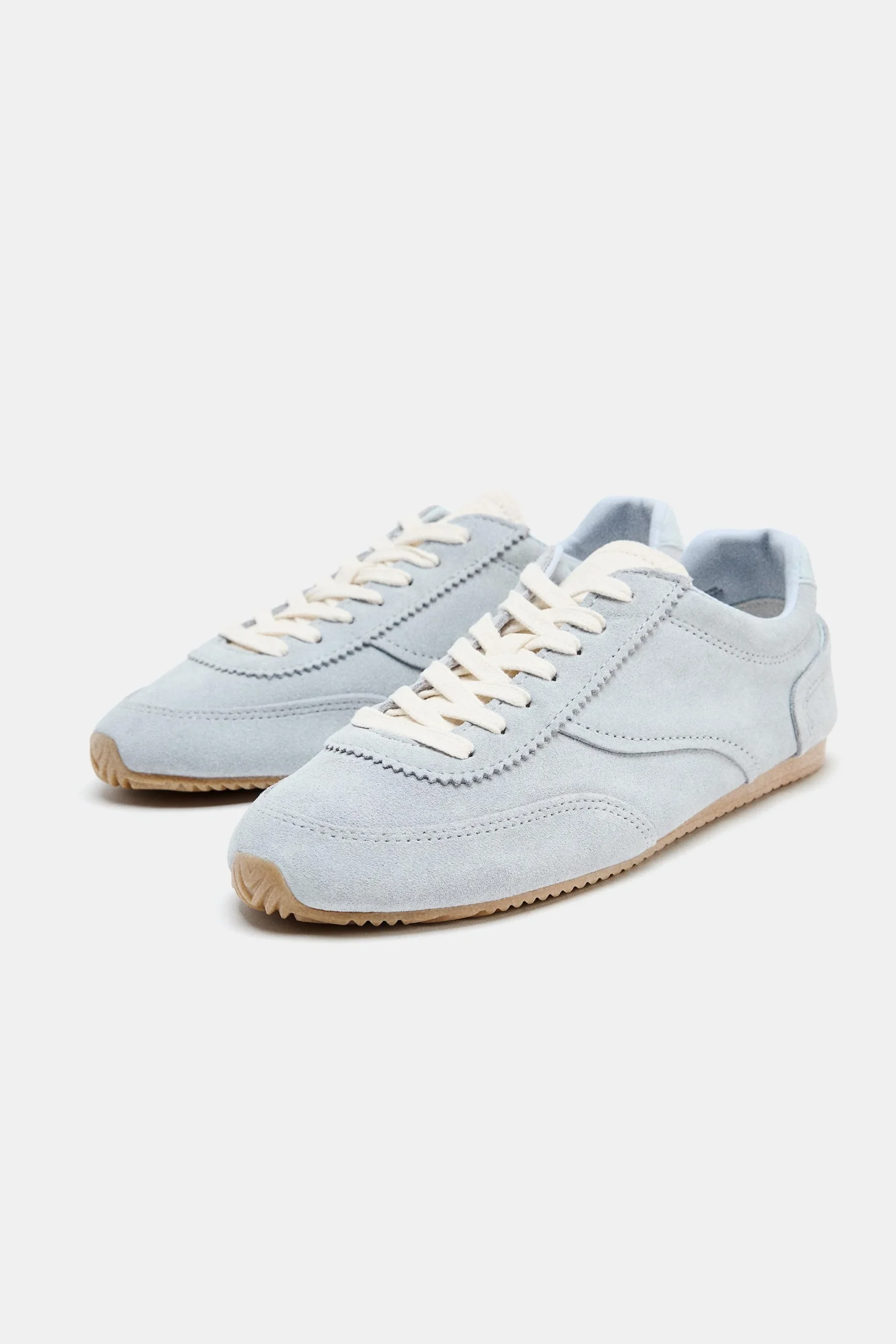 - طراحی محصول: کفش ورزشی چرمی با جزئیات کنتراست.