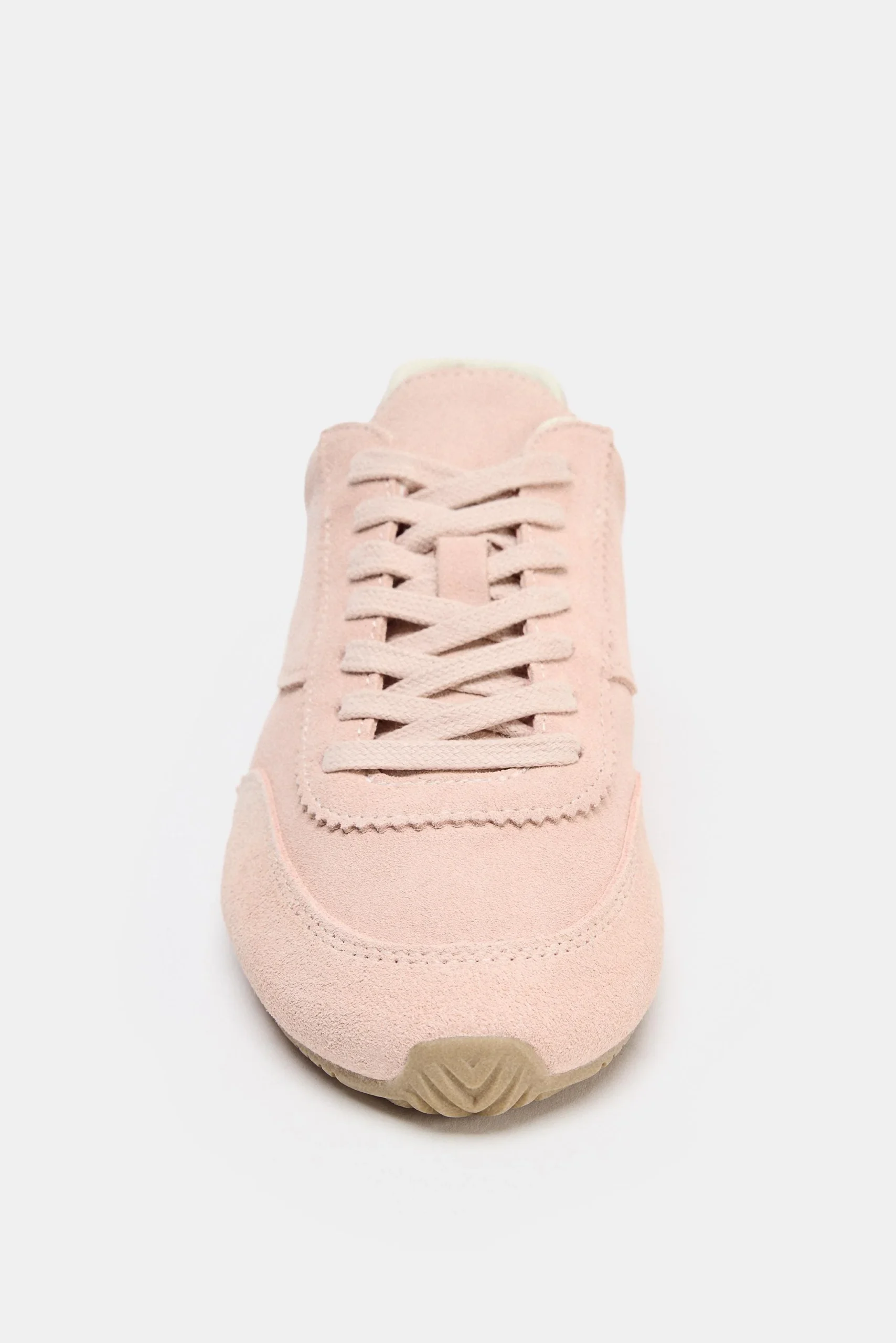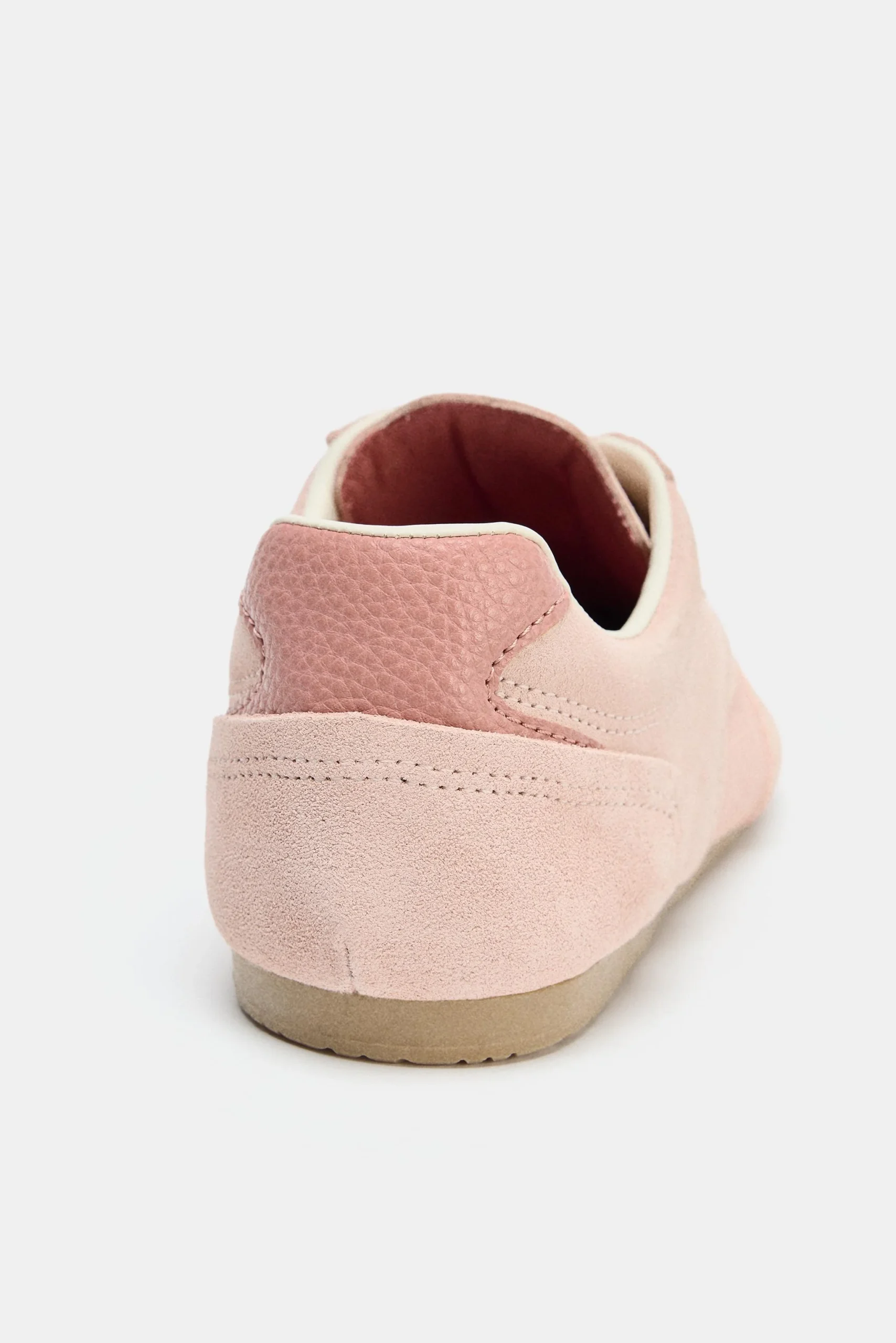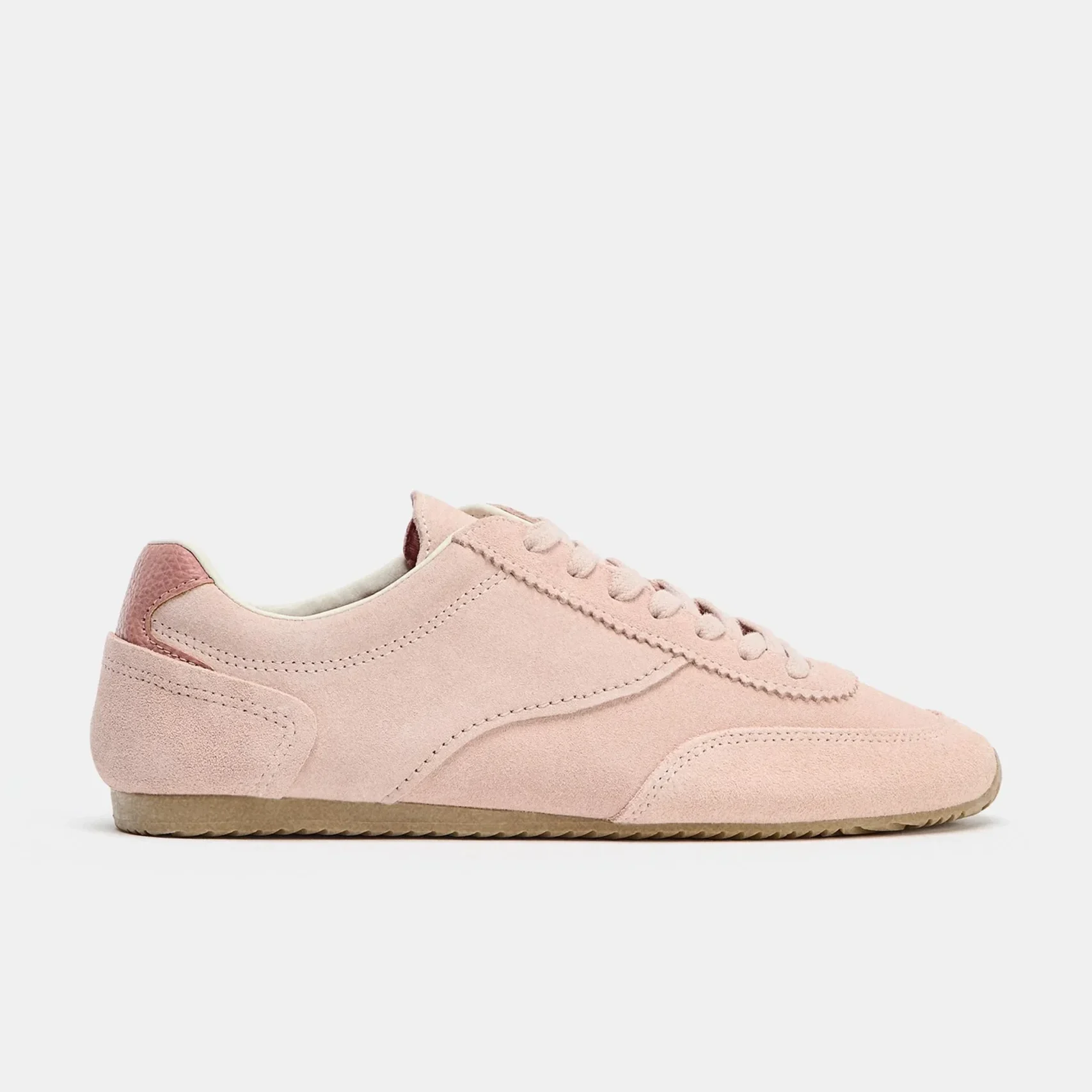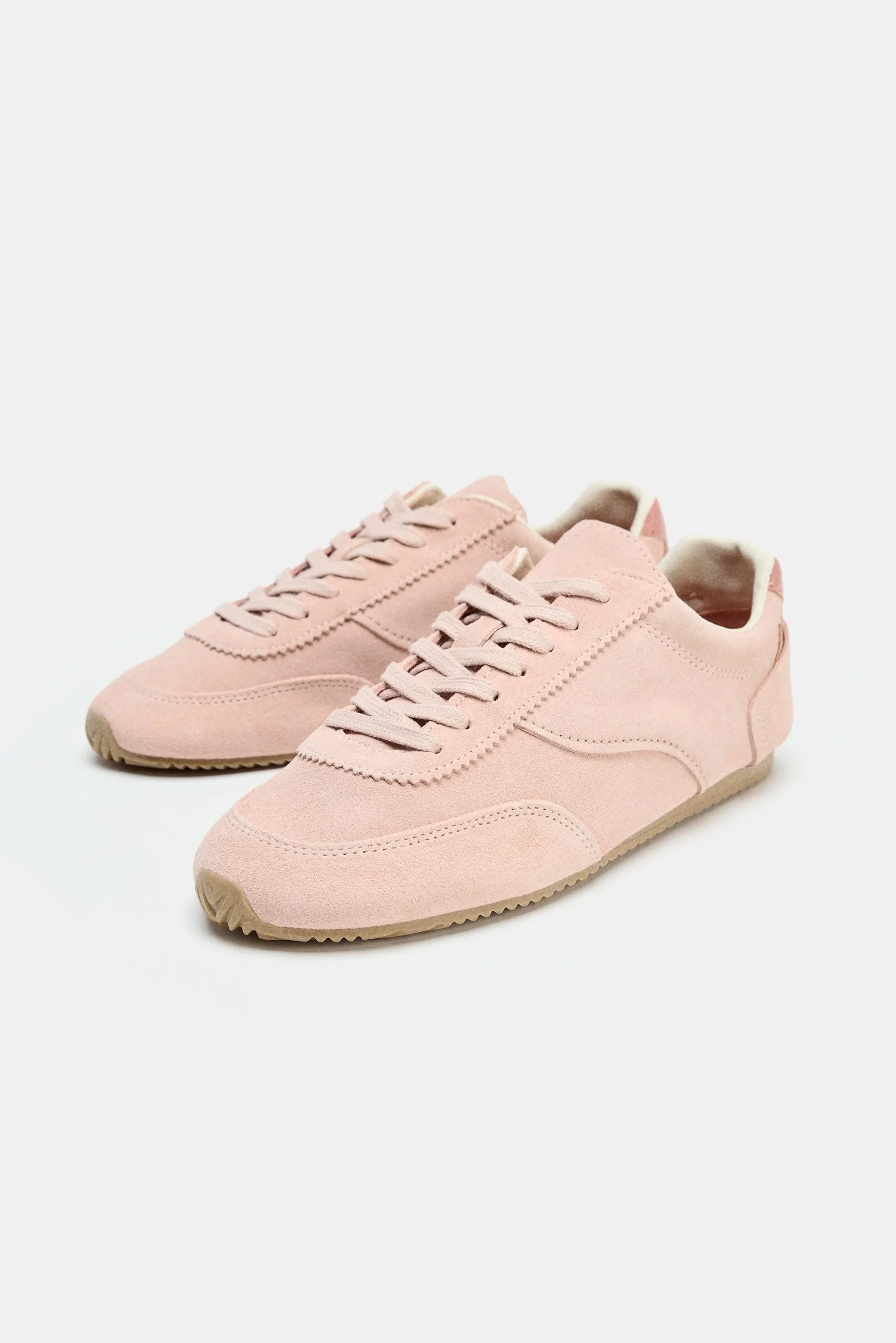 - طراحی محصول: کفش ورزشی چرمی زنانه با جزئیات دوخت و رنگ متضاد. این طراحی مدرن و شیک برای استایل های روزمره مناسب است.