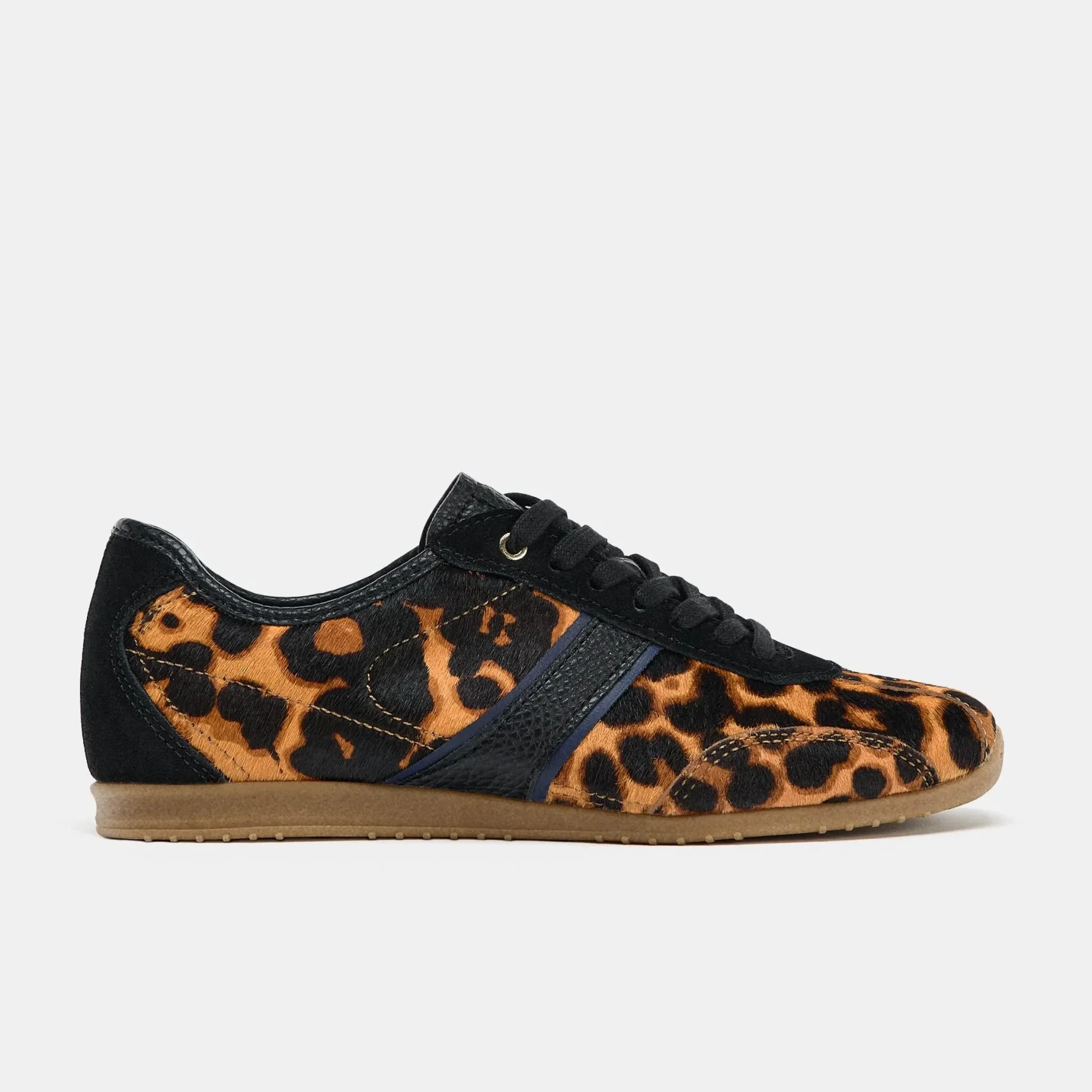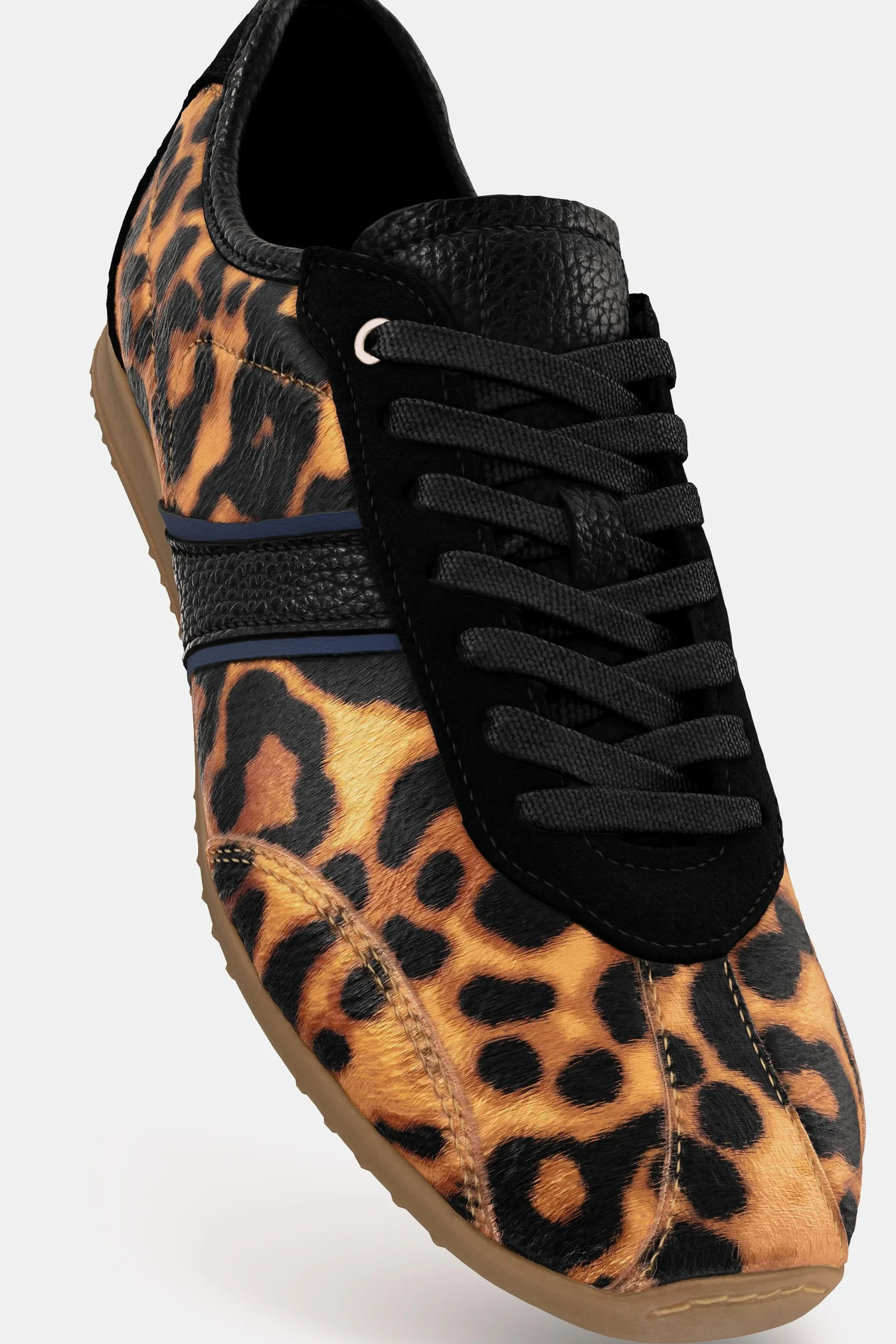 - طراحی و عنوان: این کفش ورزشی چرم زنانه با طرح پلنگی، ظاهری مدرن و جذاب برای استایل روزمره شما دارد.