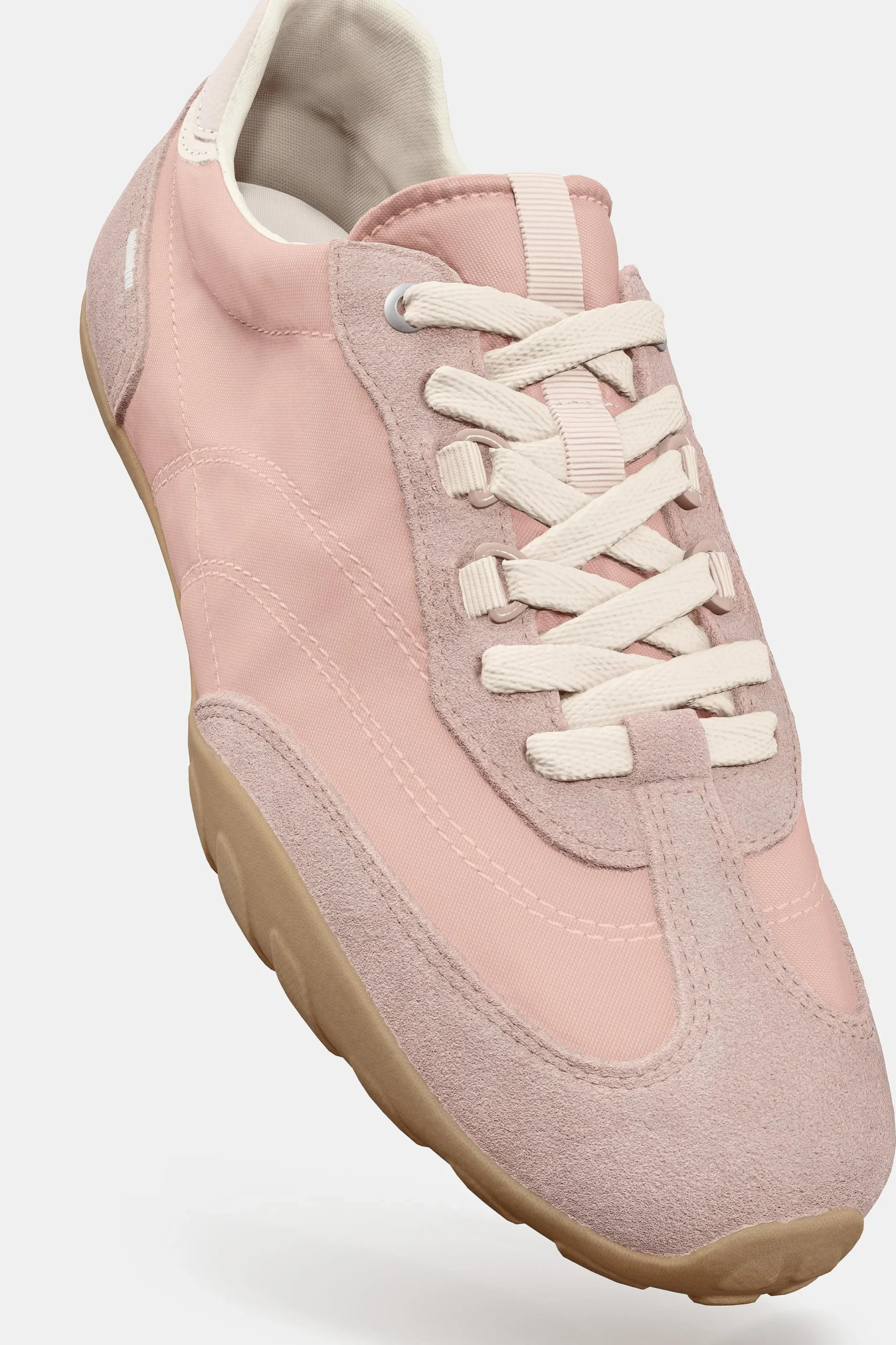 - طراحی: این کفش با طراحی اسپرت و مدرن خود، از ترکیب رنگ صورتی ملایم و جزئیات متضاد در بخش رویه بهره می برد که جلوه ای خاص و متمایز به استایل زنانه می بخشد. ساختار پنجه گرد و ارتفاع کفی ۱ سانتی متری، تعادلی ایده آل میان راحتی و زیبایی برای استفاده طولانی مدت ایجاد کرده است.