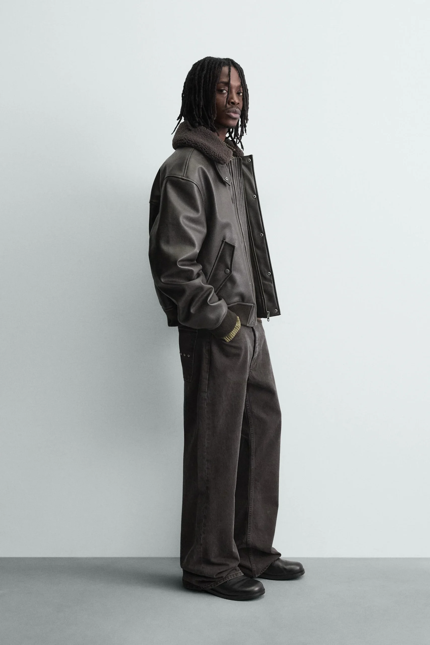 - طراحی یا عنوان: کاپشن طرح چرم زارا با یقه خز مصنوعی جداشونده، انتخابی شیک و مدرن برای فصول سرد.