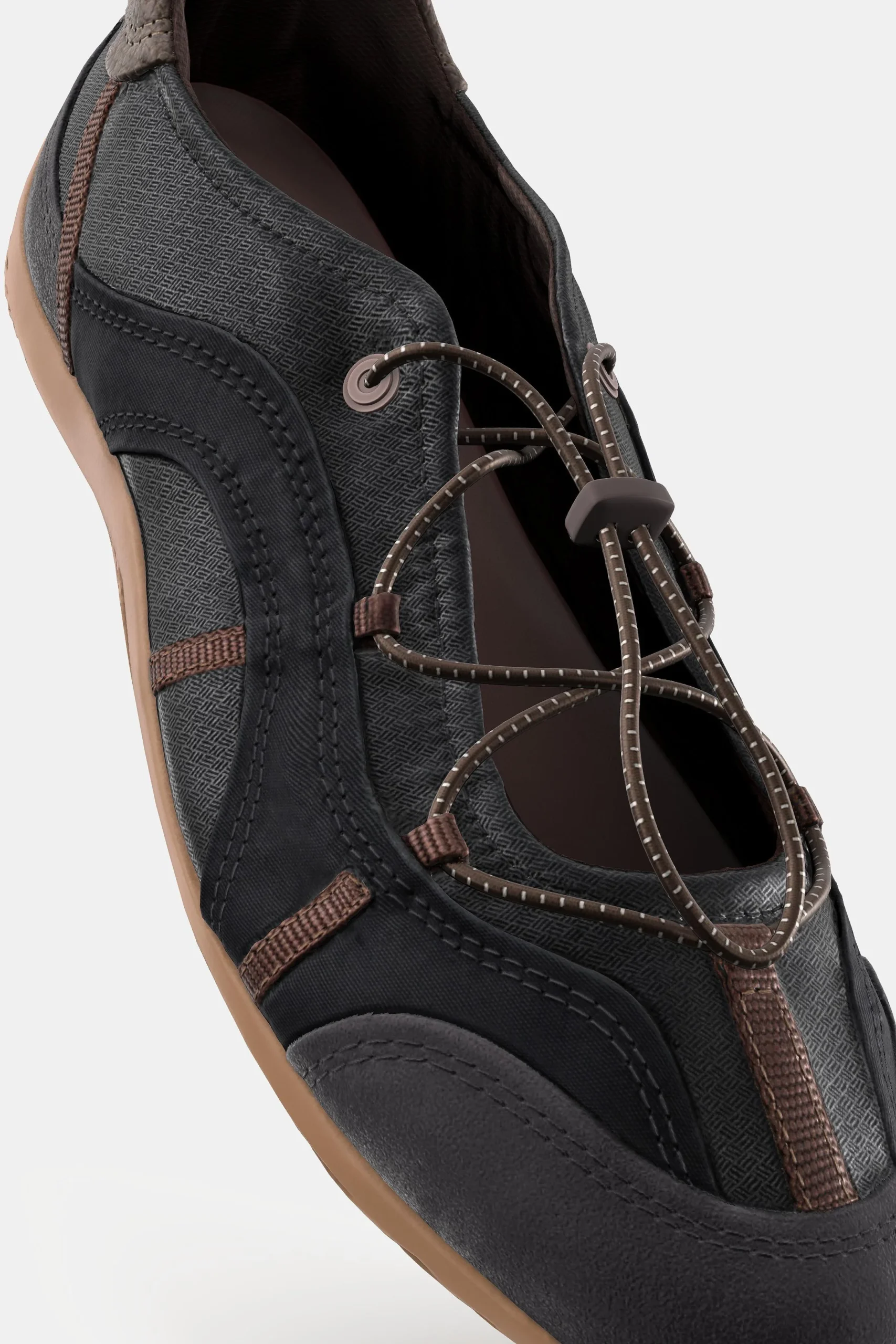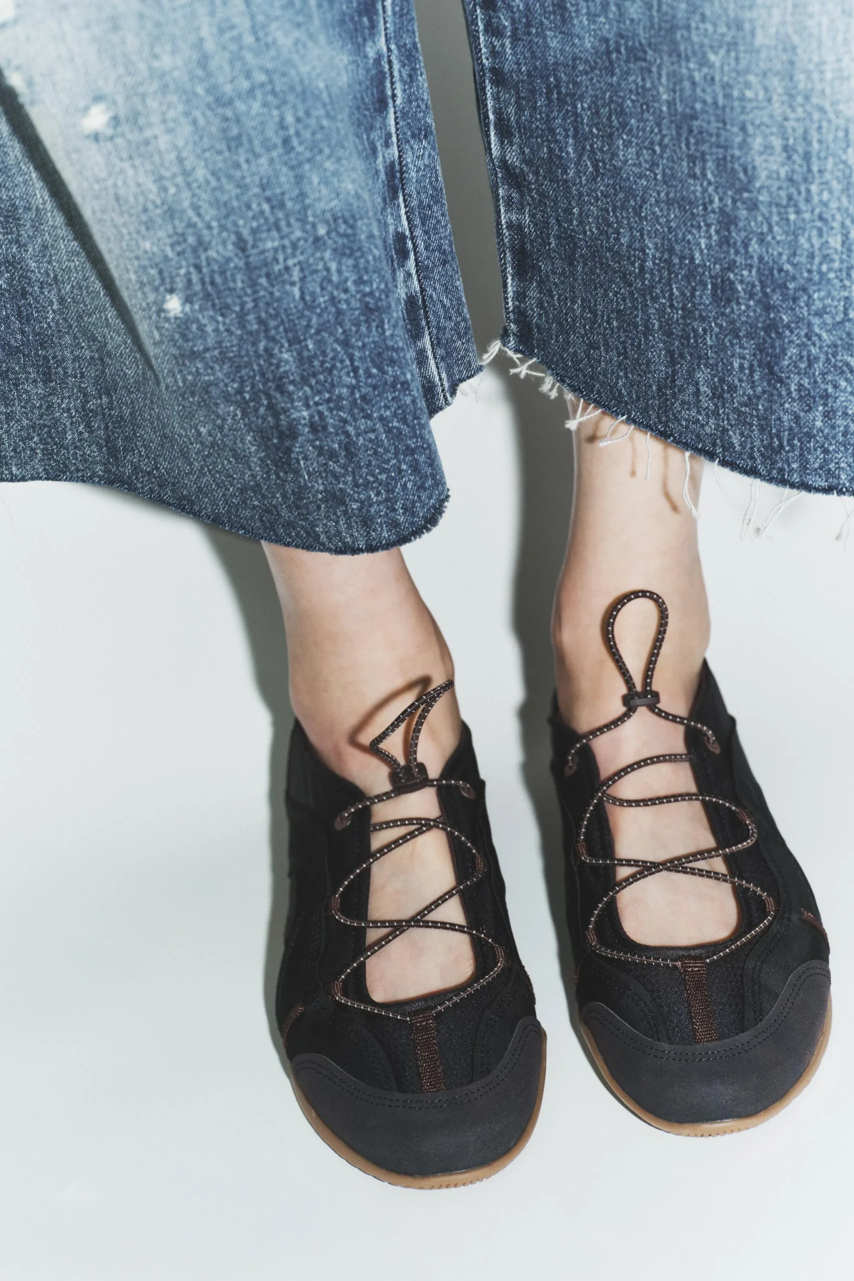 - طراحی: این کفش با تلفیق استایل کلاسیک بالرین و جزئیات مدرن ورزشی طراحی شده است که با وجود بند کشی و استاپر، ظاهری کاملاً متمایز و امروزی دارد.