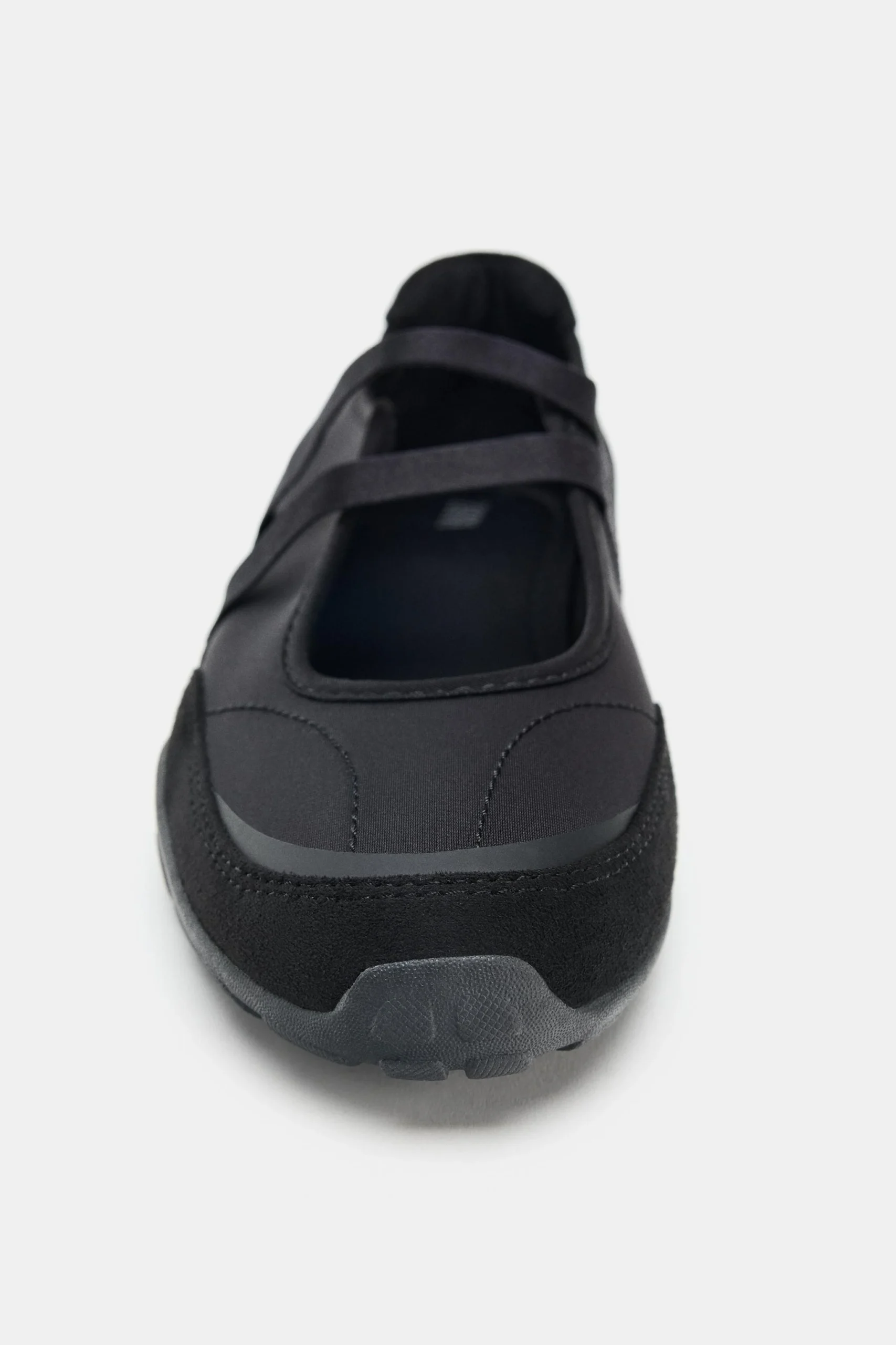 - طراحی و عنوان: این کفش باله زنانه با طراحی دو رنگ و جذاب، دارای بند دوتایی کشی در قسمت جلویی است که ظاهری شیک و منحصر به فرد به آن می بخشد.