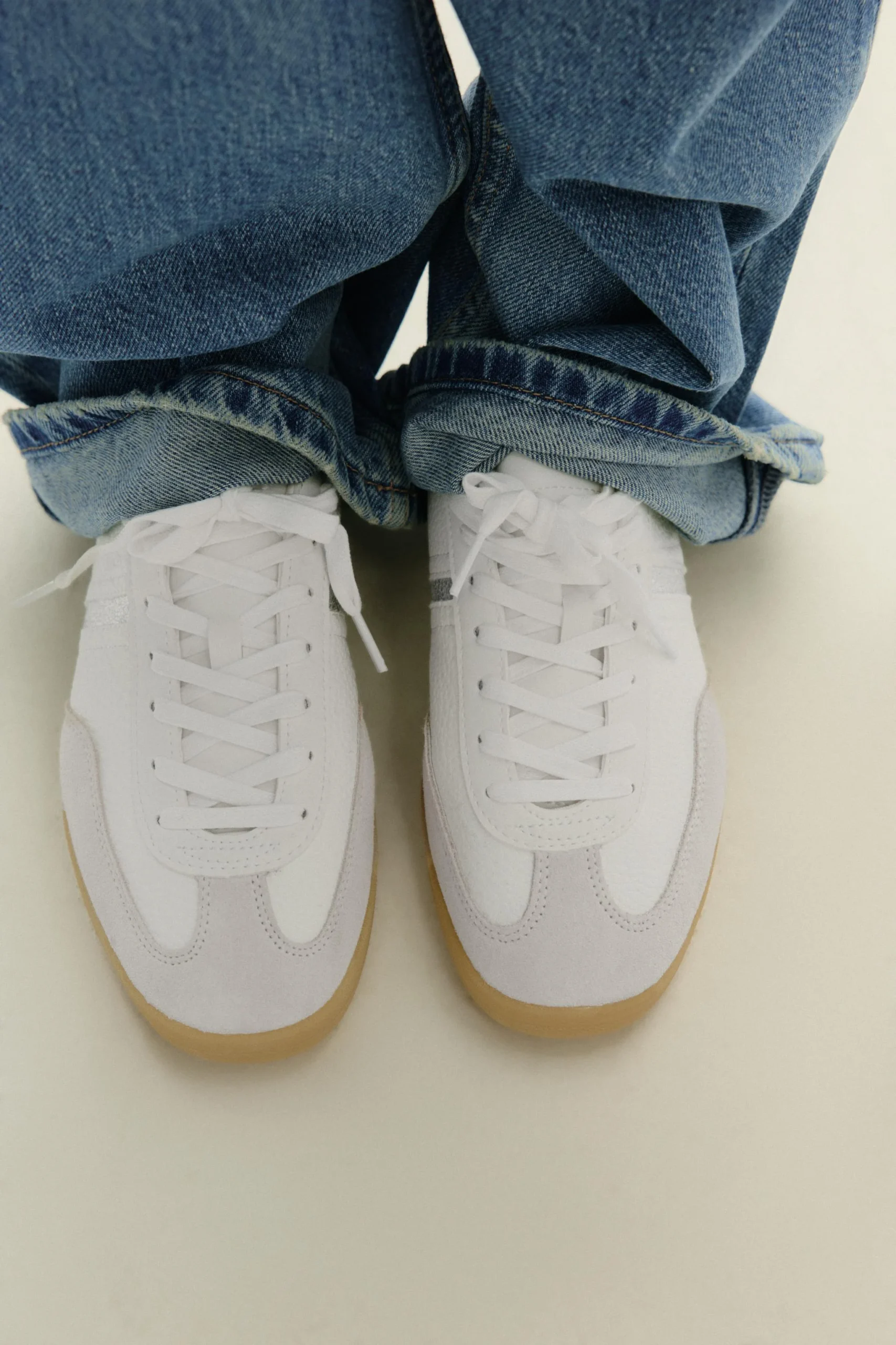- ویژگی های محصول: ویژگی های بارز این کتانی شامل رنگ های متضاد جذاب در کناره ها و پشت، زیره لاستیکی مقاوم و بنددار بودن برای تنظیم آسان است. ارتفاع زیره آن نیز 2.5 سانتی متر می باشد.