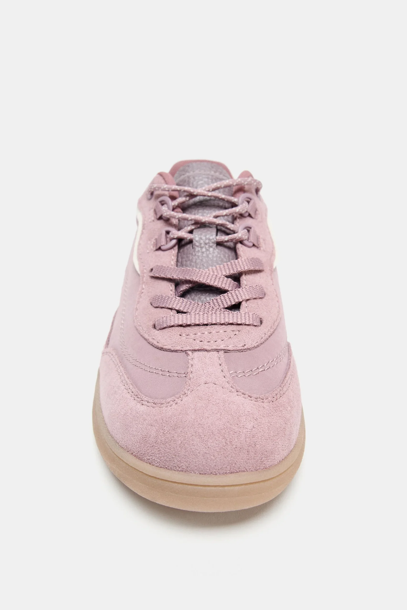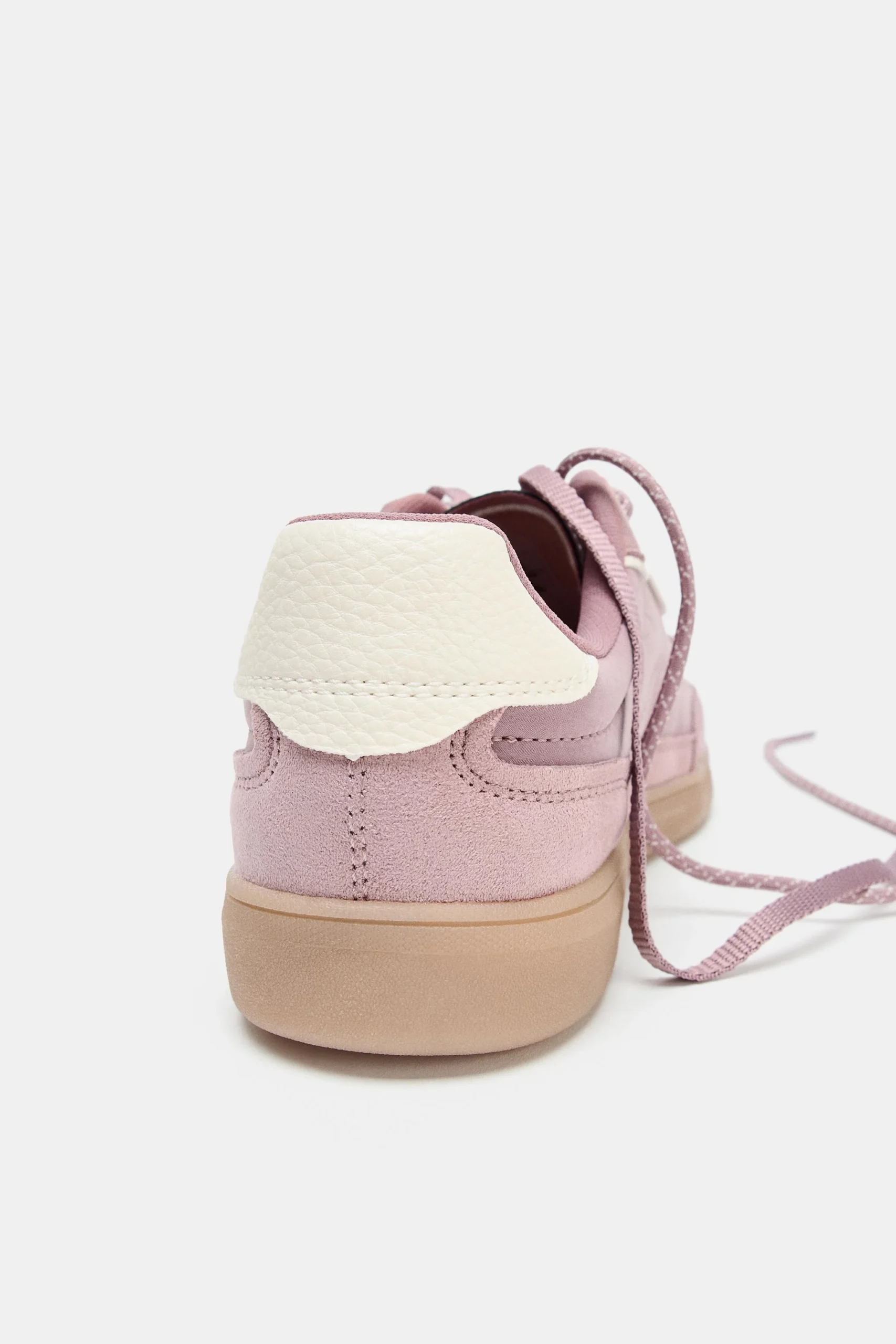 - طراحی محصول: کتانی کنتراست زارا با طراحی مدرن و جزئیات رنگی متضاد، در رنگ بنفش مایل به ارغوانی.