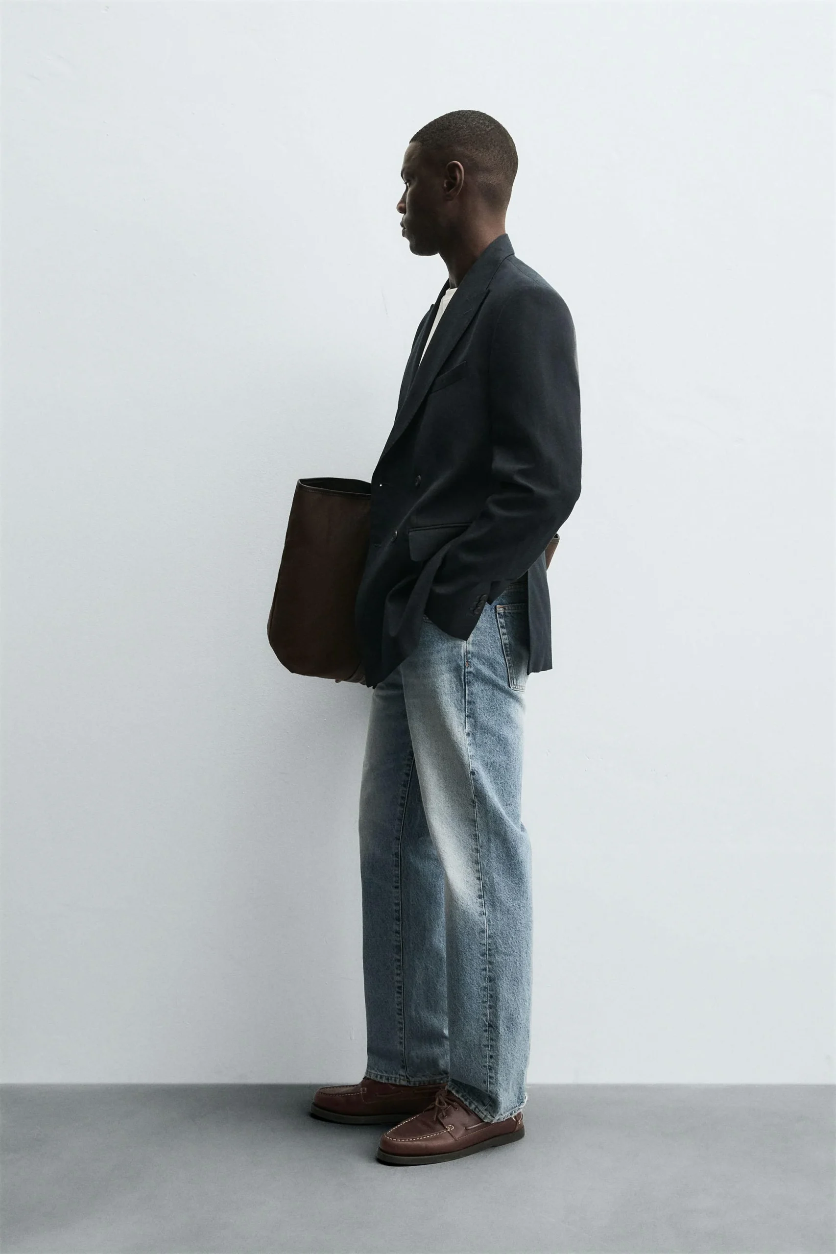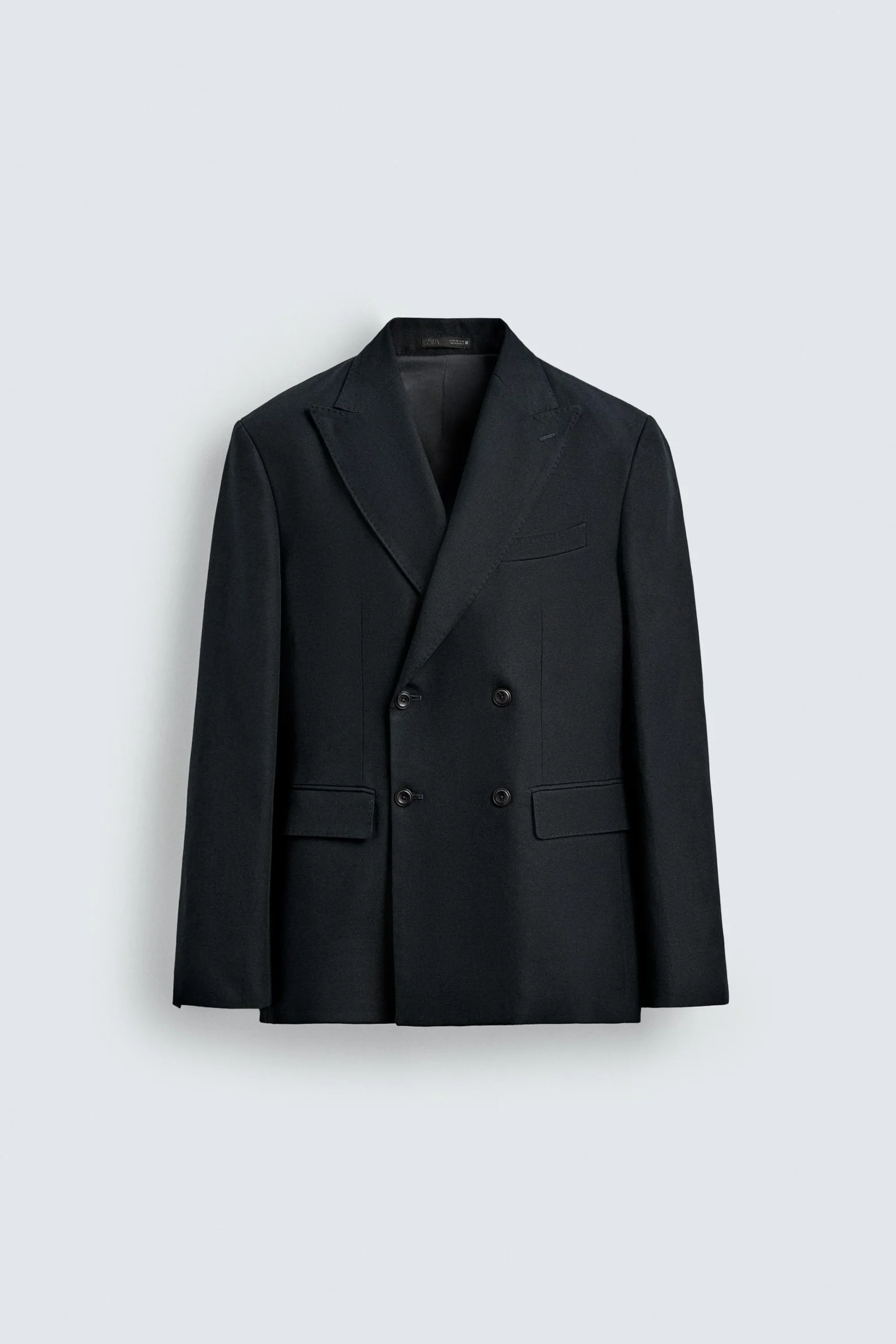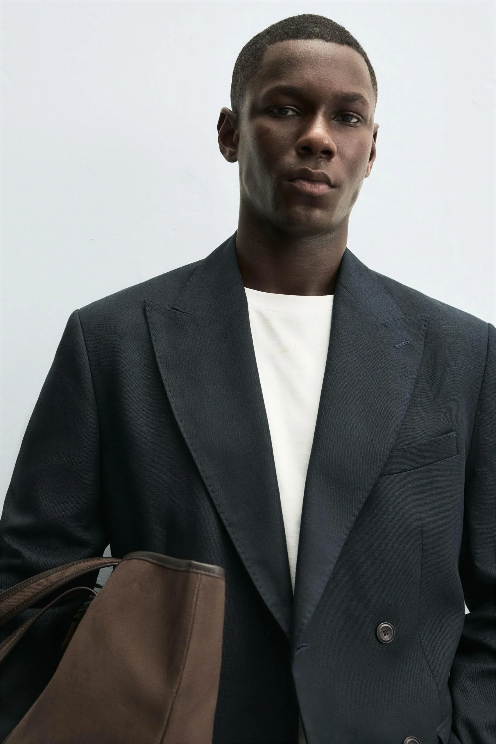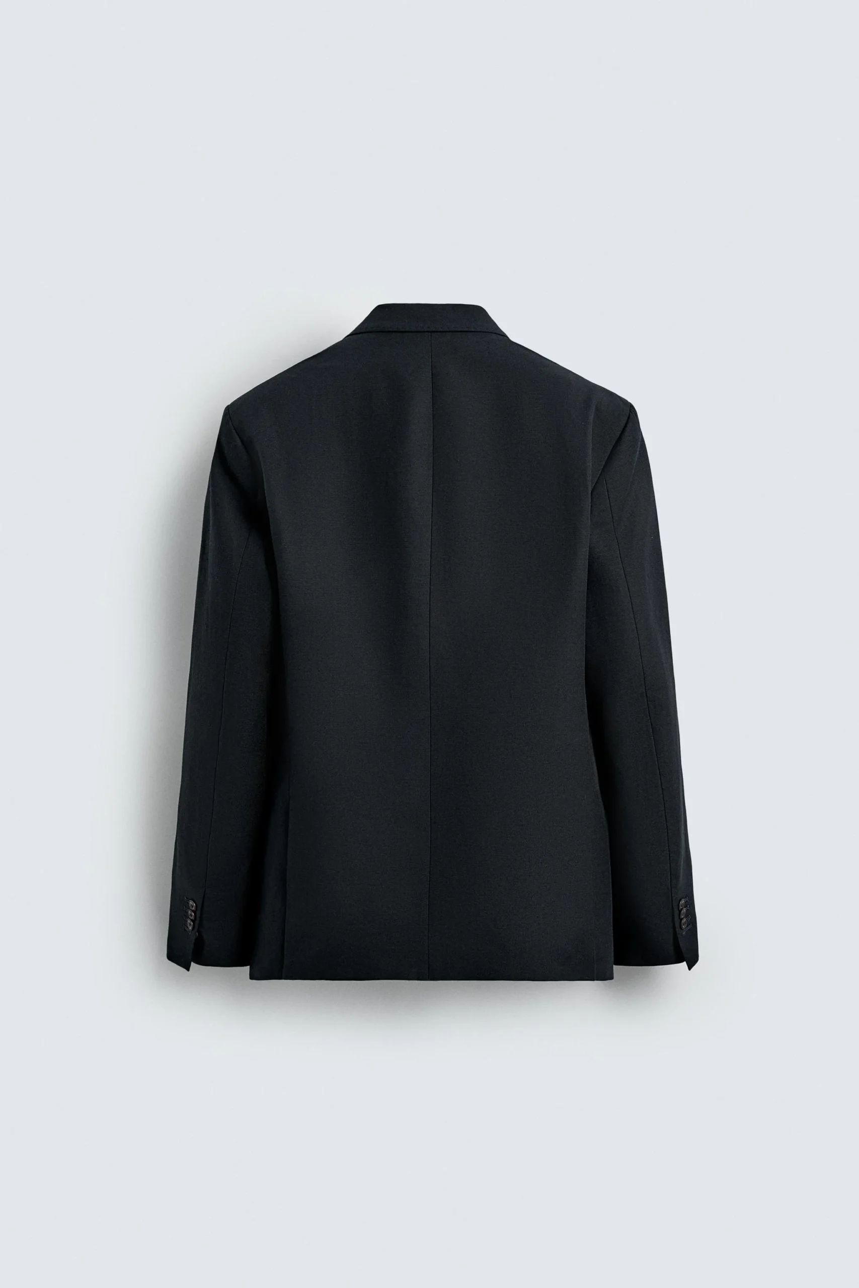 - طراحی و مدل: این کت بلیزر دو سینه با برش و فیت معمولی، دارای یقه برگردان نوک تیز است که ظاهری شیک و مدرن به آن می بخشد.