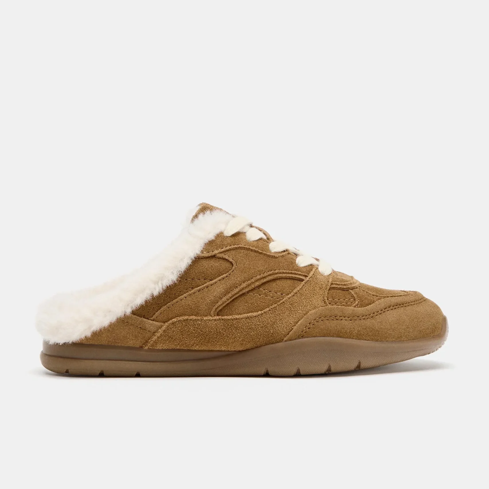 - طراحی: این کفش با طراحی خلاقانه پشت باز (Slingback) و الهام از سبک کتانی های مدرن، ظاهری بسیار شیک و متمایز دارد. جزئیات دوخت ظریف (Topstitching) بر روی قسمت بالایی کفش و ترکیب رنگ قهوه ای گرم، جلوه ای خاص و مدرن به استایل روزمره شما می بخشد.
