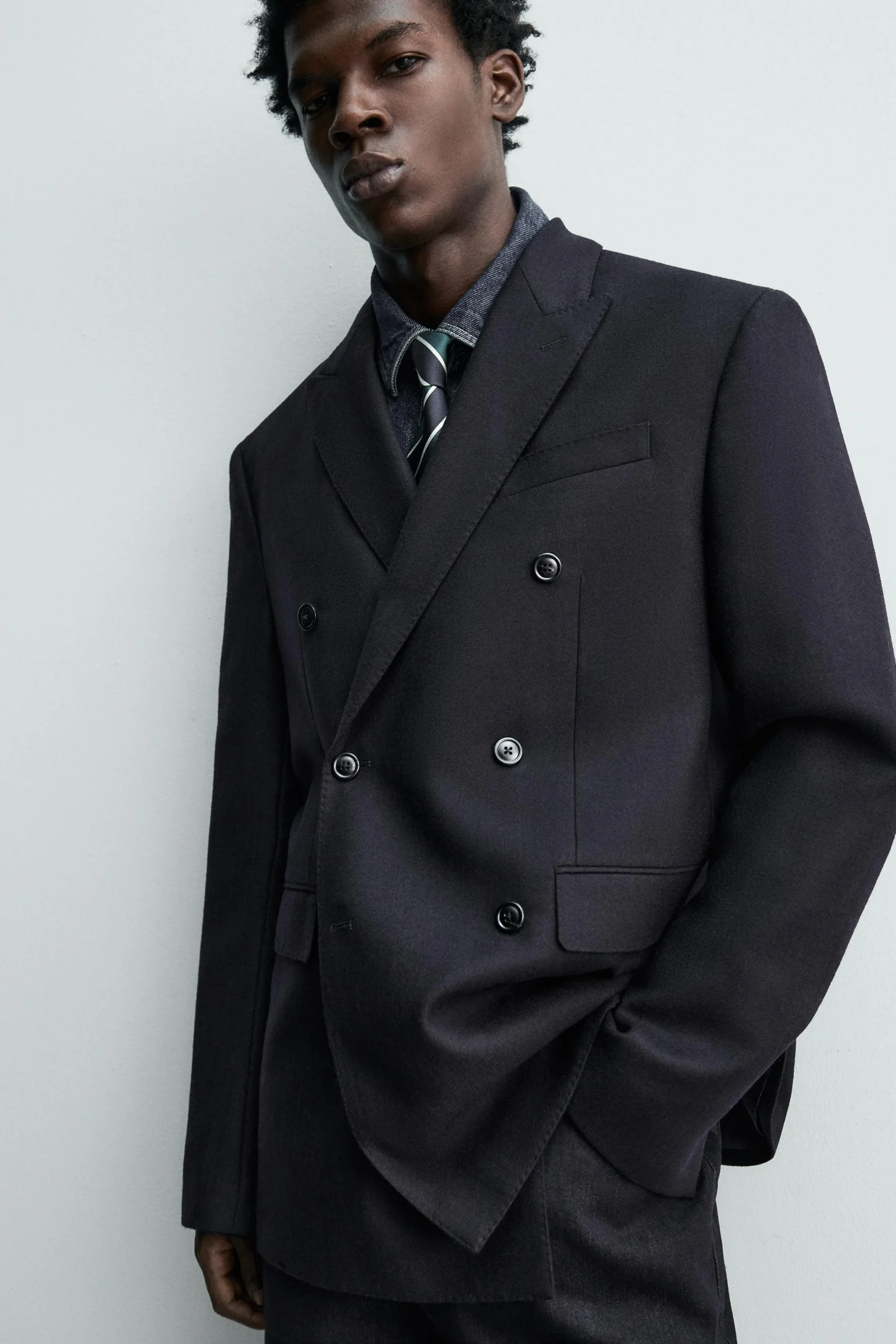- طراحی یا عنوان: این کت بلیزر پشمی فلانل دو سینه به رنگ سرمه ای تیره، با برشی منظم و از پارچه پشمی ایتالیایی مرغوب تهیه شده است که بخشی از کالکشن ویژه Origins زارا می باشد.