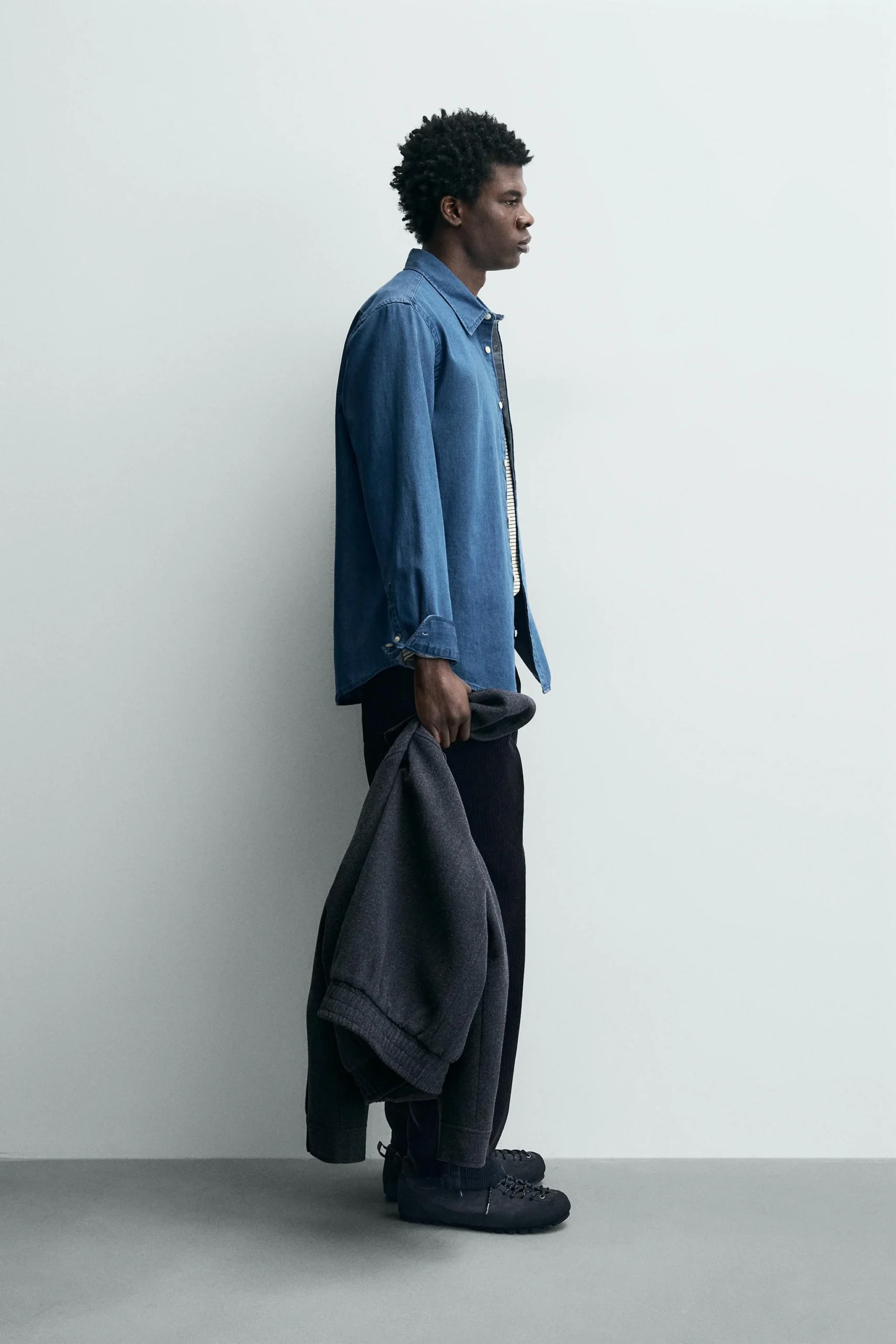 - طراحی: این پیراهن با برش آزاد (Relaxed Fit) طراحی شده است که راحتی فوق العاده ای را برای کاربر فراهم می کند و دارای یقه برگردان کلاسیک و آستین های بلند است.