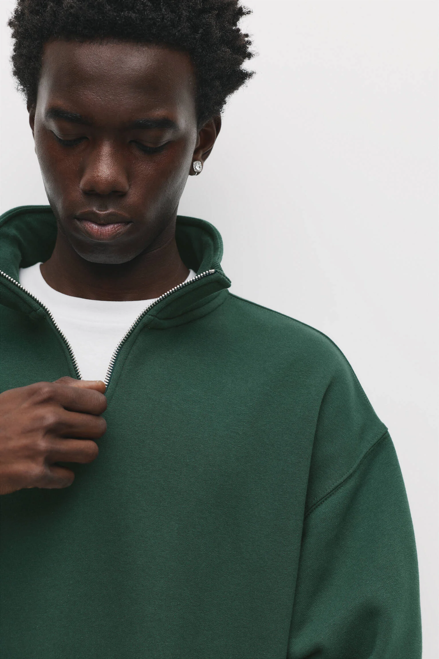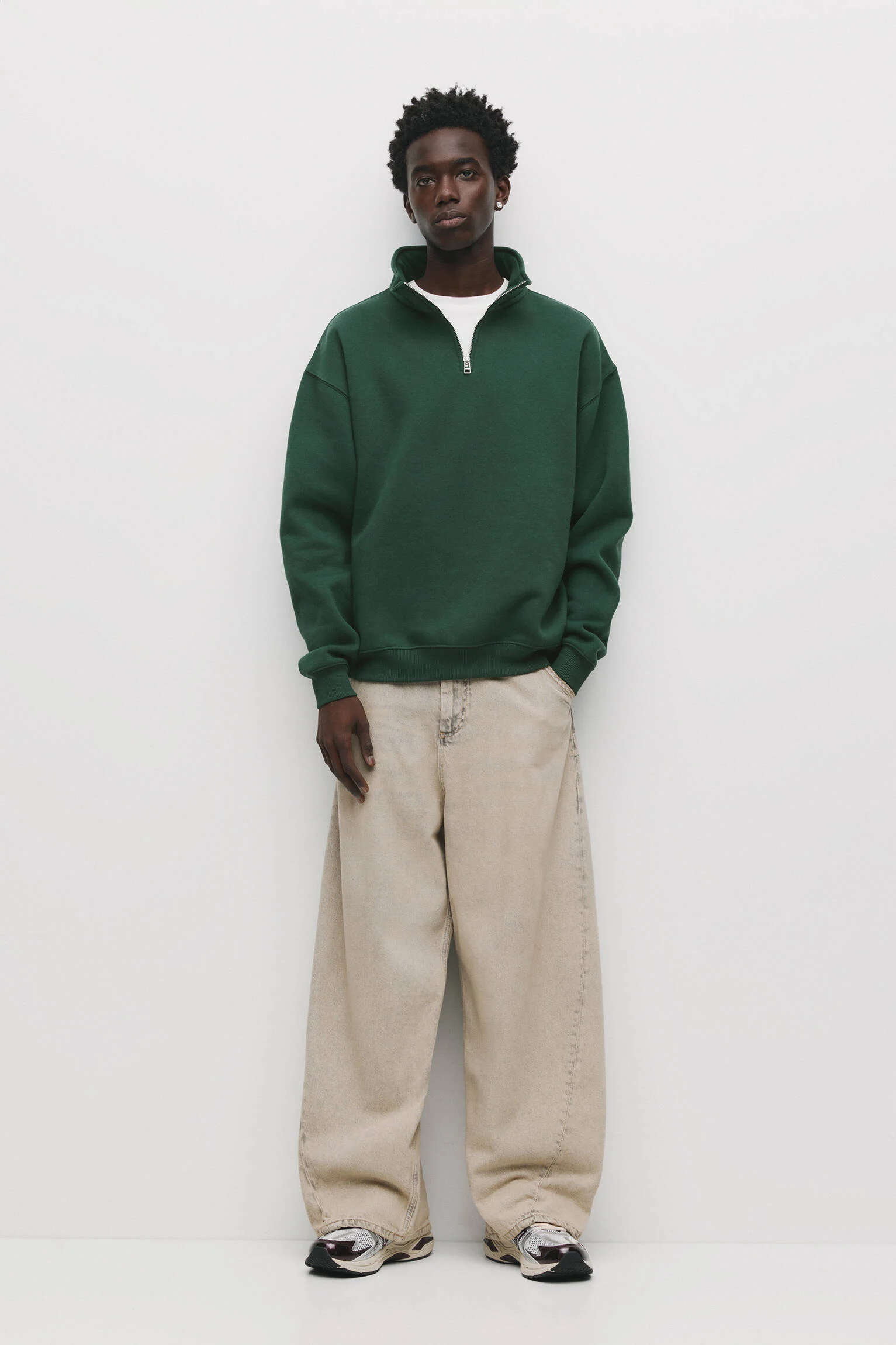 - طراحی یا عنوان: سوئیشرت بیسیک یقه ایستاده با زیپ ربع.