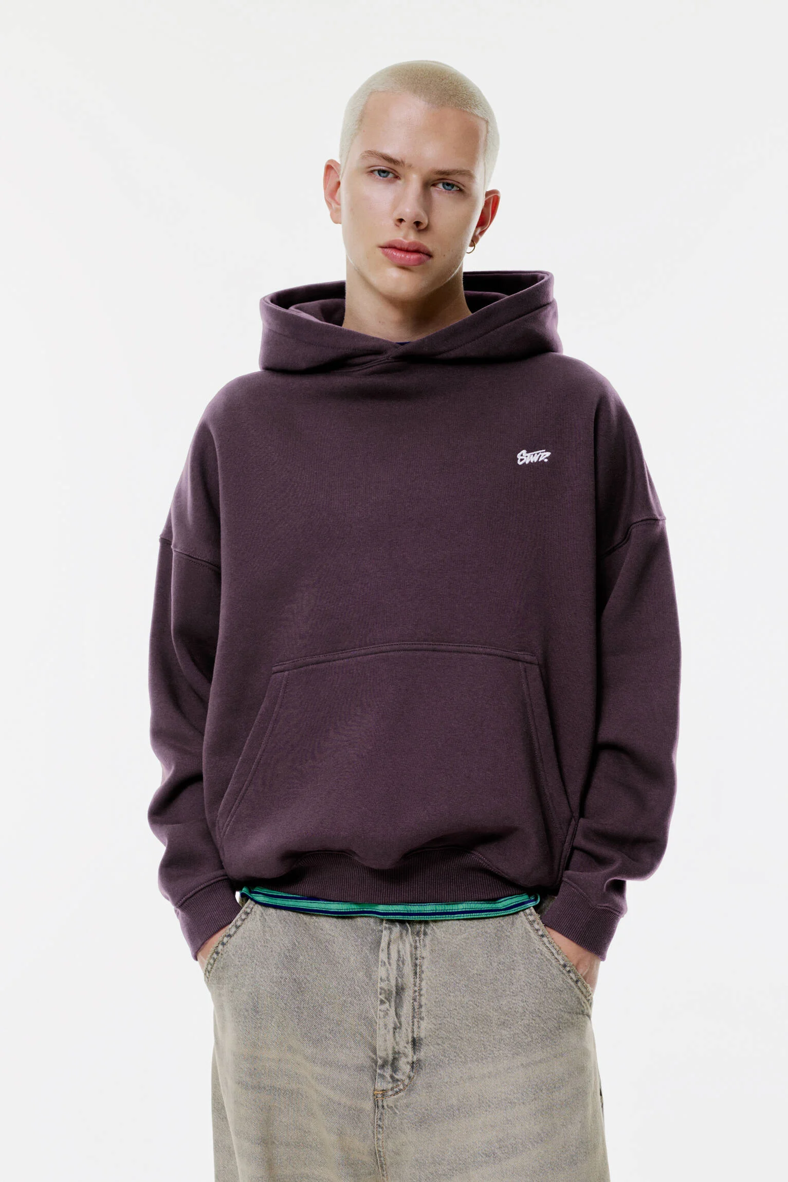 - ویژگی های محصول: دارای لوگوی STWD با دوخت کنتراست، جیب کانگورویی در جلو و کلاه است. این هودی در رنگ جذاب یاسی (لیلاک) عرضه شده است.