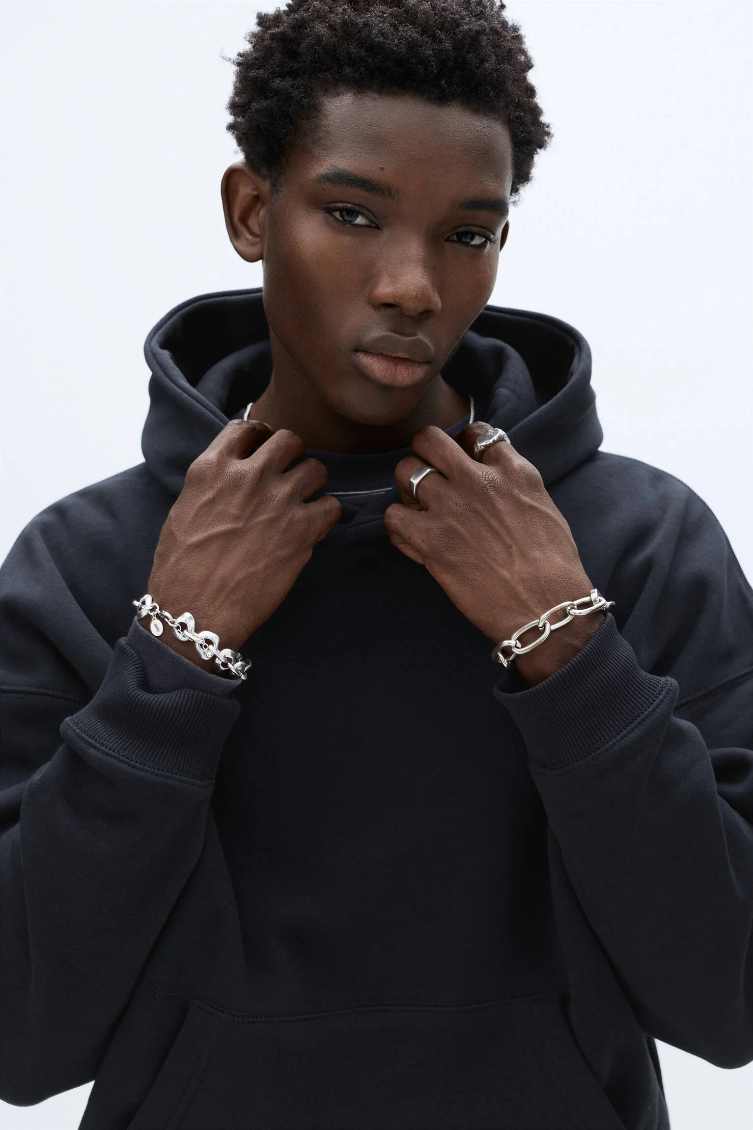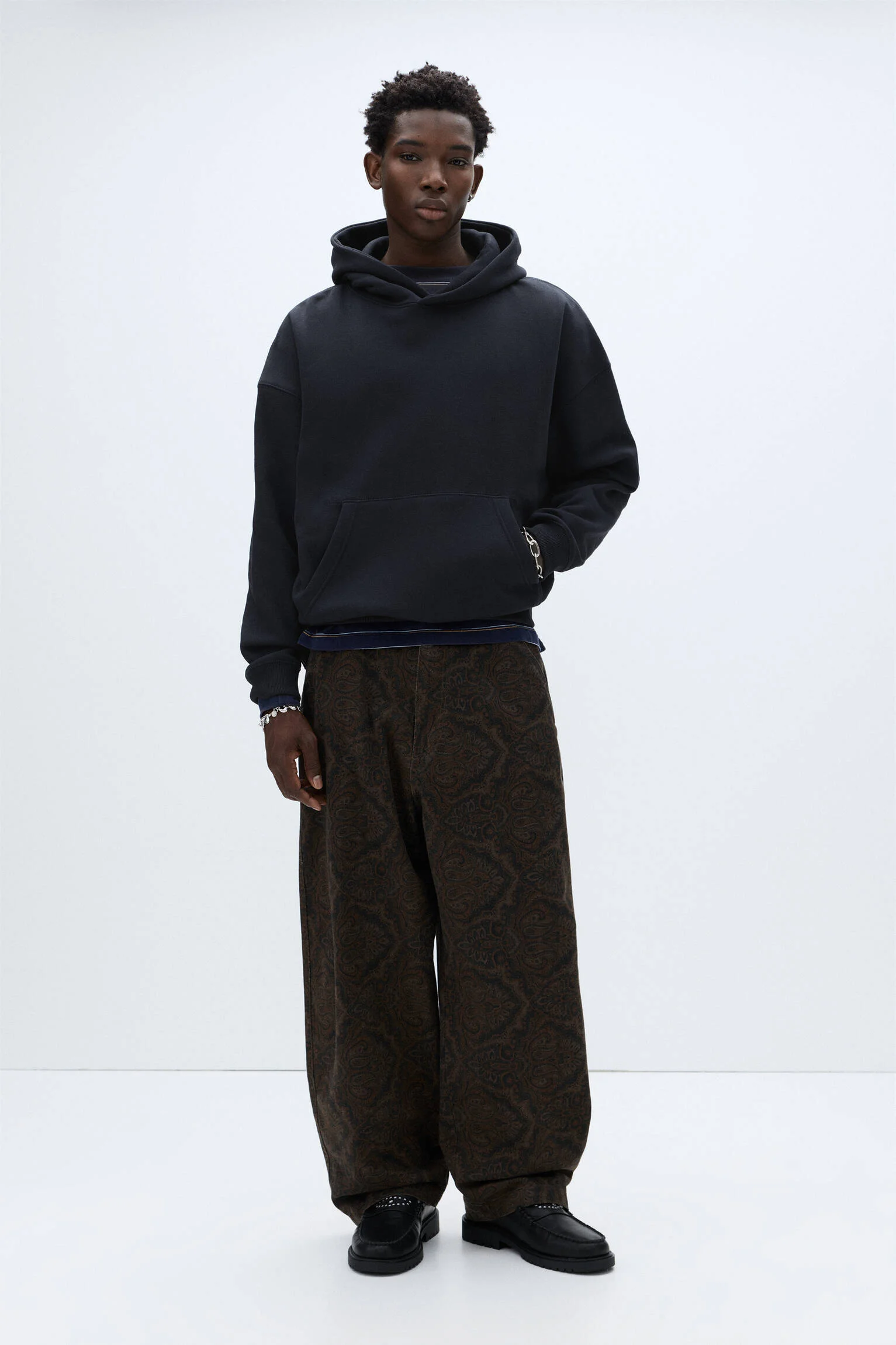 - طراحی: این هودی با برش آزاد و مدرن (Boxy Fit) طراحی شده است که به همراه آستین های بلند و کلاه لایه دار، استایلی کژوال و بسیار راحت را برای شما ایجاد می کند.
