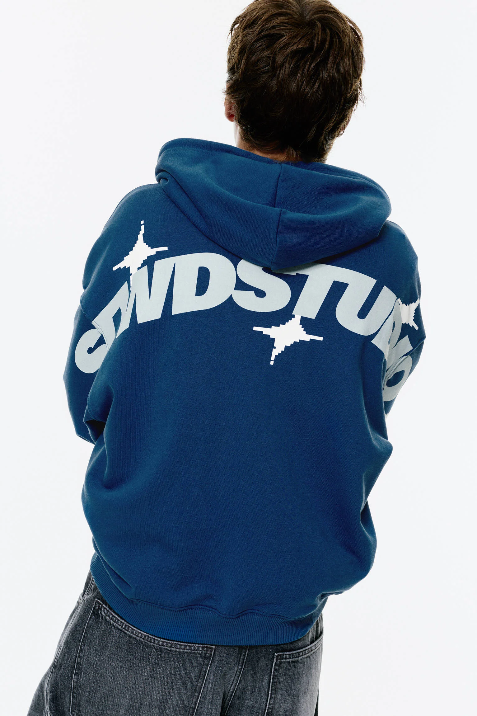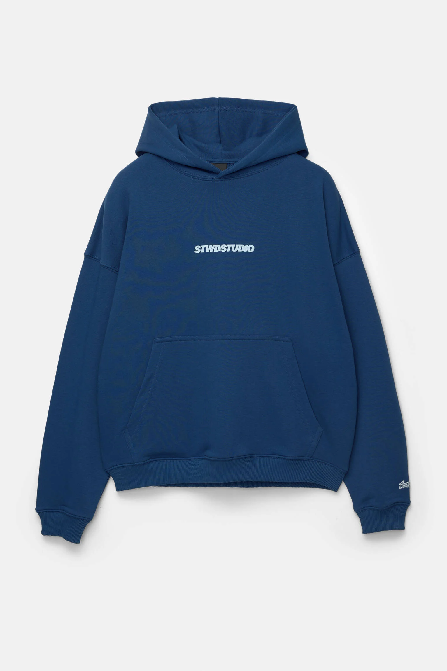 - طراحی: این هودی با رنگ آبی جذاب و طراحی مدرن، دارای گرافیک های اختصاصی STWD Studio در قسمت جلو و پشت است که استایلی خاص و هنری به آن می بخشد.