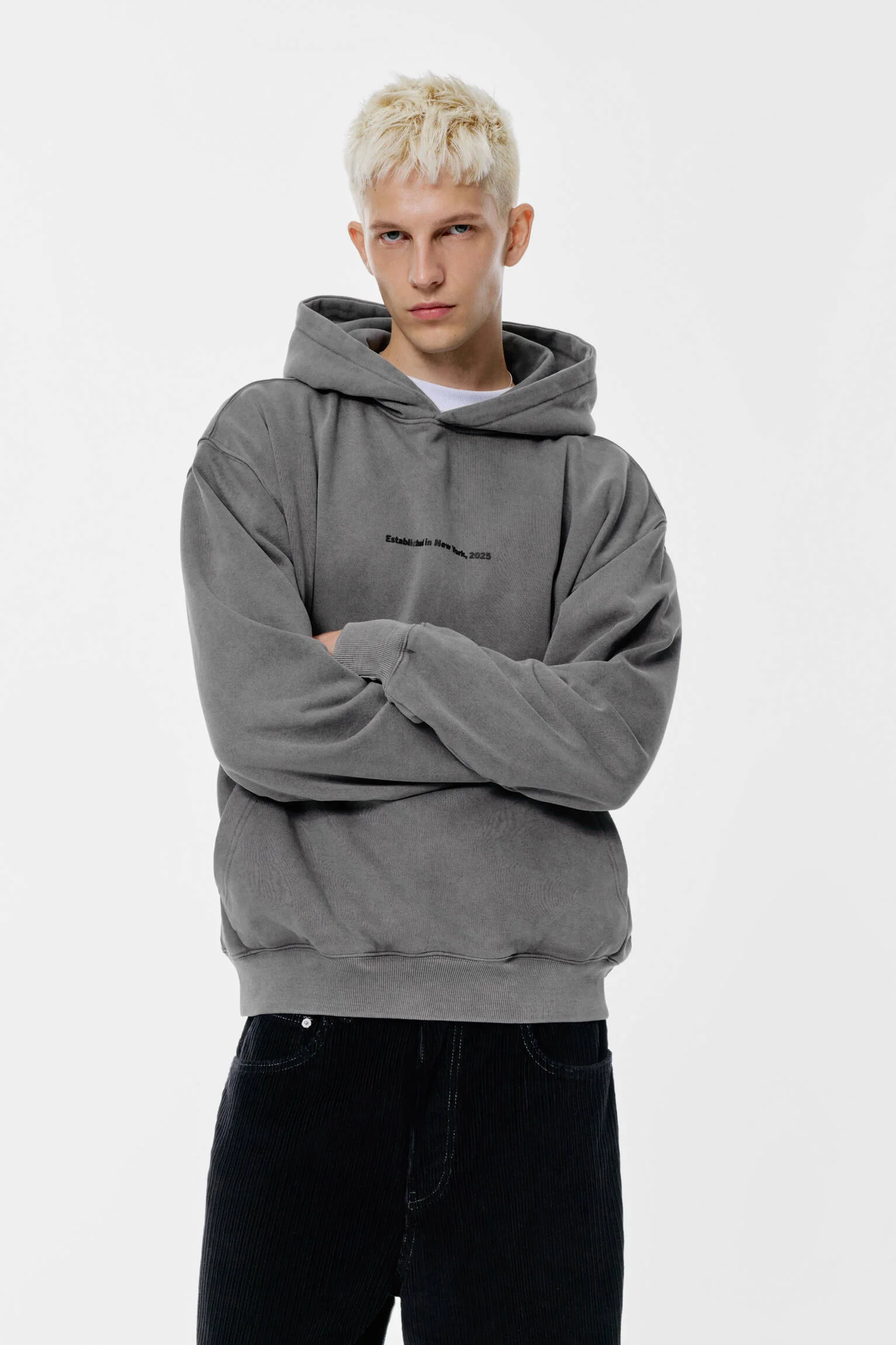 - طرح یا عنوان: این هودی با طرح گرافیکی جذاب “نیویورک” عرضه شده است.