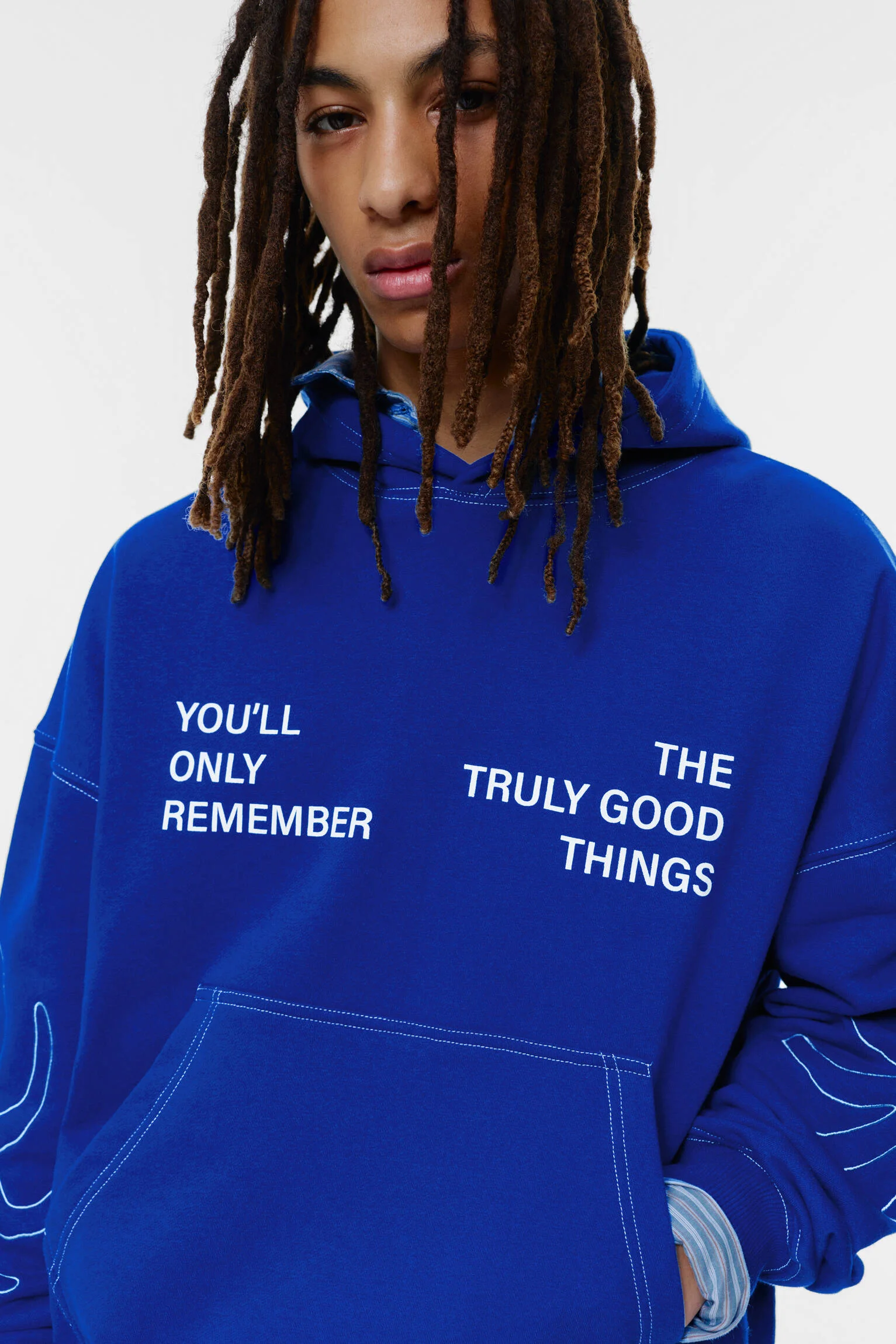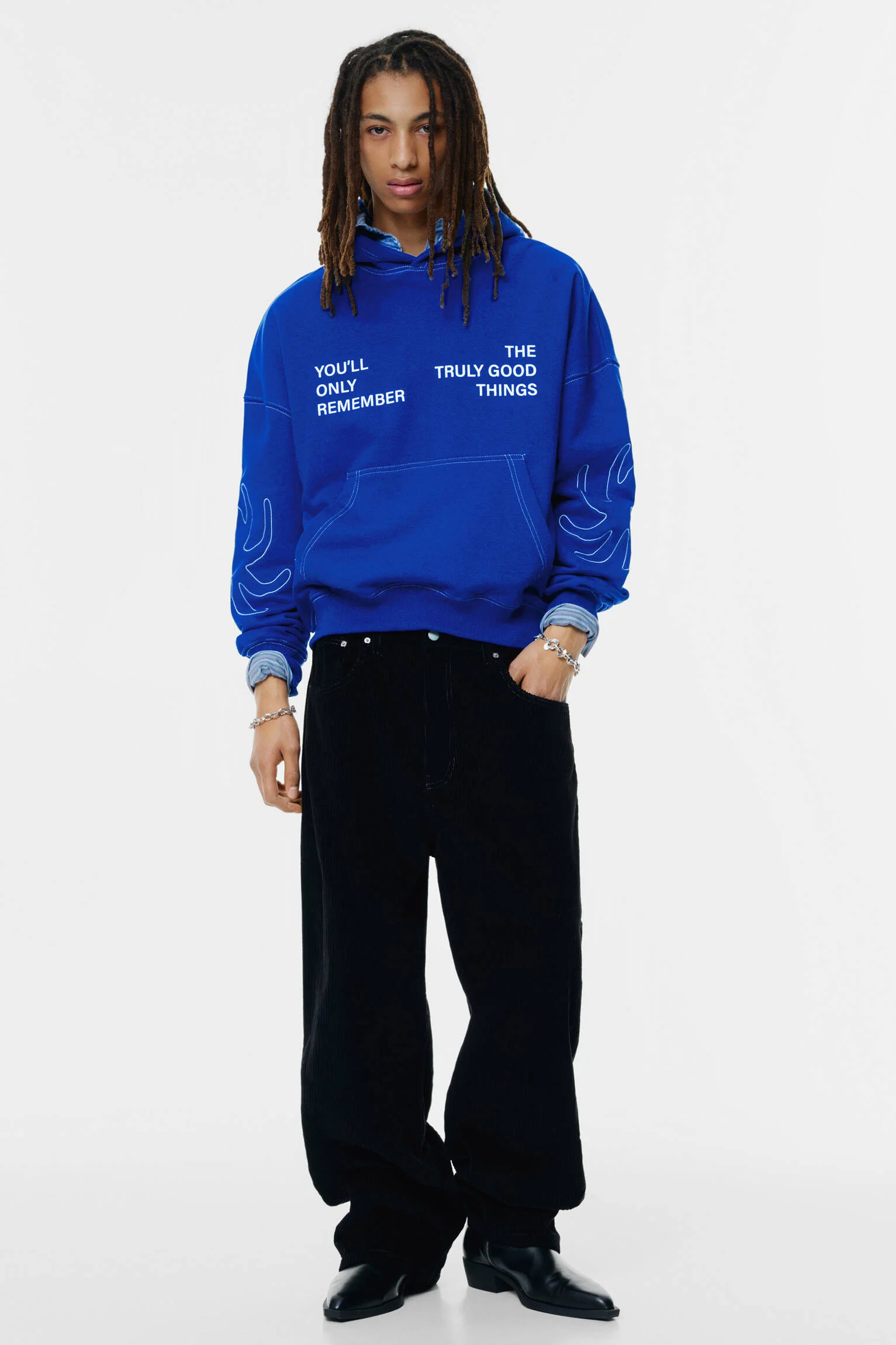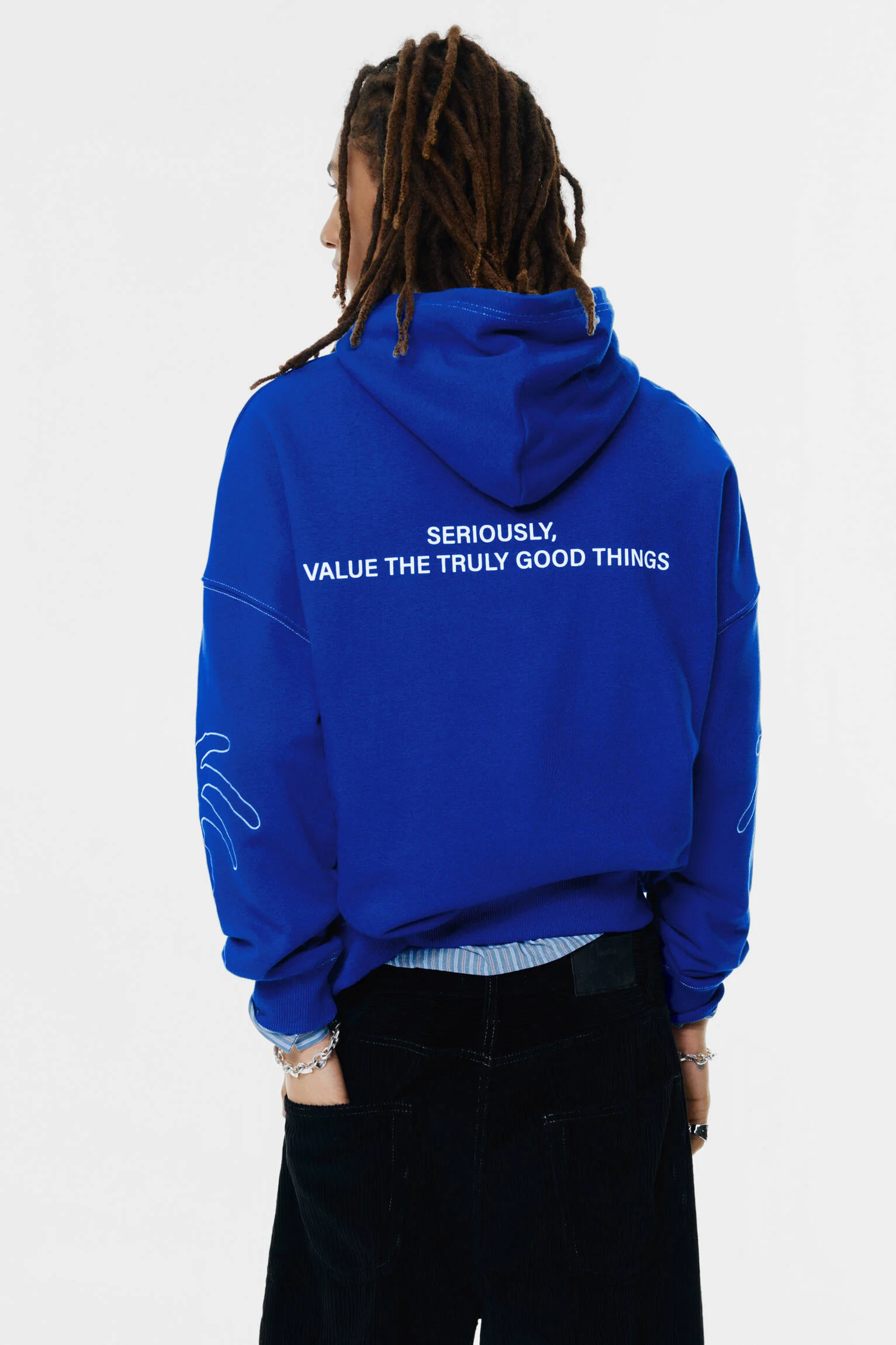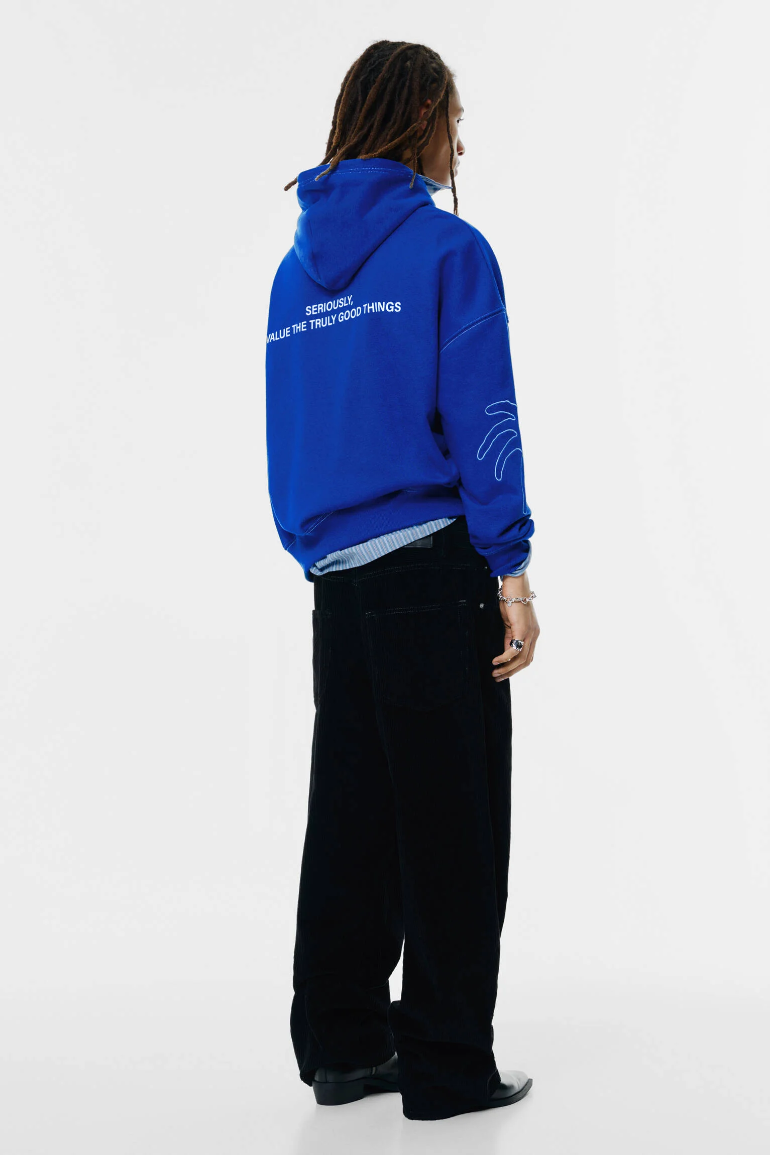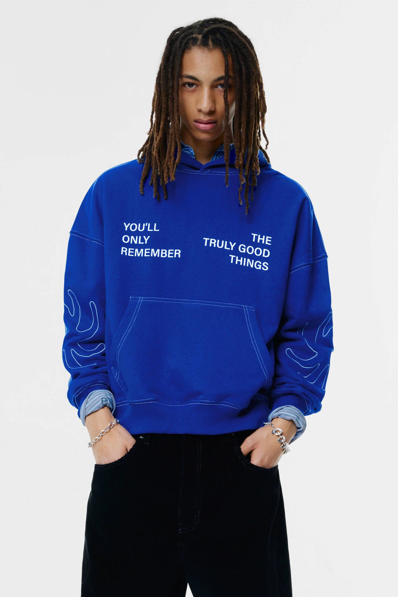 - طراحی: این هودی با رنگ آبی عمیق و جذاب طراحی شده است که استفاده از دوخت های متضاد در ساختار آن، جلوه ای مدرن و متمایز به سبک پوشش کژوال و خیابانی شما می بخشد.