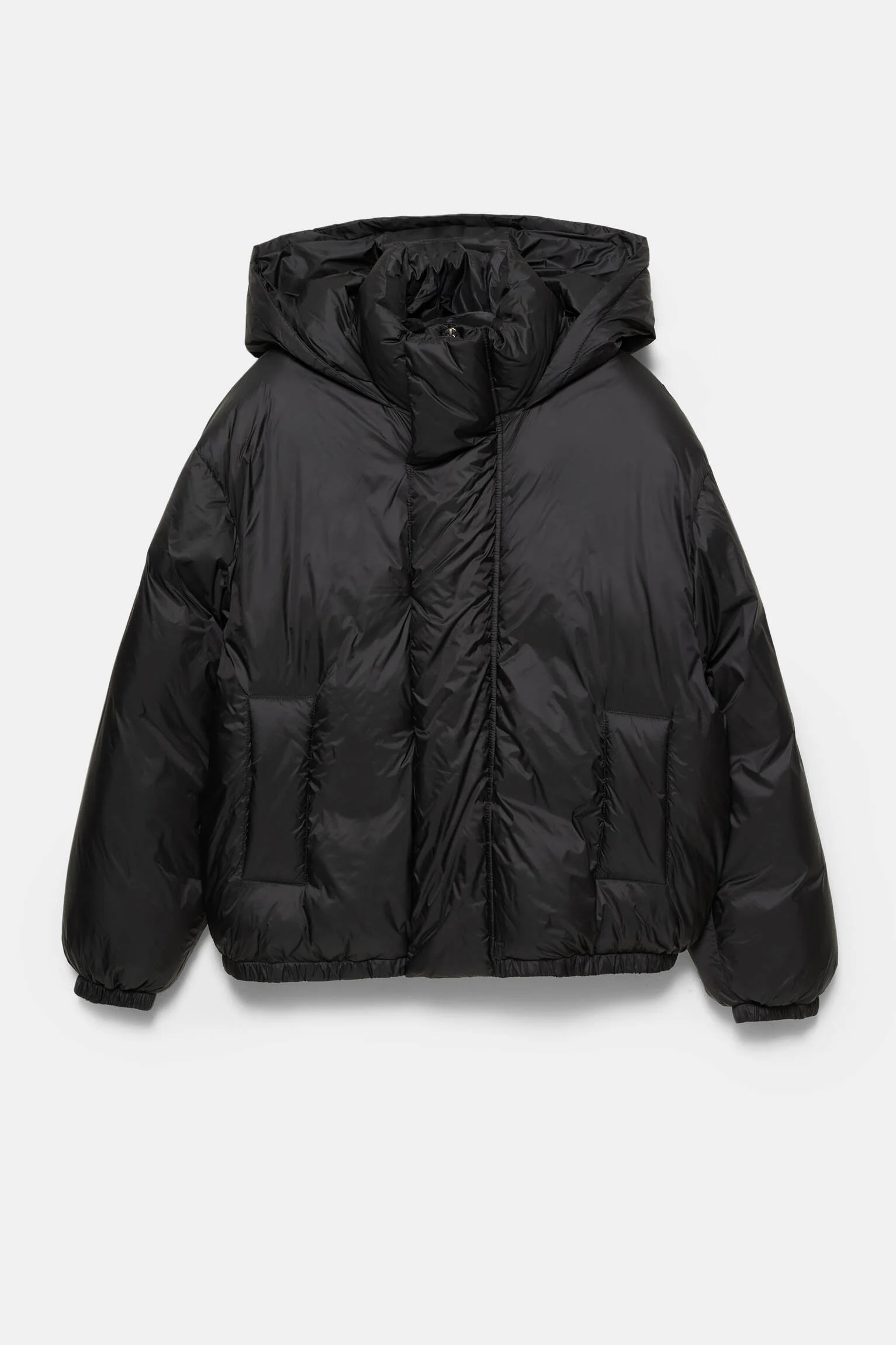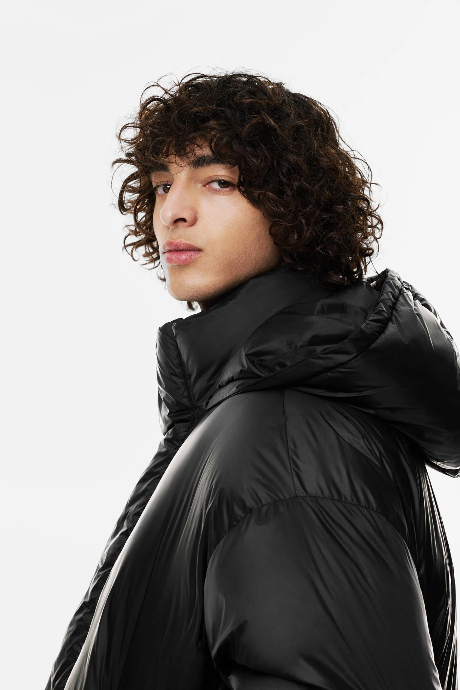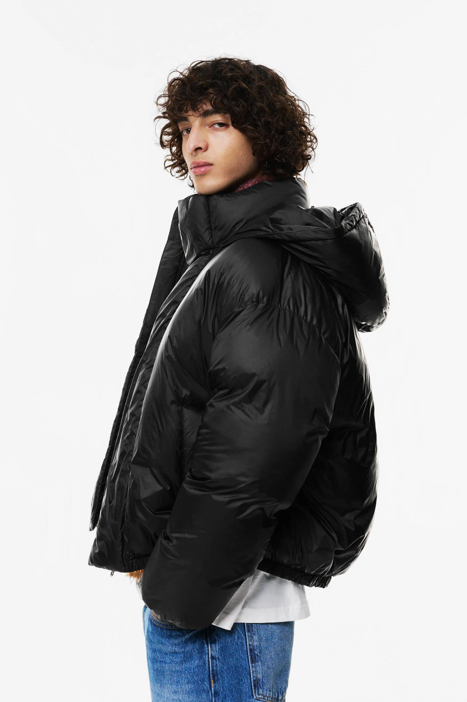 - طراحی و عنوان: این کاپشن پفی براق از برند پول اند بیر، با طراحی کلاه دار و آستین های بلند، ظاهری مدرن و جذاب دارد. بسته شدن آن با زیپ مخفی و دکمه، ایمنی و زیبایی را همزمان فراهم می کند.