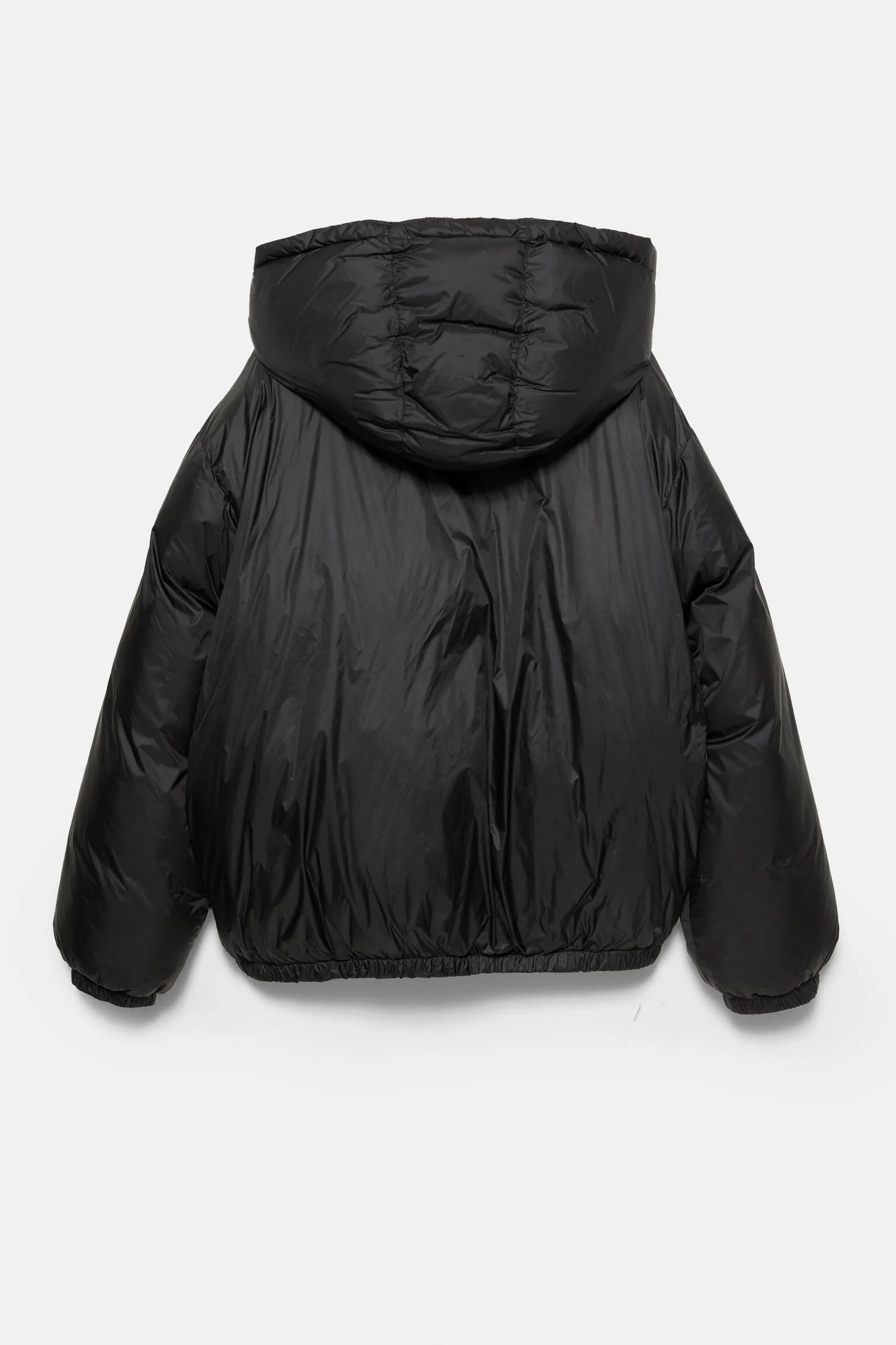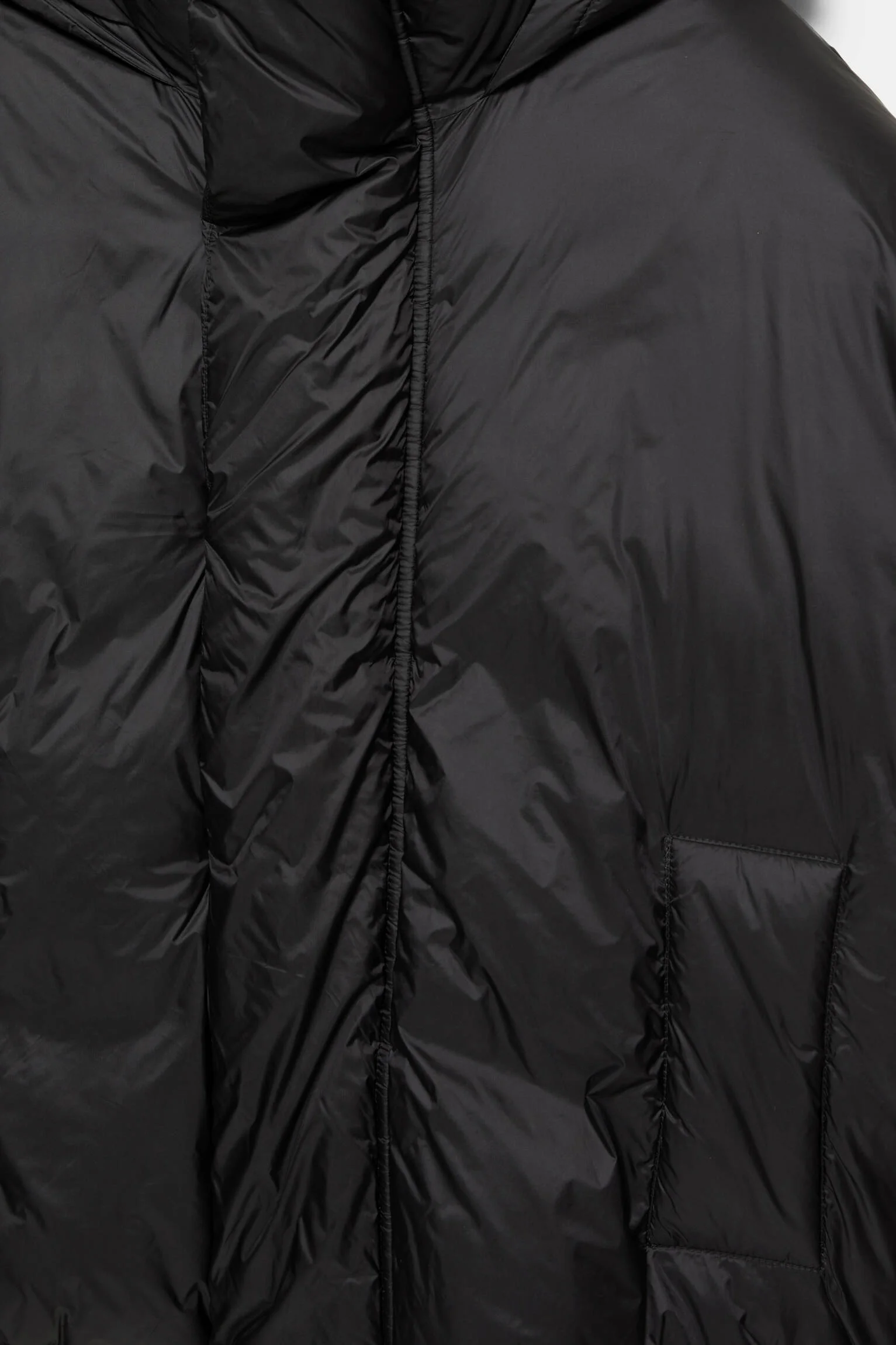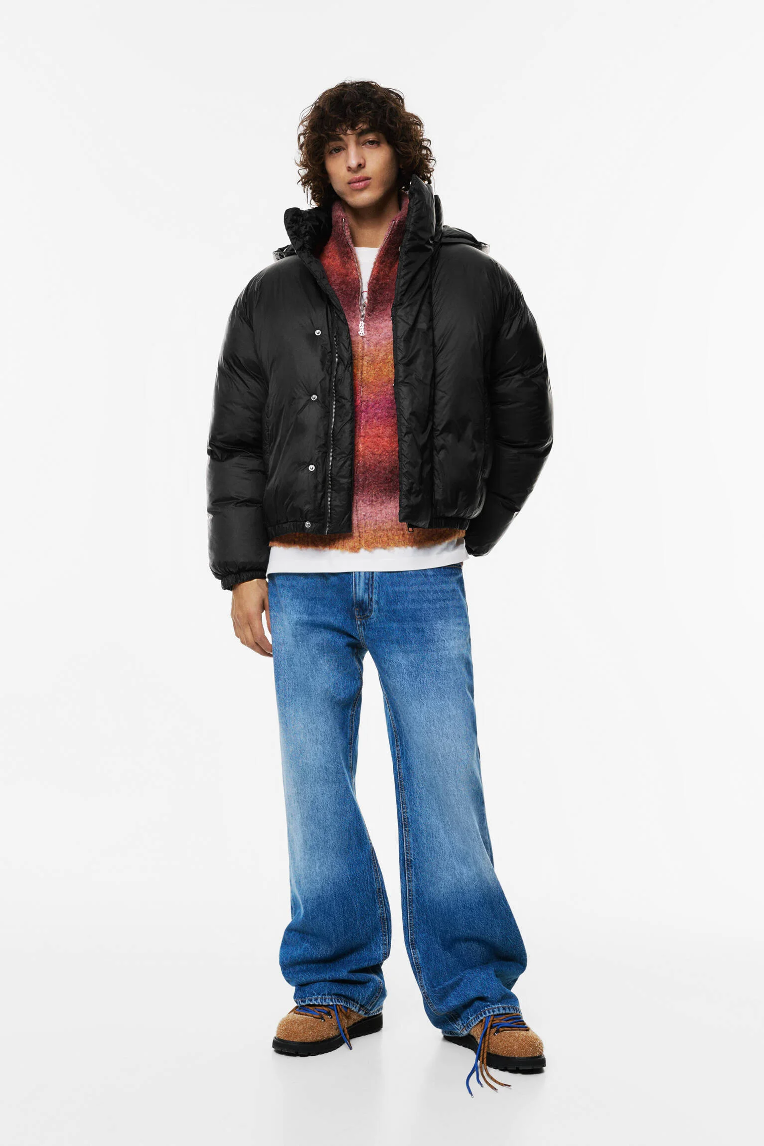 - طراحی و عنوان: این کاپشن پفی براق از برند پول اند بیر، با طراحی کلاه دار و آستین های بلند، ظاهری مدرن و جذاب دارد. بسته شدن آن با زیپ مخفی و دکمه، ایمنی و زیبایی را همزمان فراهم می کند.