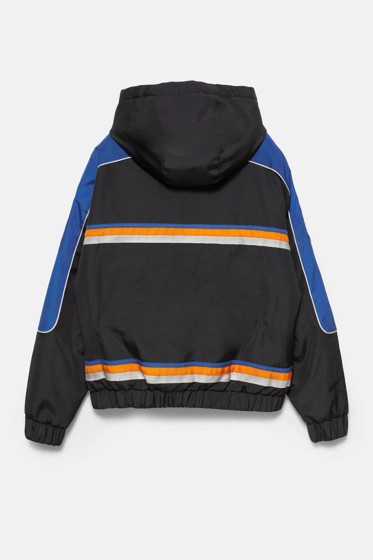 - ویژگی های محصول: دارای کلاه، بسته شدن با زیپ سرتاسری، گرافیک لوگو و جزئیات الهام گرفته از مسابقات.