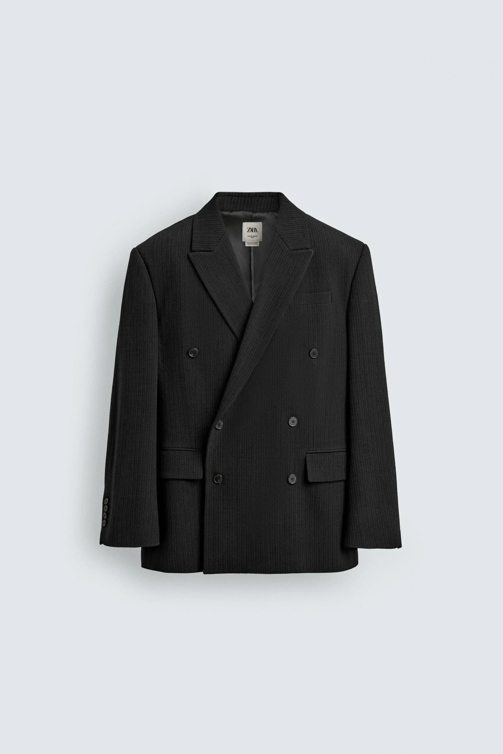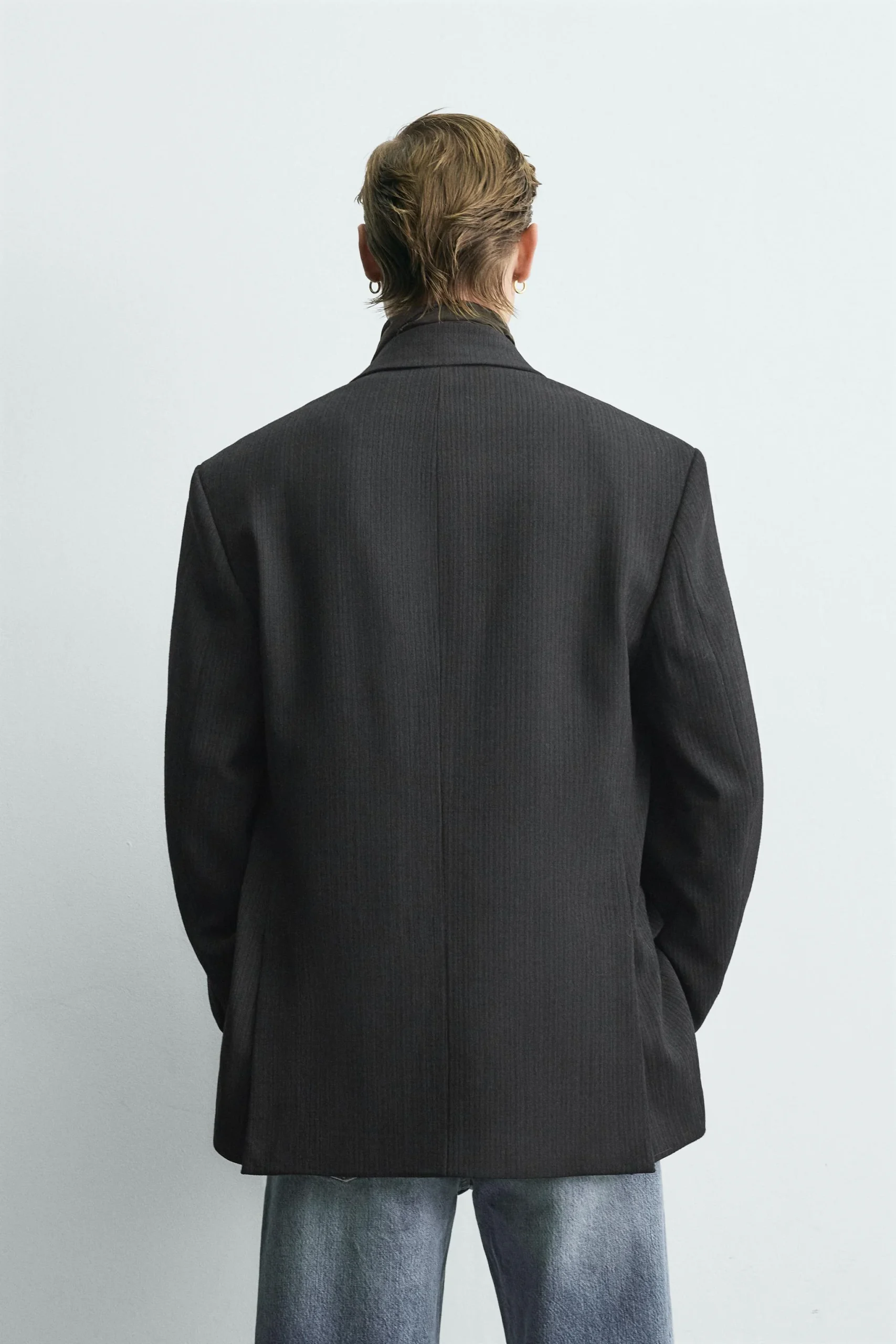 - طراحی یا عنوان: کت بلیزر پشمی دو سینه طرح راه راه نسخه محدود
