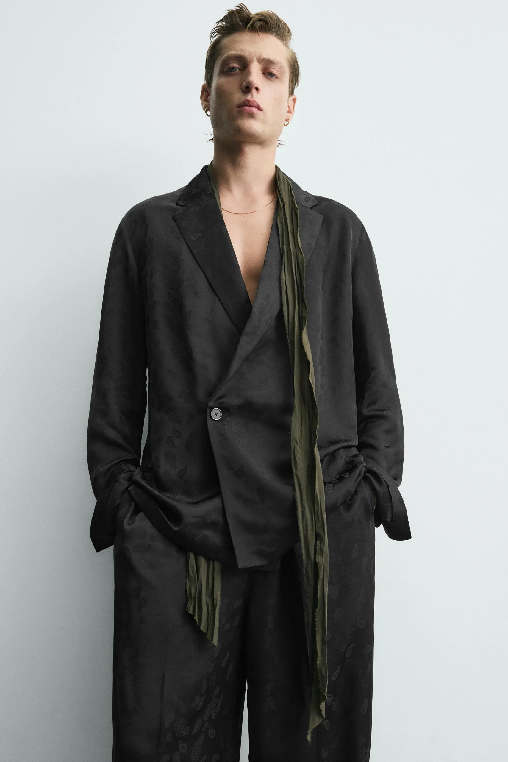 - طراحی یا عنوان: این کت بلیزر فیت آزاد با طرح ژاکارد پیزلی، از مجموعه نسخه محدود زارا است.