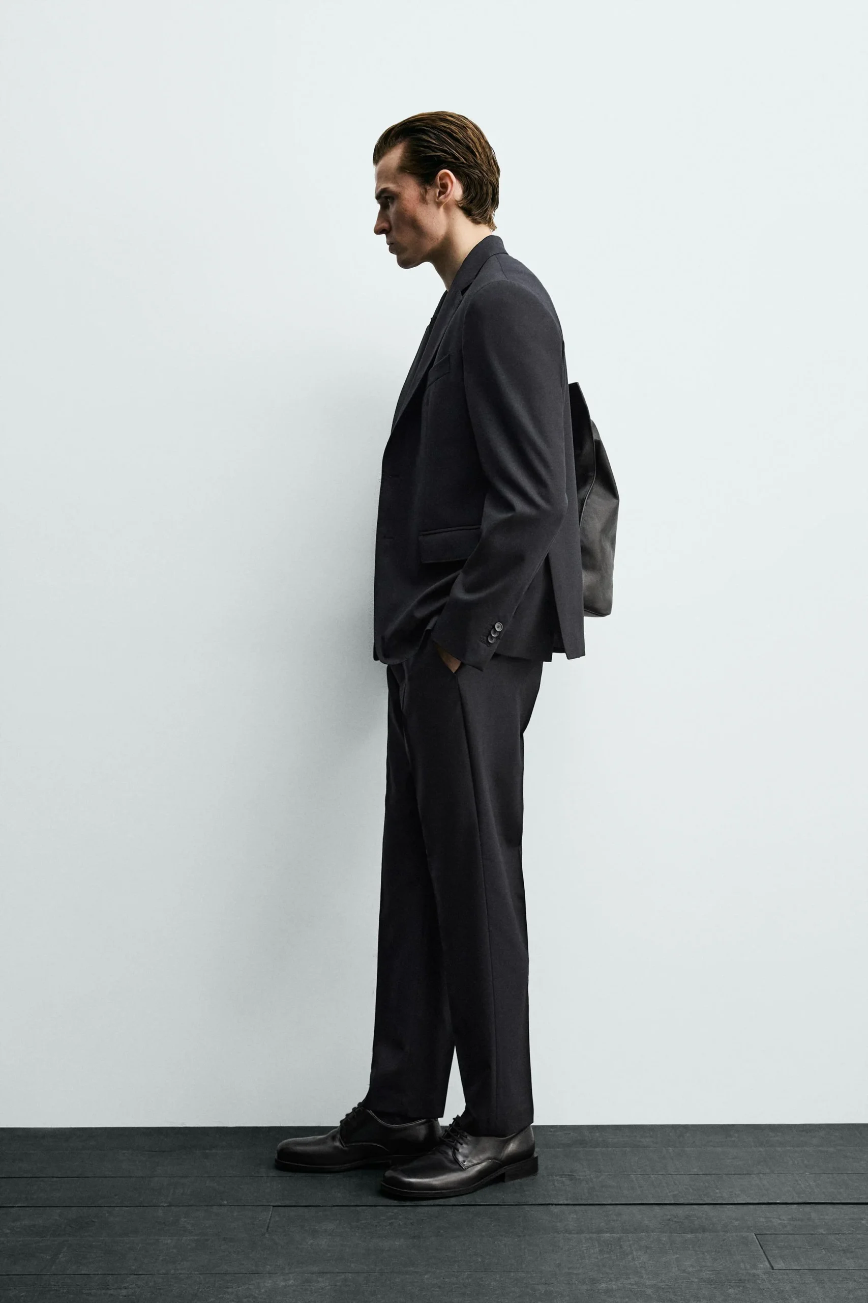 - ویژگی های کت: دارای جیب فیلتابی (Welt Pocket) در قسمت سینه، جیب های لبه دار در کناره ها، جیب داخلی اختصاصی، دو چاک در لبه پشتی برای سهولت در حرکت و سیستم بستن تک ردیف دکمه در قسمت جلو.