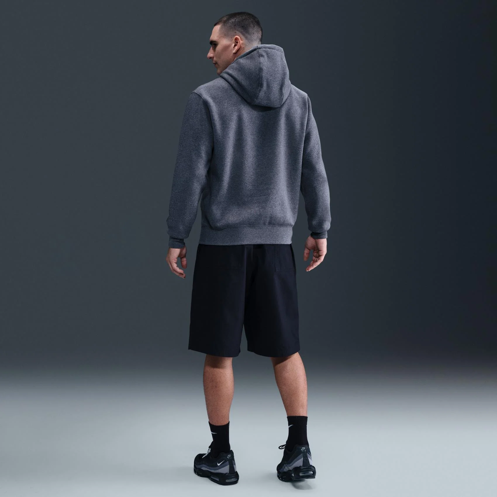 - طراحی: این هودی با برش آزاد (Loose Fit) و استایلی کلاسیک طراحی شده است که دارای لوگوی نمادین نایک Futura روی سینه و یک جیب کانگورویی کاربردی می باشد. طراحی مینیمال و رنگ آنتراسیت این محصول، آن را برای ست کردن با انواع لباس های ورزشی و کژوال بسیار مناسب کرده است.