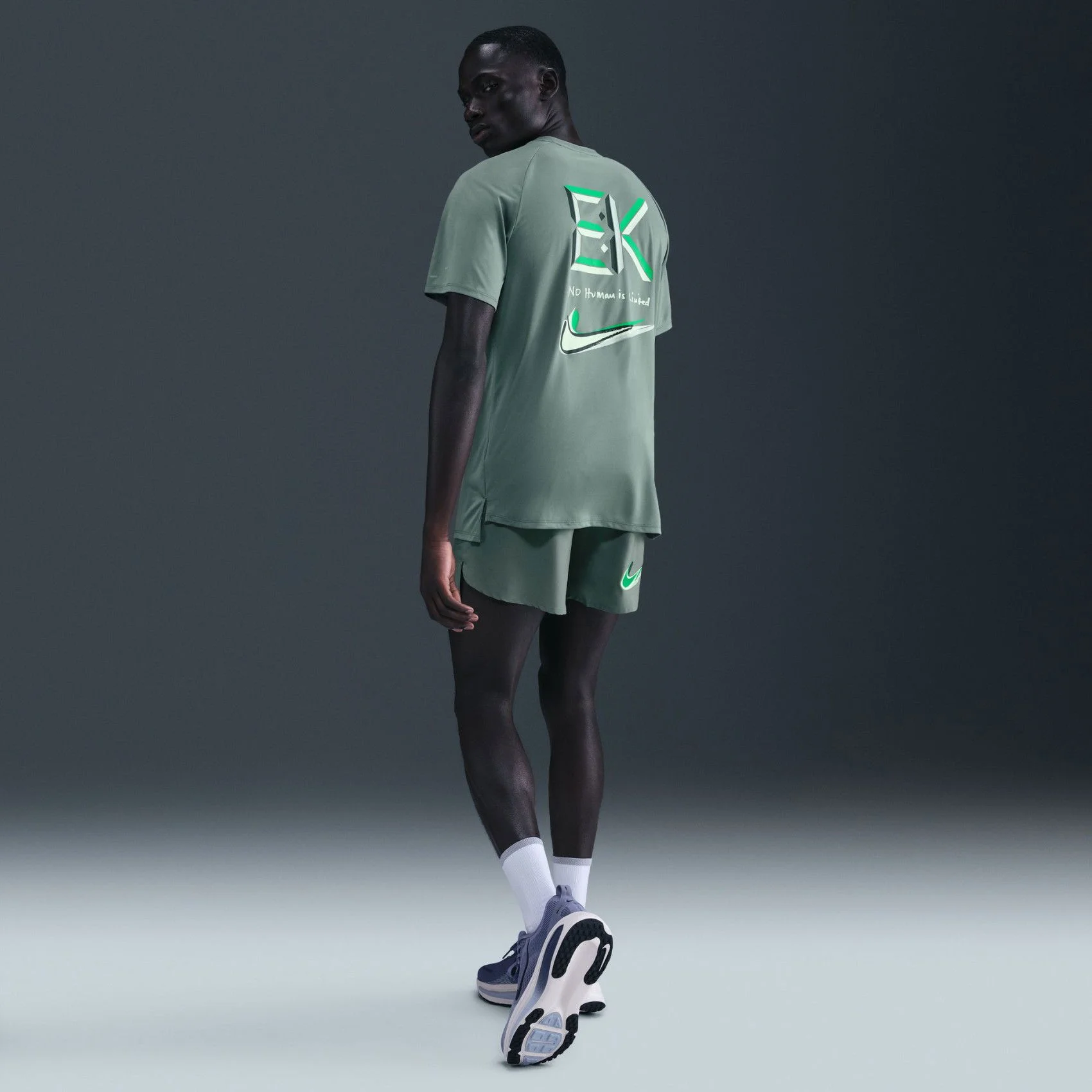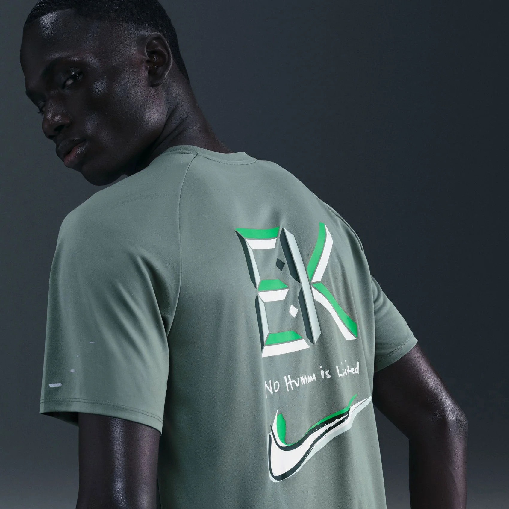 - طراحی: این تیشرت با الهام از الیود کیپچوگه و شعار انگیزشی «هیچ انسانی محدود نیست» طراحی شده و دارای برش آستین های رگلان برای جلوگیری از اصطکاک و افزایش آزادی حرکت است. قد بلند بدنه تیشرت باعث می شود در حین فعالیت های شدید، لباس بالا نرود و پوشش دهی کاملی را برای ورزشکار فراهم کند.