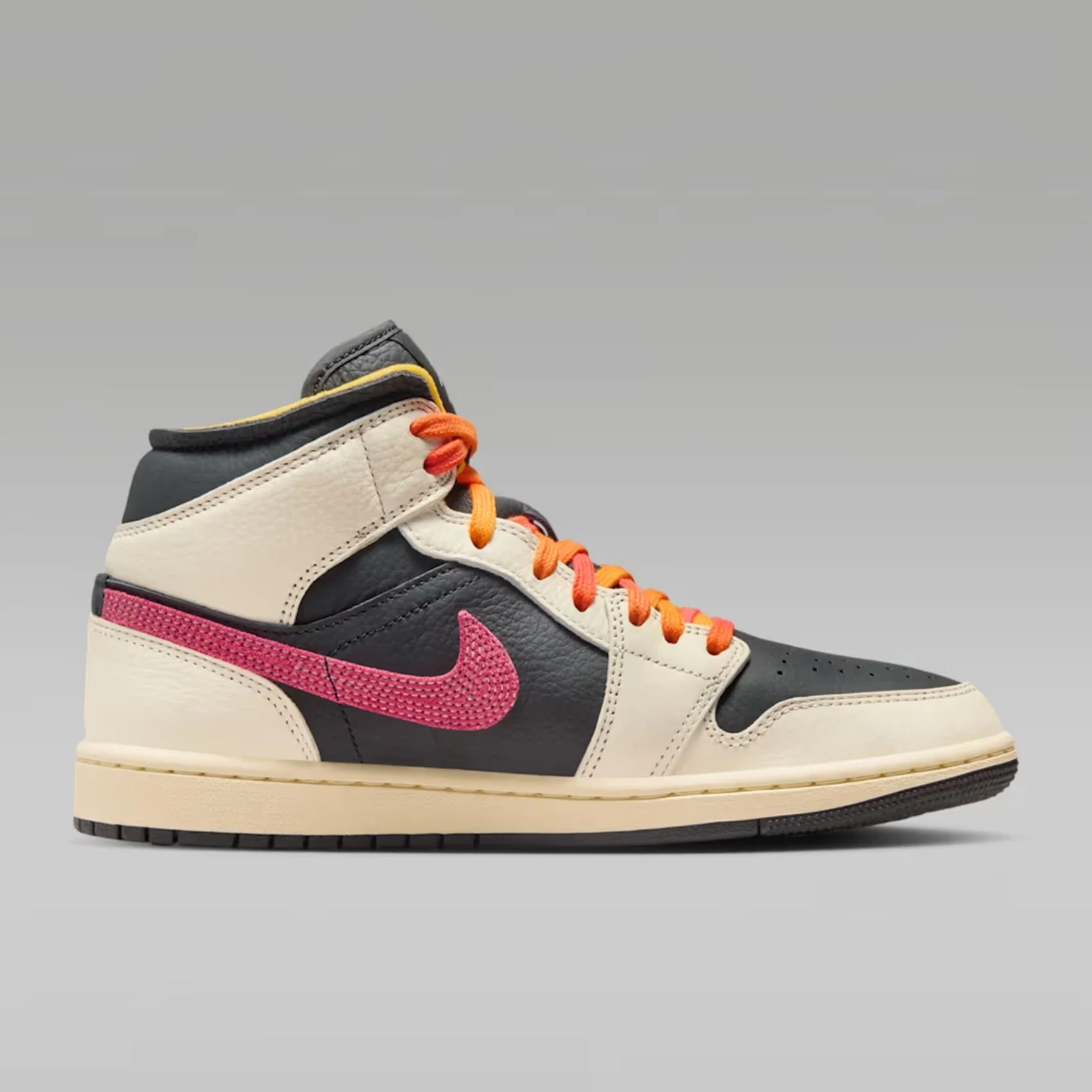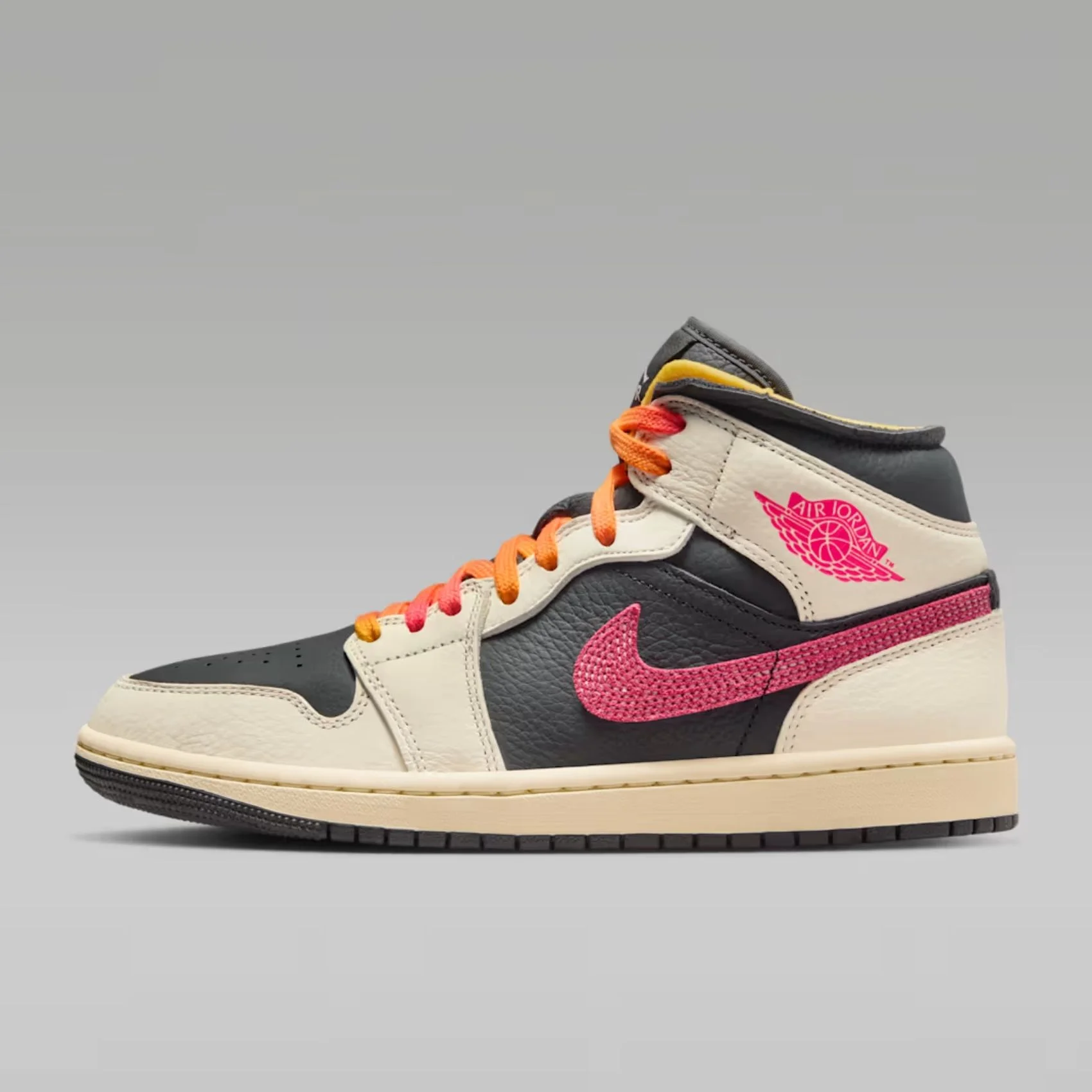 - طراحی: این کفش با طراحی نیم ساق (Mid) و الهام از استایل کلاسیک بسکتبال، ترکیبی از اصالت برند جردن و جزئیات مدرن را برای استایل های خیابانی و ورزشی بانوان ارائه می دهد.