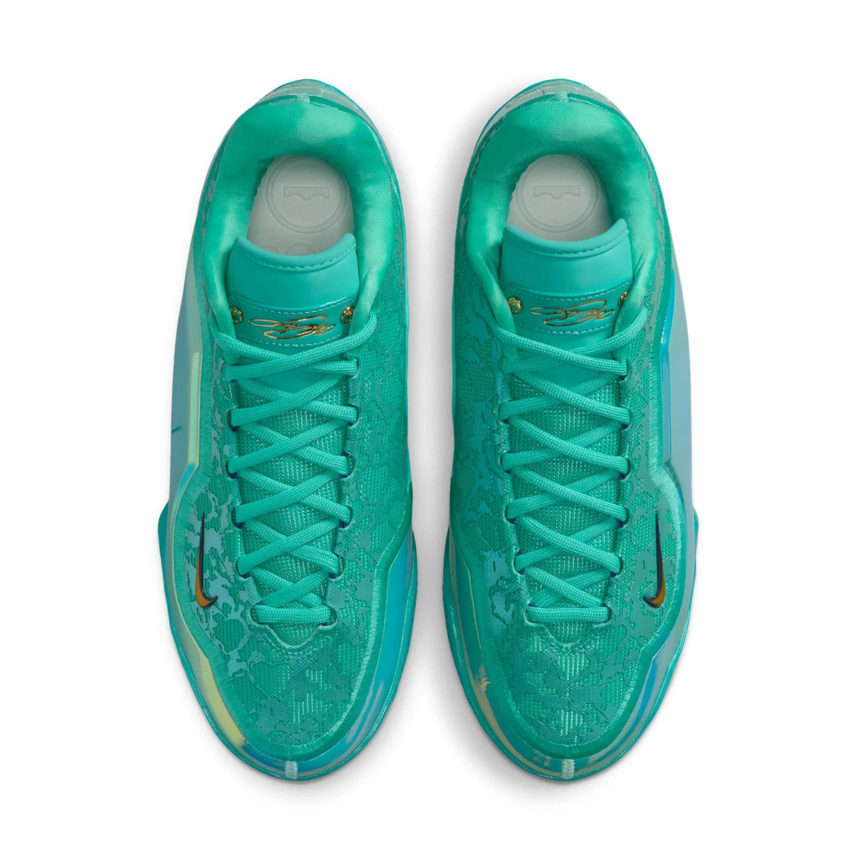 - طراحی: این کفش با الهام از میراث ورزشی لبران جیمز و لقب “پادشاه” طراحی شده است و با رنگ سبز خاص و جزئیات گرافیکی منحصر به فرد، استایلی مقتدرانه و جذاب به ورزشکاران می بخشد.