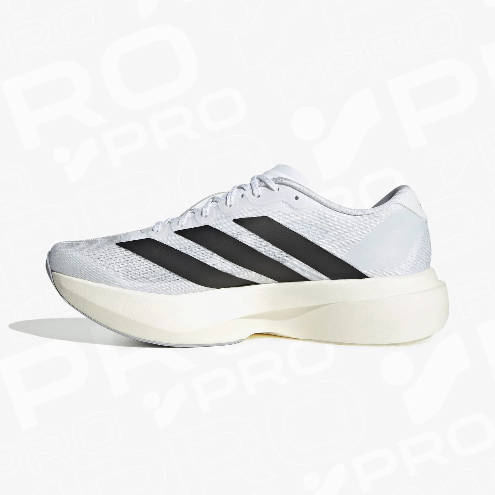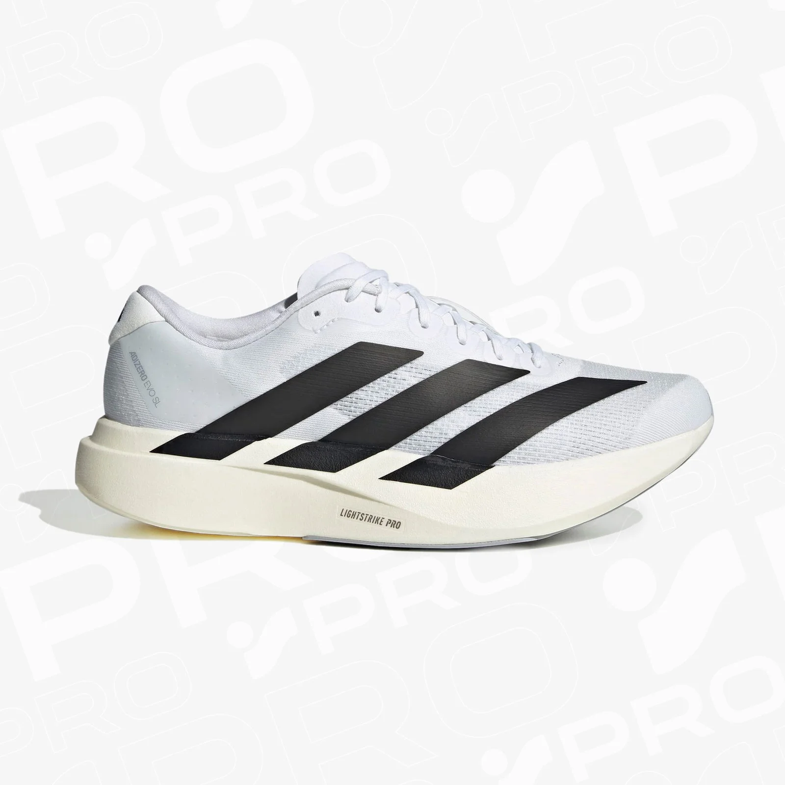 - طراحی یا عنوان: کفش دویدن مردانه آدیداس آدیزرو Evo SL سفید، با طراحی الهام گرفته از مدل های رکوردشکن آدیزرو و زیبایی شناسی مسابقه ای.